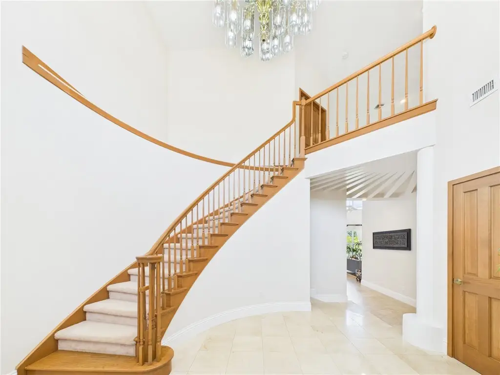 Two-story foyer with sweeping staircase