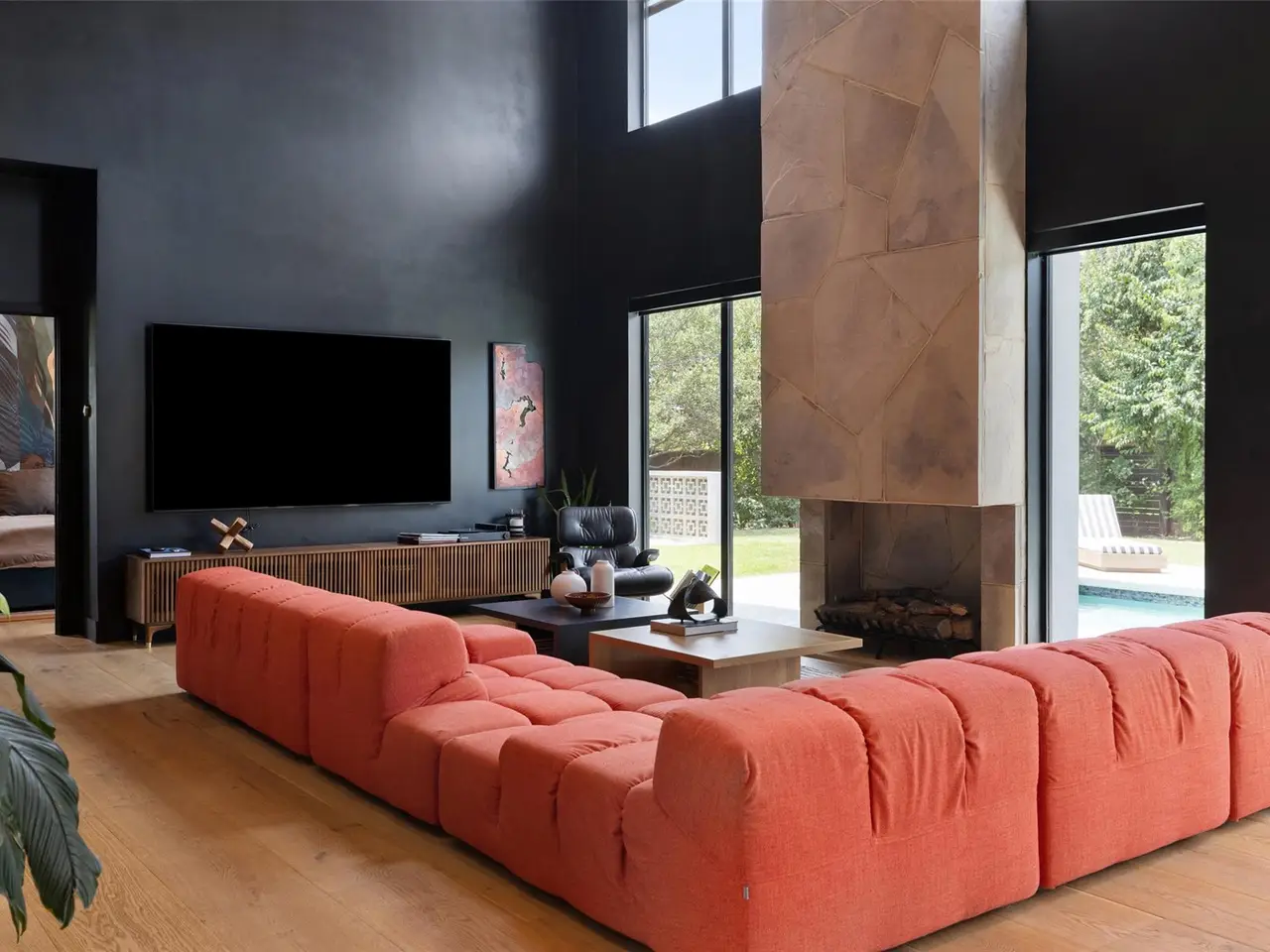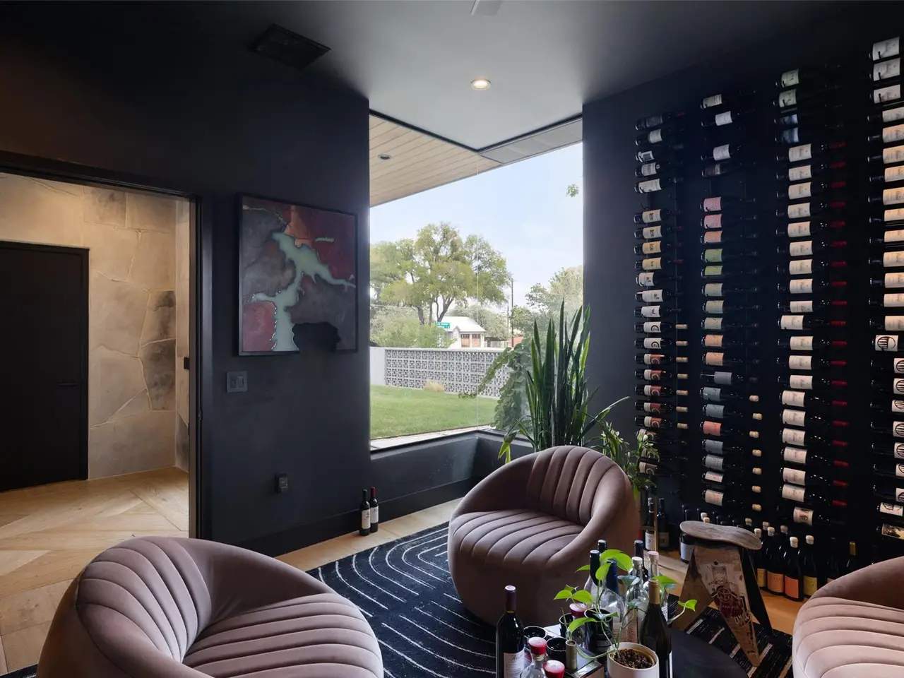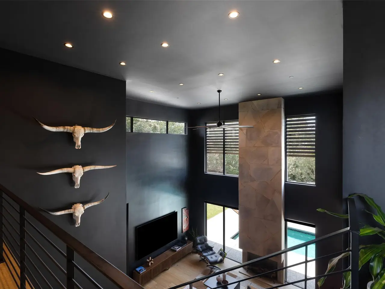 Welcome to 204 Westbrook, a bold and stylish retreat on a corner lot in coveted Westwood Terrace. Reimagined from top to bottom, this home embraces a modern aesthetic with dramatic black walls, striking details, and elevated finishes. In the living room, a soaring two-story stone feature is flanked by massive windows framing backyard views, creating a seamless indoor-outdoor connection. The kitchen stands out with its unique circular island, built-in cooktops, and granite counters that curve gracefully into the space. A bonus room off the main living area serves as a wine lounge or easily converts to an office or cozy den. The main-level primary suite offers a custom walk-in closet and spa-like bath with a soaking tub, oversized shower, and double vanity. Smart home features, including programmable lighting and app-controlled blinds, add everyday comfort. A sculptural wood staircase doubles as art, leading upstairs to three bedrooms, a second office or flex space, and a private balcony overlooking the lush yard. The home is backed by a Generac natural gas generator that self-tests weekly and provides automatic backup power. Outside, the covered patio features a fireplace, tile flooring, and full outdoor kitchen with generous counter space, built-in grill, and pizza oven perfect for entertaining. The saltwater pool and spa include a chiller for hot days, while a barrel sauna with Wi-Fi HUUM heater and a Morozko cold plunge add a spa-like touch. A grassy yard offers room for pets, kids, or lawn games, surrounded by new landscaping and fruit trees. The heated and cooled three-car garage with epoxy floors and custom cabinetry completes the home. Most furniture is negotiable, making this a turnkey opportunity. Located within Eanes ISD and minutes from shopping, dining, trails, and downtown Austin, 204 Westbrook delivers modern style, premium upgrades, and lifestyle-focused design in one of Westlake's most convenient pockets.