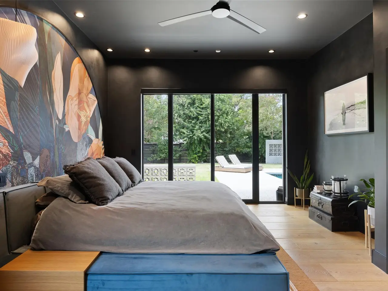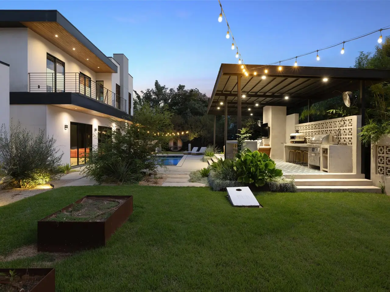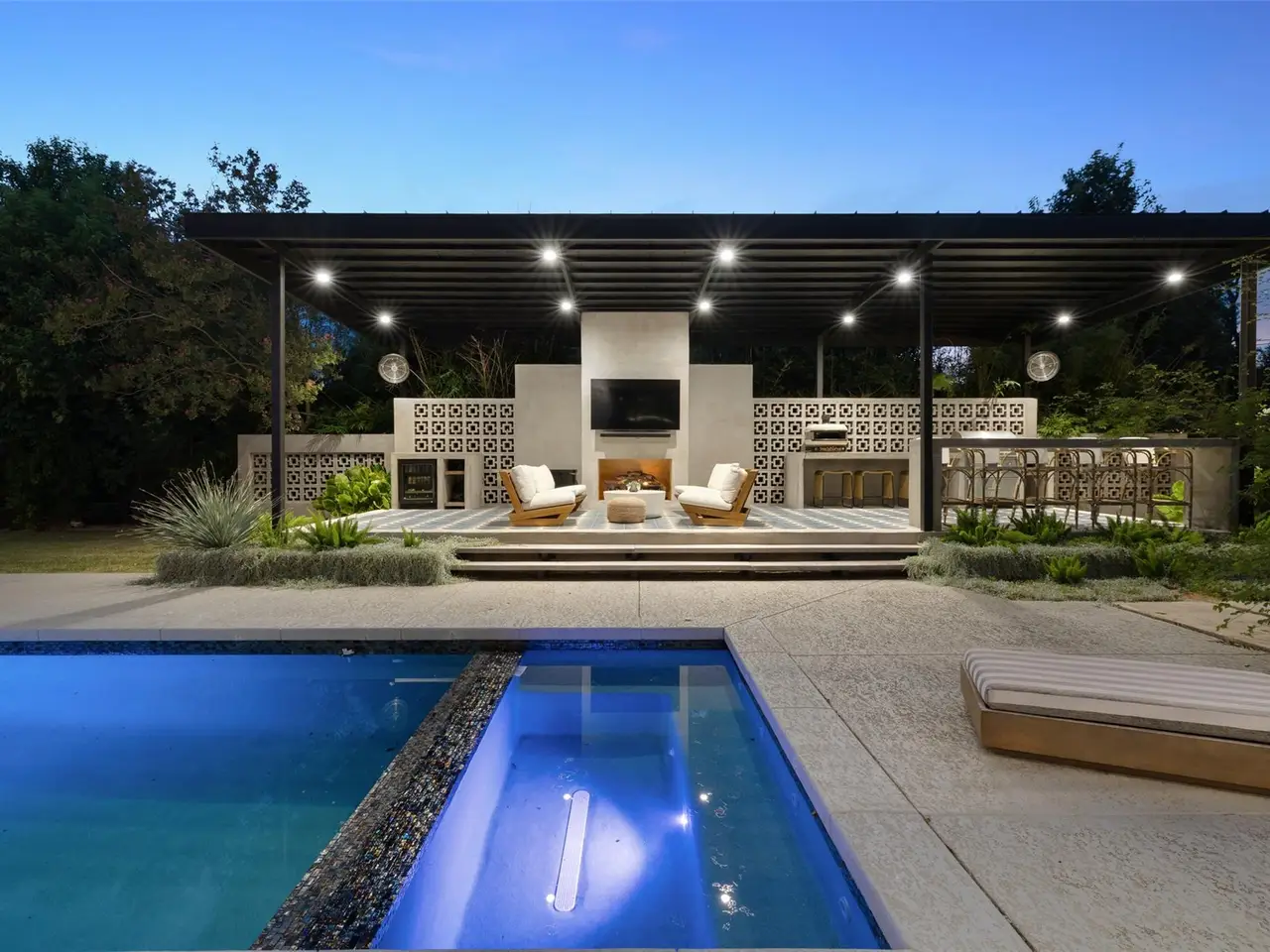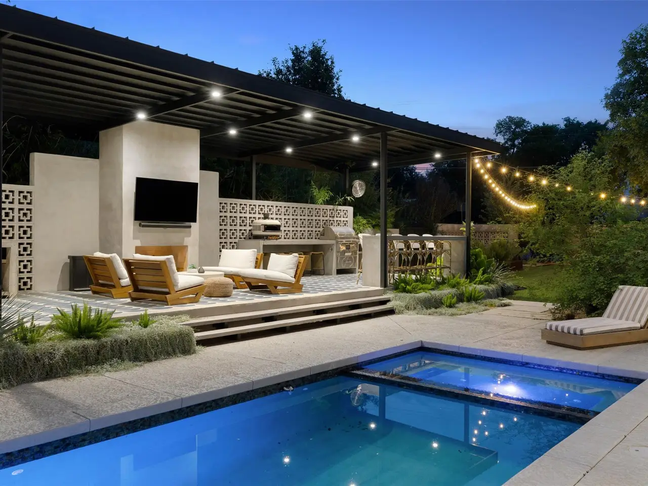 Welcome to 204 Westbrook, a bold and stylish retreat on a corner lot in coveted Westwood Terrace. Reimagined from top to bottom, this home embraces a modern aesthetic with dramatic black walls, striking details, and elevated finishes. In the living room, a soaring two-story stone feature is flanked by massive windows framing backyard views, creating a seamless indoor-outdoor connection. The kitchen stands out with its unique circular island, built-in cooktops, and granite counters that curve gracefully into the space. A bonus room off the main living area serves as a wine lounge or easily converts to an office or cozy den. The main-level primary suite offers a custom walk-in closet and spa-like bath with a soaking tub, oversized shower, and double vanity. Smart home features, including programmable lighting and app-controlled blinds, add everyday comfort. A sculptural wood staircase doubles as art, leading upstairs to three bedrooms, a second office or flex space, and a private balcony overlooking the lush yard. The home is backed by a Generac natural gas generator that self-tests weekly and provides automatic backup power. Outside, the covered patio features a fireplace, tile flooring, and full outdoor kitchen with generous counter space, built-in grill, and pizza oven perfect for entertaining. The saltwater pool and spa include a chiller for hot days, while a barrel sauna with Wi-Fi HUUM heater and a Morozko cold plunge add a spa-like touch. A grassy yard offers room for pets, kids, or lawn games, surrounded by new landscaping and fruit trees. The heated and cooled three-car garage with epoxy floors and custom cabinetry completes the home. Most furniture is negotiable, making this a turnkey opportunity. Located within Eanes ISD and minutes from shopping, dining, trails, and downtown Austin, 204 Westbrook delivers modern style, premium upgrades, and lifestyle-focused design in one of Westlake's most convenient pockets.