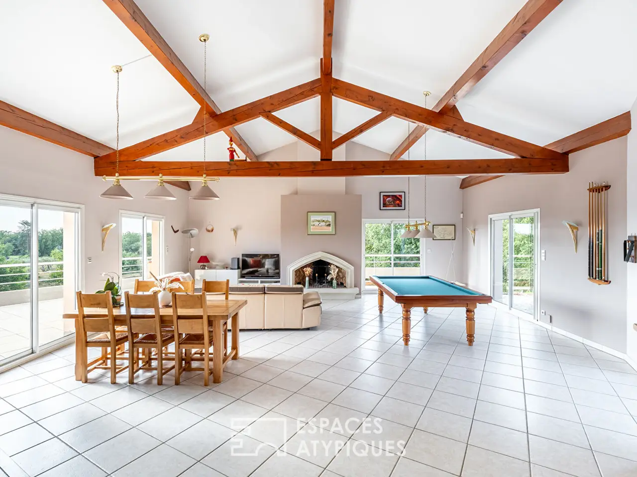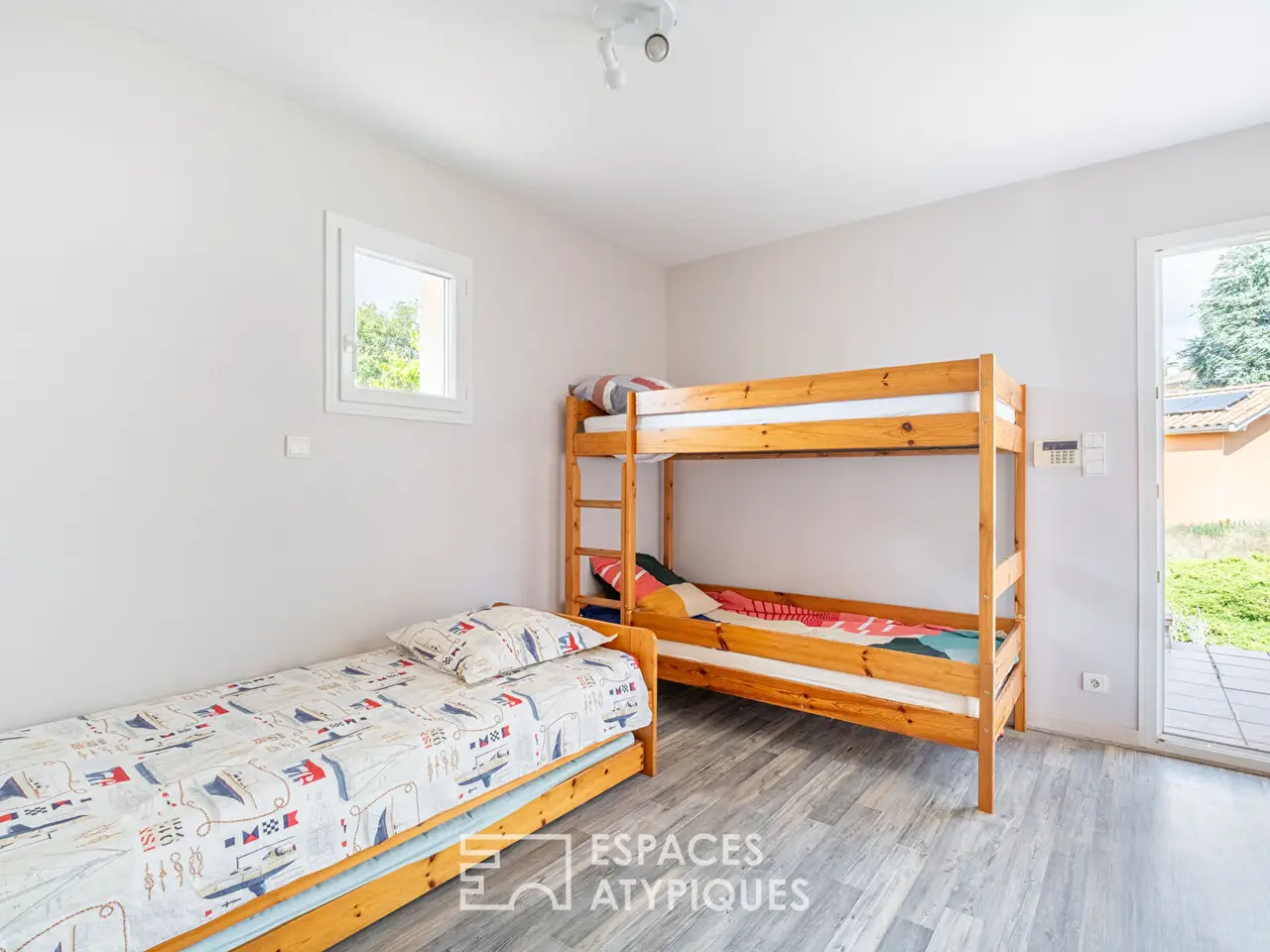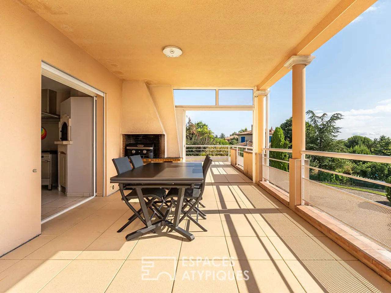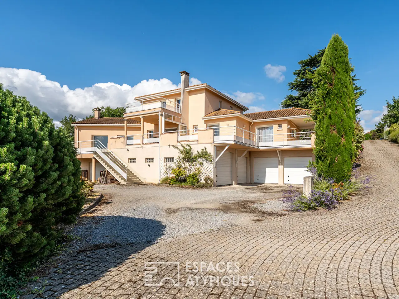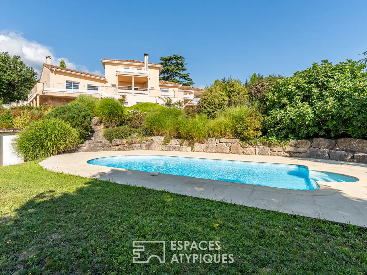 Located on the heights of Brignais, in absolute calm, this family home of 210sqm of living space is located on a landscaped plot of 3015sqm with a swimming pool. Upon entering, the gaze is drawn to a vast cathedral living room bathed in light, benefiting from a triple exposure that accentuates the feeling of space and clarity. The exposed framework and the fireplace bring an authentic charm to this living room with its generous volumes. Open to the dining room, the kitchen stands out as a true living space, designed to combine functionality and conviviality. It naturally extends to the outside thanks to a large bay window leading to the terrace, inviting you to fully enjoy the panorama. Its integrated pizza oven adds a warm touch, ideal for moments of sharing around generous meals. This level also includes an office space as well as two bright bedrooms, both open to the outside.One has an en-suite bathroom, while the other benefits from its own shower room, offering comfort suitable for family life or welcoming guests. A toilet is also located. Upstairs, three bedrooms complete the sleeping area: two of them share a common terrace, while the third has independent access as well as its own terrace. A shower room and a toilet complete this level.Below, an elegant wooded garden unfolds around a swimming pool nestled in a green setting, not overlooked. The unobstructed view of the surrounding countryside reinforces the impression of tranquility, just 20 minutes from Lyon. A well-kept vegetable garden and a petanque court complete this bucolic setting, designed to savor every moment in tune with nature.The basement of approximately 250sqm includes 5 garages, 3 of which are electrified. The ceiling height and its volumes allow for potential developments.The atypical character of this property lies in the rare combination of a preserved natural environment and architecture with unique volumes.A unique property, designed for those looking for a living space that is both spacious and connected to nature. Ideal for a family.ENERGY CLASS: C - CLIMATE CLASS: CEstimated average amount of annual energy expenditure for standard use, established from energy prices for the year 2021 / 2022 / 2023: between EUR2,240 and EUR3,350Contact: Emmanuel - 06 67 58 74 89REF. 12254-1Additional information* 7 rooms* 5 bedrooms* 1 bathroom* 2 shower rooms* Outdoor space : 3015 SQM* Property tax : 4 015 €Energy Performance CertificatePrimary energy consumptionc : 130 kWh/m2.yearHigh performance housing*A*B*130kWh/m2.year27*kg CO2/m2.yearC*D*E*F*GExtremely poor housing performance* Of which greenhouse gas emissionsc : 27 kg CO2/m2.yearLow CO2 emissions*A*B*27kg CO2/m2.yearC*D*E*F*GVery high CO2 emissionsEstimated average annual energy costs for standard use, indexed to specific years 2021, 2022, 2023 : between 2240 € and 3350 € Subscription IncludedAgency feesThe fees include VAT and are payable by the vendorMediatorMediation Franchise-Consommateurswww.mediation-franchise.com29 Boulevard de Courcelles 75008 ParisInformation on the risks to which this property is exposed is available on the Geohazards website : www.georisques.gouv.fr