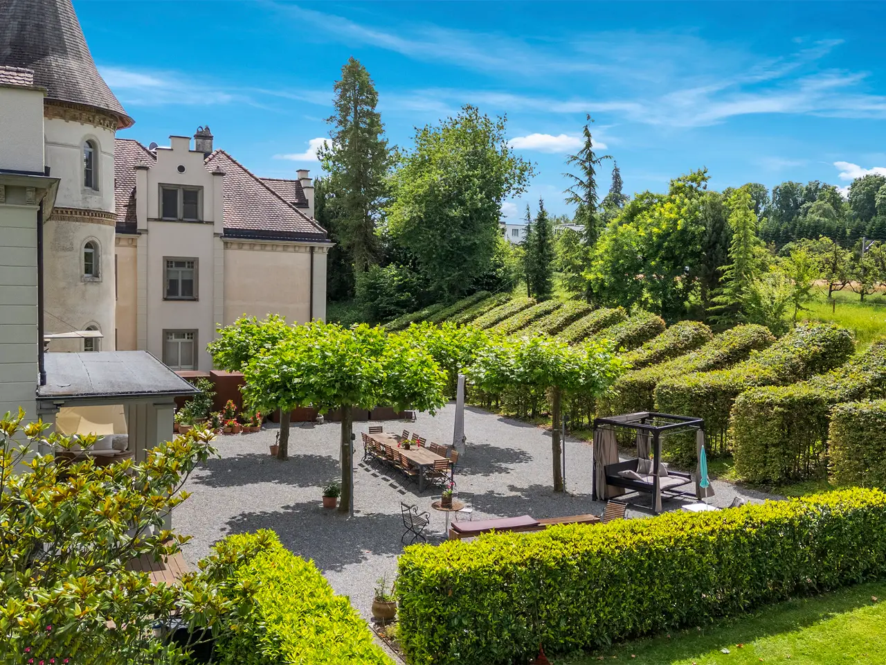 This idyllically situated castle looks back on a long history. The entire property underwent extensive restoration from 1995 onwards. Today, the castle comprises various uses such as residential and hotel rooms as well as office space and separate apartments. The property is complemented by a picturesque castle garden, which offers a tranquil atmosphere with valuable trees and shady greenery. The property offers potential for the construction of further buildings that serve the purpose of the castle.