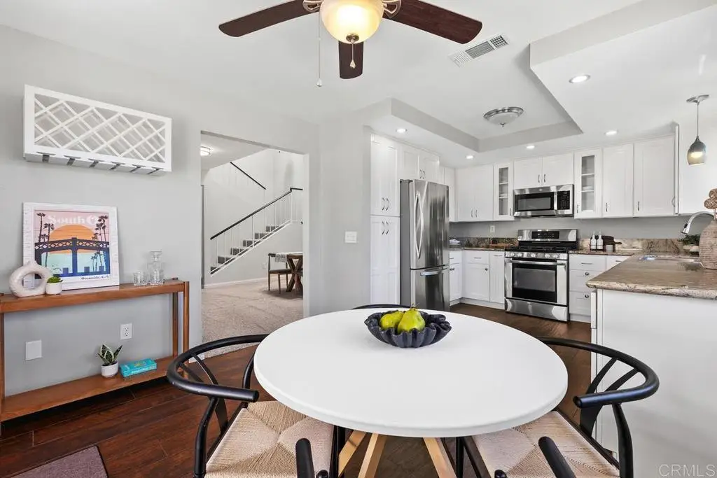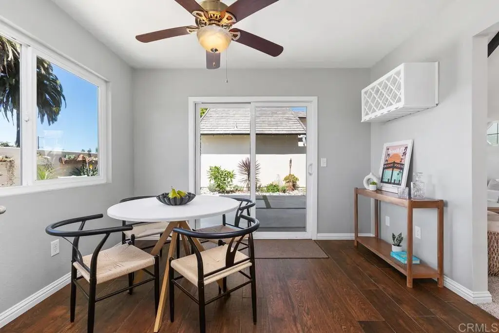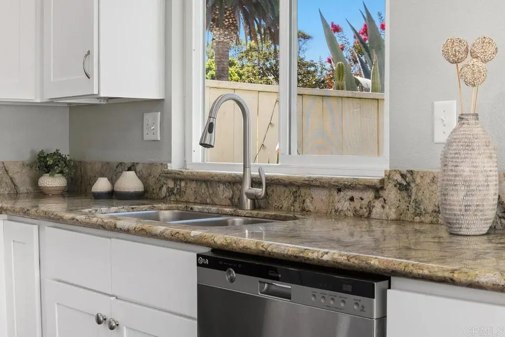 Charming detached home in gated St Malo Village community. WEST OF THE I-5 freeway. Close to beautiful beaches, shopping, restaurants & schools. Kitchen has been remodeled with cabinets, countertops, recessed lighting, appliances. Windows replaced, newer flooring, upgraded backyard landscaping, replaced water heater system, Brand New furnace & ducting. Vaulted beamed ceilings. Peaceful community park. Move-in ready. Hurry, these don't come up often.