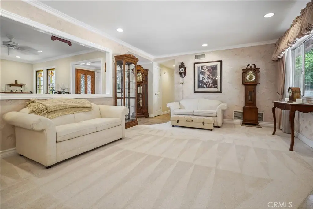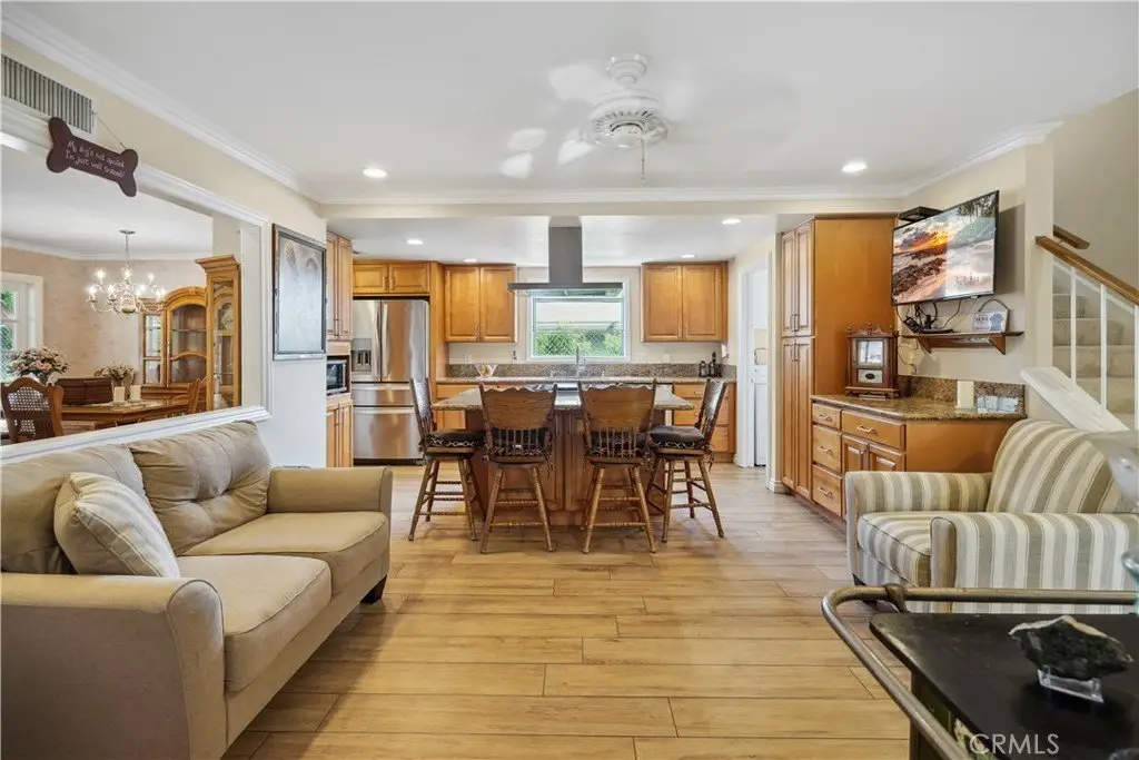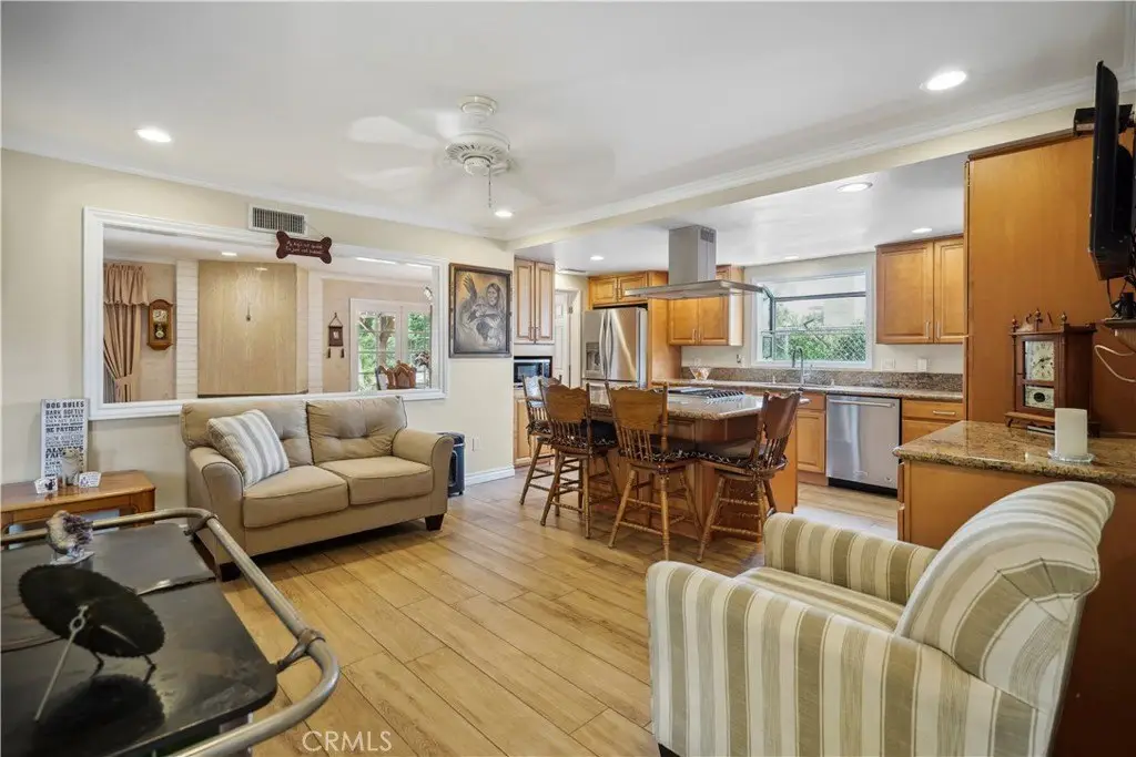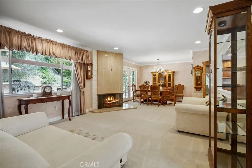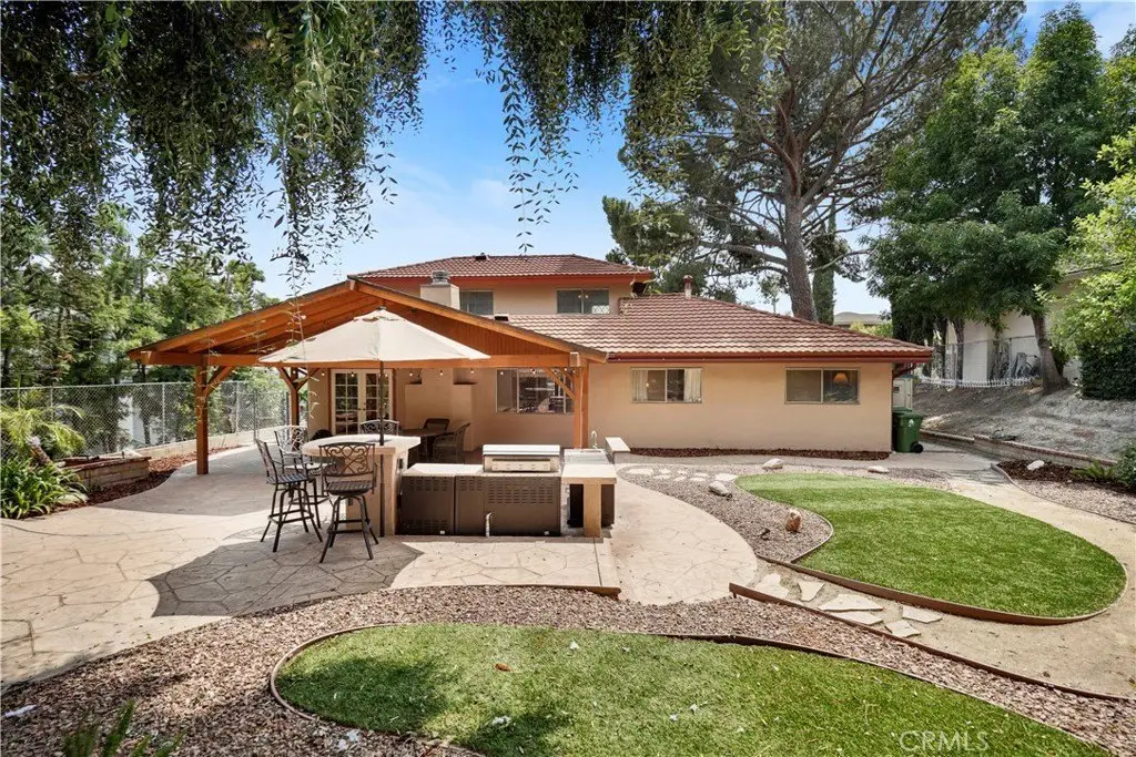 Welcome to 11300 Dulcet Avenue, a timeless traditional residence tucked away in one of Porter Ranch's most desirable neighborhoods. This spacious 5-bedroom, 3-bathroom home offers 2,436 square feet of well-designed living space on a generously sized lot, ideal for Buyers that value comfort, privacy & room to grow. As you approach the home, you'll be charmed by its classic curb appeal and serene setting. Step inside to discover a warm & inviting floorplan featuring a formal living room accented with an elegant fireplace that can be enjoyed by the adjoining dining room with French door overlooking the covered patio area & yard. The country-style kitchen captures the heart of the home, complete with ample wood cabinetry, granite counter tops that extends to the breakfast bar area ideal for your morning coffee rituals. The cozy family room is perfect for everyday living or your casual gatherings. Downstairs, you'll find two secondary bedrooms with a hall bathroom as well as the primary bedroom with en-suite bathroom offering direct access to the side yard. Upstairs features two additional bedrooms plus a 3/4 bathroom. Here's the best part, the Great Room, a room that provides incredible flexibility with panoramic views, this room can easily serve as a sixth bedroom, media room, playroom, or a private retreat for multigenerational living. The beautiful, secluded backyard is an entertainer's dream, framed by towering trees that create a peaceful and private atmosphere. Enjoy warm evenings dining "Al Fresco" at the custom bar-be-que island, gathering around the built-in fire pit, or simply lounging in the thoughtfully designed resort-like patio with exterior lighting. This property offers a rare opportunity for growth, with a large lot ideal for adding a pool, garden or even a potential ADU (buyer to verify). Ideally located near amazing hiking trails, the Vineyards shopping center and major freeways, this home offers the best of both convenience and tranquility. Don't miss the opportunity to own this rare gem that combines timeless design, functionality, and future potential in one of the Valley's most sought-after communities.