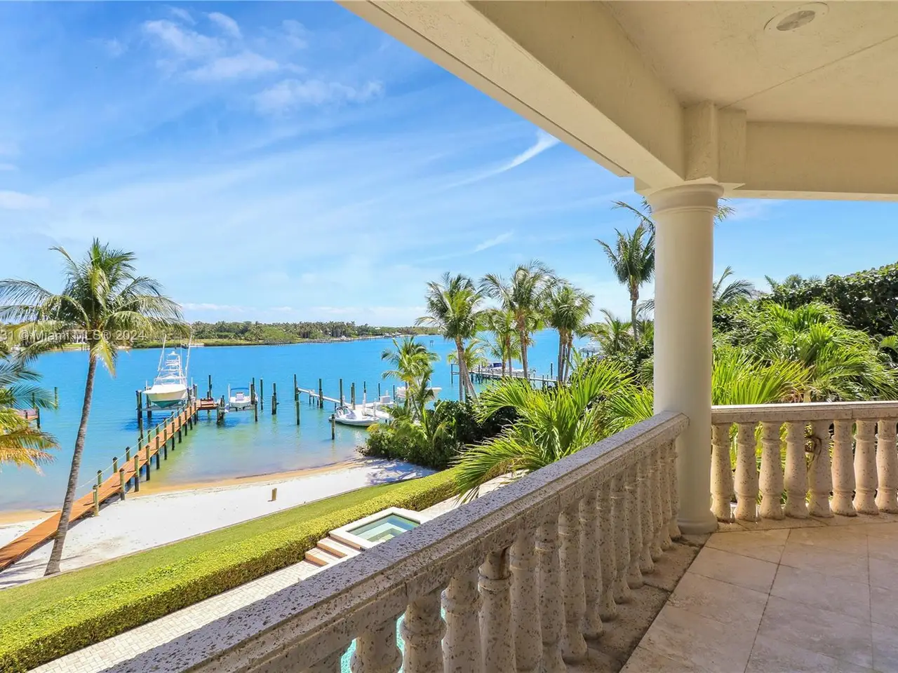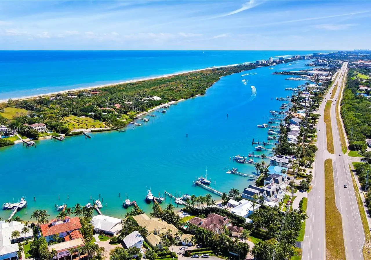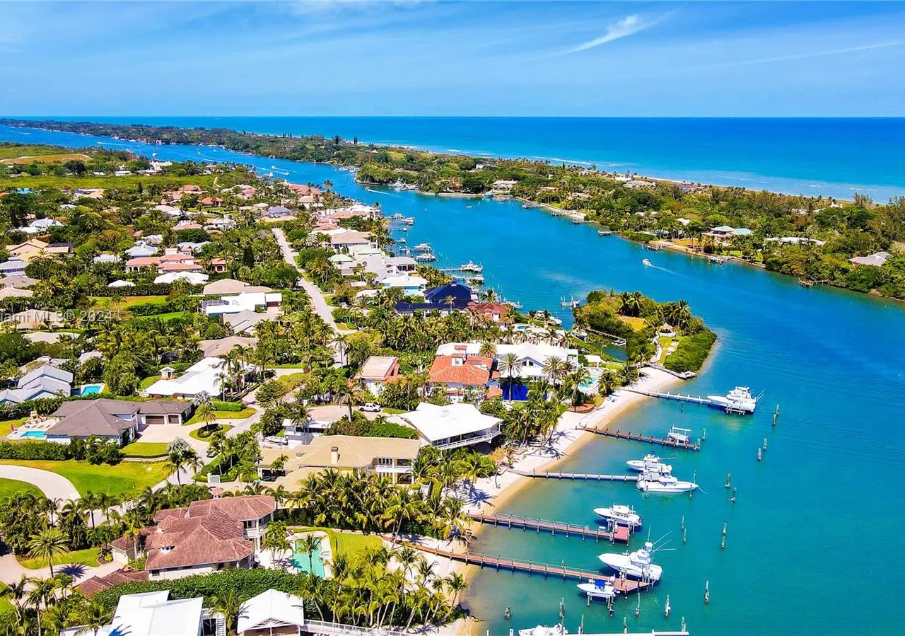 Absolutely stunning one-of-a-kind opportunity to own on the direct blue water Intracoastal in Martin County Jupiter/Tequesta encompassing .713 acres of gated privacy. This palatial estate home is custom designed and beautifully laid out for entertaining on a grand scale as well as family enjoyment. As you enter through the double doors into the two-story formal living room complete with gas fireplace and full wet bar will greet you with a wall of windows giving way to breath taking blue water views. The main level includes formal living, dinning, chef’s kitchen, family room/informal dinning, two en suite guest bedrooms, half bath, laundry, three-car garage. Second level boasts two sumptuous primary suites and baths with private balconies overlooking the intracoastal and another ensuite guest bedroom.