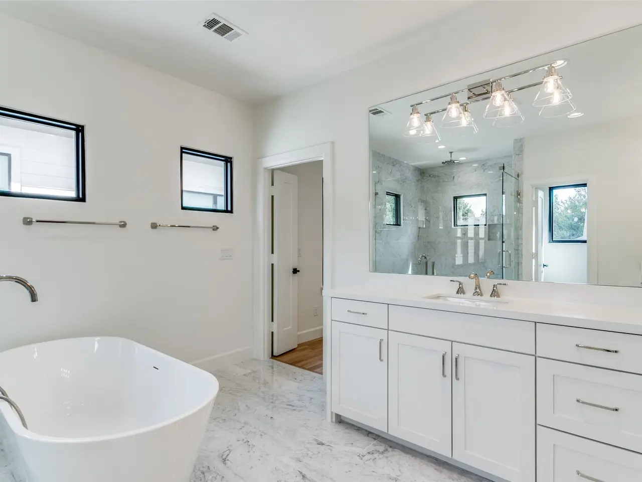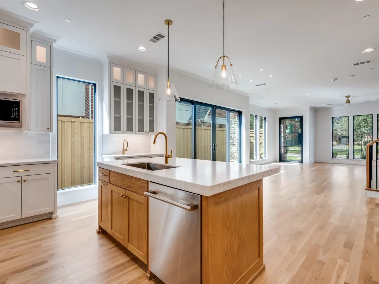 Look forward to being the first owner of this New Construction single-family attached home by well-known builder J Gregory Homes, with completion in September. Enjoy entertaining in your spacious living room with fireplace and wet bar, open to the dining area & kitchen, with glass doors out to the turfed side yard. Preparing meals will be a pleasure in your large island kitchen, featuring a breakfast bar, gas range with double electric ovens, built-in refrigerator, & walk-in pantry. The downstairs bedroom with ensuite bath serves as a guest suite or your private home office. Retreat upstairs to your primary bedroom suite and luxurious bath with dual vanities, freestanding tub, separate double shower, plus abundant closet space with built-in drawers & shelves. Three additional bedrooms with walk-in closets, two baths, and a full-size laundry room complete your second level. Your third level offers a multi-purpose game room or living area with wet bar plus a full bath. Enjoy a low maintenance lifestyle with all new amenities in a prime University Park location, walkable to SMU, Highland Park Middle School, Williams Park, Centennial Park, Curtis Park & pool, and Snider Plaza shopping & dining!
