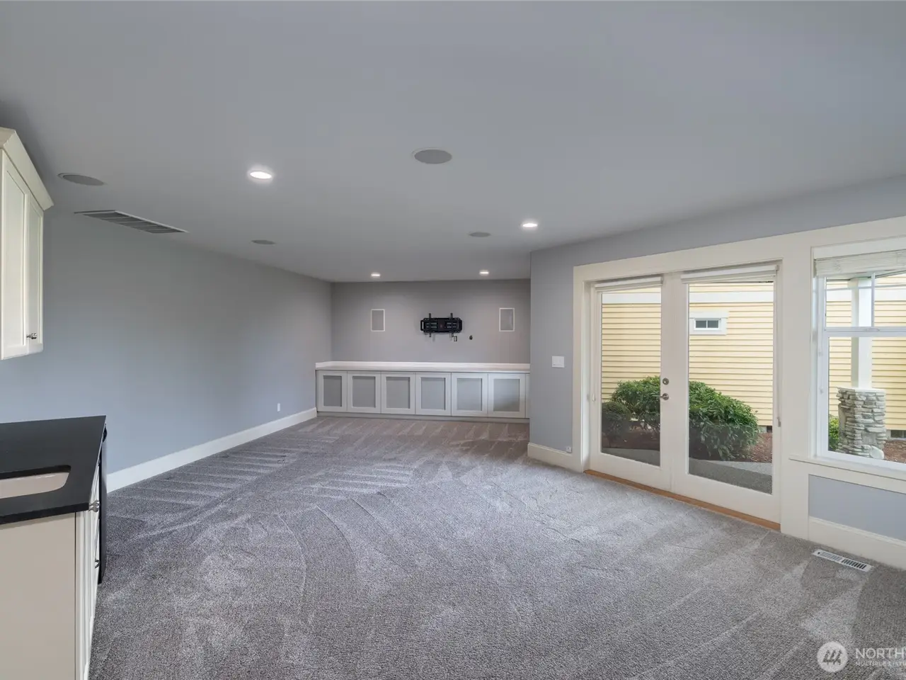 Quality Ron Paulk built Home, a beautifully home w/ solid wood doors, detailed ceiling and baseboard trim. Main level living offers Primary & second bed rm and bonus office/flex rm with French doors, all main level. The kitchen with long quartz bar, living rm stone fireplace, and seamless flow to French doors view deck ideal for entertaining. Primary suite showcases sweeping channel views of San Juan Islands, plus spa like bath and lg walk-in closet. Lower level/ w guest suite, and potential cool/wine room, and patio with hot tub wiring. Whole-home with built-in speaker in every room including sound system completes this retreat. Enjoy care free maintenance with landscaping, exterior painting and roof replacement included in HOA fee.