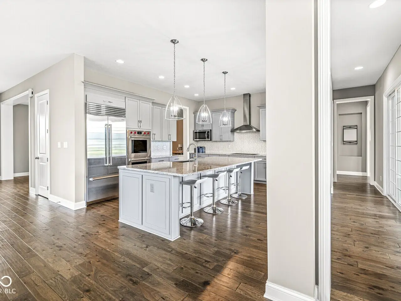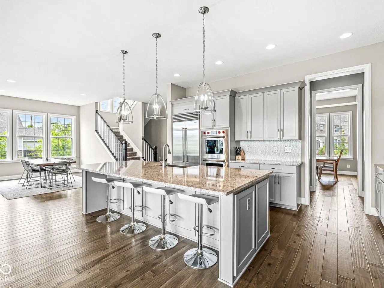 Impressive home with open floor plan & soaring ceilings. Deluxe Gourmet kitchen w/ brand new Wolf appliance including Subzero refrigerator, double ovens & 36 inch gas cooktop, in addition to a large island, walk in pantry, quartz tops, back splash & butler pantry. Expansive great room with cozy gas fireplace. Sunroom has lots of natural light, office on main level with french doors. Luxurious Primary suite has his & her closets, custom tile shower, free standing tub. Additional bedrooms have walk in closets & their own baths. Finished basement with family room/Game area, bar for entertaining, tons of storage, full bath & additional bedroom. Great outdoor space with covered patio & gas fireplace to enjoy your evenings or your morning cup of coffee overlooking the prof landscaped yard w/ irrigation. Home is located on a private cul-de-sac. Exterior was just painted in 2024. Spacious 3 car garage. This home has a lot of upgraded features throughout.