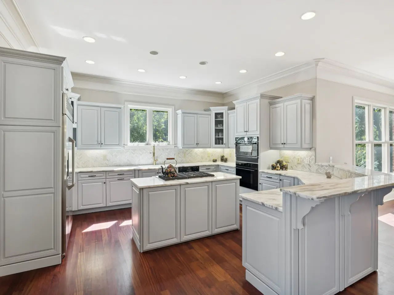 Priced below recent appraisal $1,825,000! This elegant traditional residence is a true sanctuary, perfectly nestled on a picturesque corner lot that offers both space and serenity. Mature trees surround the expansive, fenced-in grounds, providing a tranquil backdrop to the home's thoughtfully designed outdoor living spaces--including an oversized deck, a covered patio, and a sunroom that invites you to relax and take in the view. Imagine crafting your own private retreat - envision an infinity-edge pool that seems to spill into the surrounding trees and a winding pathway leading to a cozy firepit--ideal for intimate gatherings or peaceful reflection. Inside, timeless architectural elements blend seamlessly with modern updates. A grand entry staircase sets a distinguished tone upon arrival, while custom built-ins add charm and functionality throughout. The beautifully renovated kitchen and laundry room reflect a refined aesthetic, and the flexible 5 to 6 bedroom layout accommodates a range of lifestyles. Exceptional features elevate this home beyond the ordinary. A main-level bonus room with a wet bar offers an ideal space for entertaining, while a private elevator provides convenient access to all three levels. Car enthusiasts will appreciate the rare four-car garage, and the daylight basement offers a fully independent suite--complete with a mini kitchen, spacious family room with fireplace, large bedroom, full bath, and generous closet storage. This lower-level retreat is perfectly suited for an In-law suite or long-term guests. Gracious, inviting, and full of possibility, this home must be experienced to be fully appreciated.