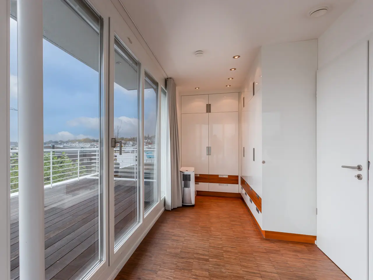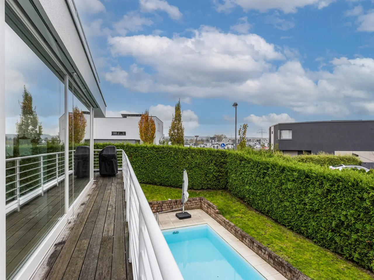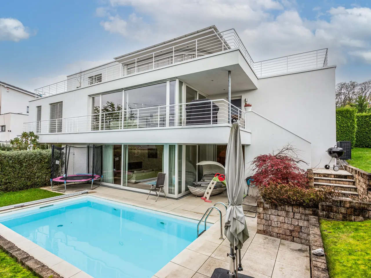 Grandiose and impressive. This view of Lake Phoenix - unobstructed and unobstructed - is priceless. The architecture of the house fully embraces this fact in terms of design and honors it with magnificent terrace areas on all levels of the house, in almost all directions. A house whose homogeneous appearance is reminiscent of American villas creates feel-good areas for the whole family inside. A spacious entrance area creates a casual entrance hall. High-quality glass elements offer a view of the lake and lead to the kitchen/dining area with access to the breakfast terrace and garage. The designer kitchen is a spatial gem and will certainly distract you from cooking, especially when the lights come on over the lake. There is also a checkroom and a guest shower room as well as an all-round bedroom on this level. On the garden level there is an impressive living area with a timeless fireplace and floor-to-ceiling windows all around and access to the sheltered garden and the heated pool with covered terrace. A separate hallway leads to the large wellness and fitness room or, for example, the guest area with sauna, shower and WC. The utility room with washing machine and dryer as well as the building services are also located here. The upper floor deserves an architectural compliment: the floor-to-ceiling, semi-circular window elements in the master bedroom are spectacular. In front of it is an impressively large penthouse terrace - you could even install a hot tub here. The second (children's) bedroom and the main bathroom with floor-level shower, bath, WC and double washbasin with brown-beige marble complete this level perfectly. The double garage with electric door, the two parking spaces in front and the first-class outdoor facilities with staircases, roofing and overhangs should not go unmentioned in this description. We hope you have been able to gain a small taste of this strong offer and would like to get a personal impression. Give us a call to arrange your personal viewing appointment. We look forward to seeing you.