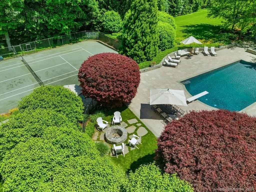 Welcome to Pemberly Hill, a truly exceptional home of unparalleled grandeur and sophistication. Boasting 8 bedrooms on 4 acres of pristine grounds on desirable Brushy Ridge, this magnificent property is a true masterpiece. This classic home has been thoughtfully designed to the highest standards, seamlessly blending its rich history with modern luxury. The result is an extraordinary residence that offers exquisite attention to detail and seamless flow of space. From the stunning foyer with a grand staircase to the spacious and inviting living and dining areas, every room is beautifully appointed with soaring ceilings of over 11 feet and perfectly designed for modern living. The light-filled and spacious gourmet kitchen features top-of-the-line appliances, a large center island, custom cabinetry, walk-in pantry, and wet bar. The luxurious primary suite is a true sanctuary, offering a spacious and serene retreat with a generous spa-like bath, 2 walk-in closets, a private sitting room, and breathtaking views of the property. 7 additional bedrooms are perfect for hosting family and friends. Step outside and discover over 4 acres of beautifully landscaped grounds with lush gardens, a sparkling pool, a Har-Tru tennis court, and multiple outdoor seating areas for relaxing and entertaining. A rare opportunity to own a piece of history in one of New Canaan's most desirable locations.