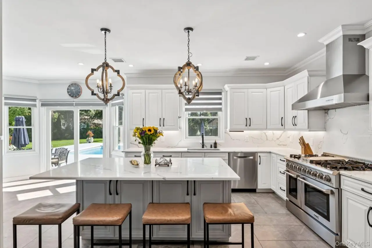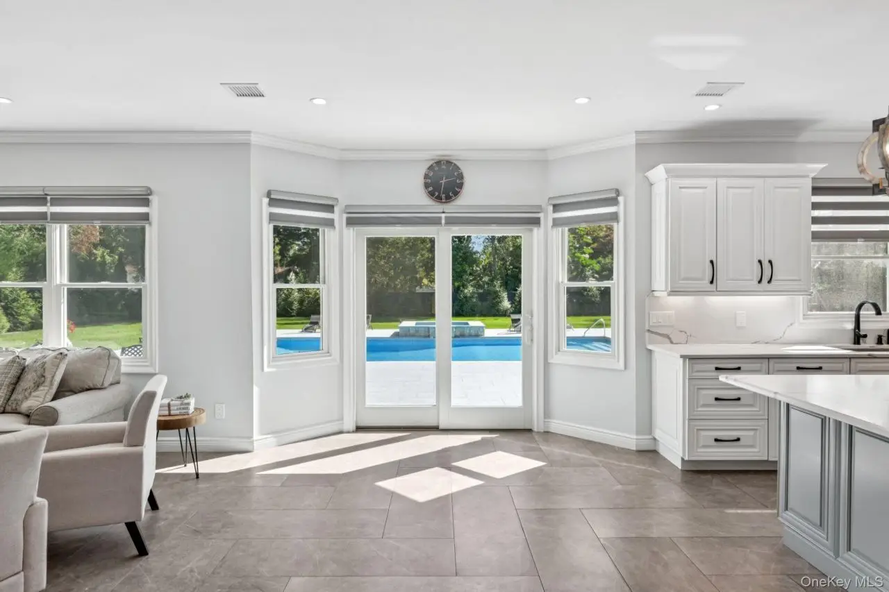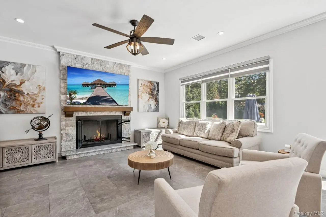 Luxurious newly built custom Colonial on 1.3 acres offers the scale and presence of a true East Northport estate. A long and private drive takes you into a Center Island courtyard and leads you into a three + garage and a welcoming Impressive front approach, with potential unfinished loft over garage for more living space. Wrapped in Stucco and Travertine stone siding. Enter in a double wrought Iron custom doors, soaring ceilings and oversized windows fill the home with light. Chef's Kitchen with a 48 six-burner range, state of the art appliances, Quartz island and custom White cabinetry flows into the family room with natural wood-burning fireplace.The main level features a bedroom suite and full bath for guests or multi-generational living, a large bonus room and access to a full unfinished basement with outside entrance. Central vacuum system provides modern convenience throughout.Upstairs, bedrooms are generously proportioned with walk-in closets, while bathrooms offer spa-quality finishes with floor-to-ceiling designer 3D tile. Second floor full laundry room adds everyday ease.Step out into a backyard designed for resort living, with a natural gas heated saltwater pool, spillover spa, and porcelain decking that stays cool underfoot. Natural gas BBQ, Surround sound Bose speakers, Expansive flat lawns, manicured landscaping surrounded by giant evergreens each with there own water source right down to the drive way entrance for a possible water feature and electric for entry gates. Thoughtful planning on this unparalleled residence right down to an amazing Organic vegetable garden complete the estate.