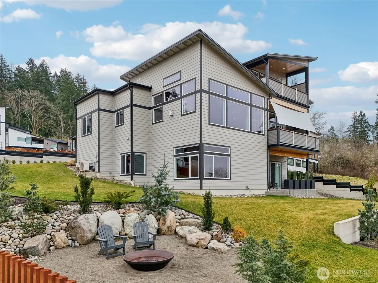 Seller offering a 2-1 rate buydown on the best deal in the River Rock neighborhood. Seller upgraded the home beyond the new construction with SMART home features, sleek finishes, high-tech cabling and more. The top-floor suite boasts a private balcony with breathtaking views, private washer & dryer, & a spa-like retreat. Main level features an open-concept with a large chef's kitchen- complete with an industrial sized fridge & walk-in pantry, & a spacious balcony with an outdoor fireplace. The lower level offers a rec room with wet bar, projector & huge screen, adjacent to a patio, creating seamless indoor-outdoor flow. Enjoy A/C, irrigation, 3-garage, electric gated entrance. Upgraded landscaped yard w/terraced levels, fence & fire pit.