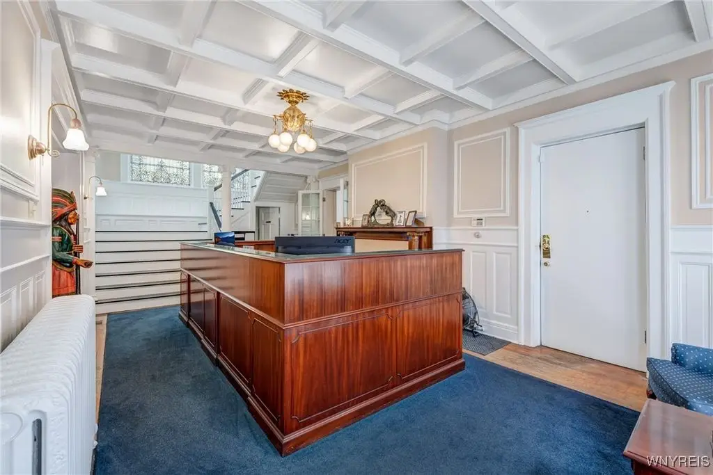 Opportunities galore with this stunning three-unit property which offers an exceptional opportunity for investors looking to acquire a tenant-occupied multi-family building with steady rental income or an owner user looking to offset their mortgage payments with rents. The property has been meticulously maintained and can easily be transformed back into a spectacular, show-stopping, single family home of the highest caliber. Situated in the highly desirable Historic Preservation District, the second and third floor units are fully leased with reliable tenants, ensuring immediate cash flow from day one. The building consists of three spacious floors, featuring original woodwork, ornate handles, and historic details that simply cannot be replicated. The impressive first floor is currently being used by the owner as an office. It has a front reception area with fireplace, conference room, formal office with fireplace, bathroom, kitchen, central AC and more. The rental units have updated well-equipped kitchens, in-unit laundry, comfortable living spaces, and ample natural light. The second-floor unit has high ceilings, two large bedrooms, two full baths, and a spacious family room with beautiful fireplace. The third-floor unit has two large bedrooms, an eat-in kitchen, and rear porch. Upgrades to the electric, circuit breakers, generator, AC and more. Roof(2015). Full basement houses all the mechanics and currently being used for storage. Full concrete driveway, ample parking spaces, and a two-car garage! Located within close proximity to local amenities such as shops, restaurants, parks, and public transportation. This property provides both convenience for tenants and strong potential for long-term value growth. Whether you're looking to expand your real estate portfolio or seeking a chance to live in one of Buffalo's most premier residences, this property offers a fantastic opportunity for investors and homeowners alike. Sqft is 5,272 professionally measured with floorplans provided.