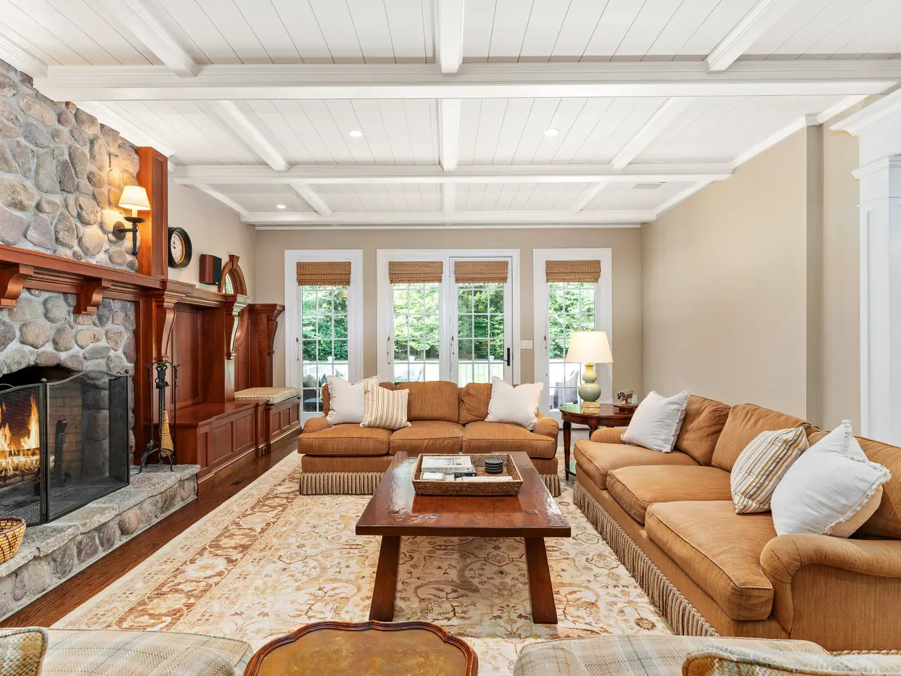 This stately 5 BR shingle style colonial with over 7000 sf in favored Sturges Ridge neighborhood is a memory-making treasure! With a level backyard that plays host to games, gardens and gatherings including a lobster bake, birthday parties with water slides, badminton, croquet, the view to witness joyful connection is endless. The home is a haven of warmth and sophistication, and offers large spaces for big groups and special smaller rooms for cozy togetherness. Have a crowd help you prepare a meal in the kitchen while the game is on in the handsome Family Room with rich coffered ceiling, stone fireplace and fully outfitted wet bar. The newly remodeled lower level entertainment center has a deluxe kitchenette with stone backsplash and quartzite countertop, dishwasher, fridge and sink, as well as plenty of storage in one of the cleanest basements you'll ever see. Large Primary BR Suite includes a gas fireplace, walk-in closet, full bath with double vanities and separate tub. All bedrooms are spacious with adjacent or ensuite bath, and the bonus room off back stairs can be anything you want: playroom, music room, dance studio-use your imagination! A special feature is the 3rd floor office with available business grade router and hard wired data/internet. Quiet, peaceful and a true getaway for focused working (and sometimes a little putting practice). These owners have been meticulous about maintaining their beloved house. The care is apparent, as is their true joy in living here.