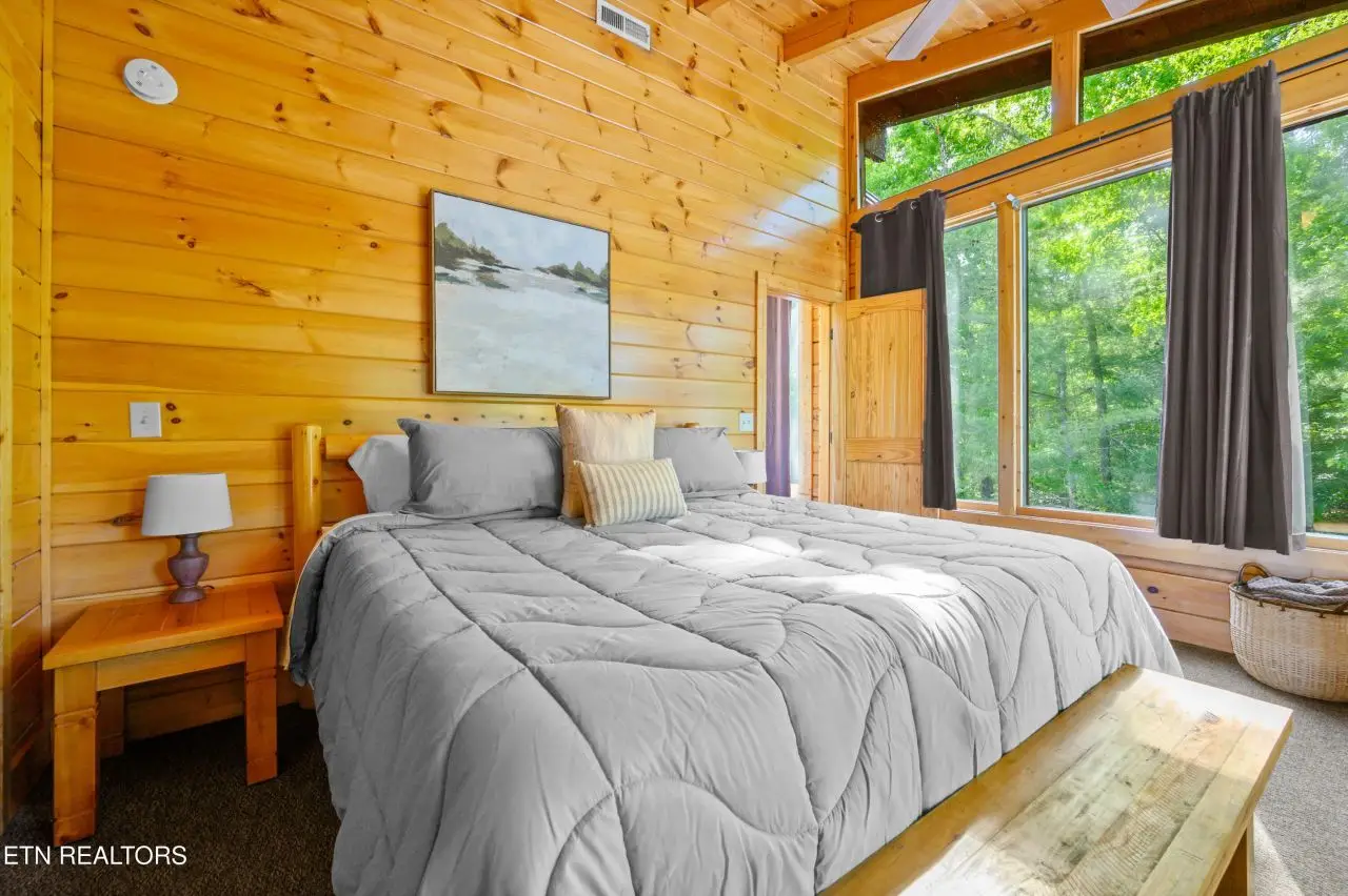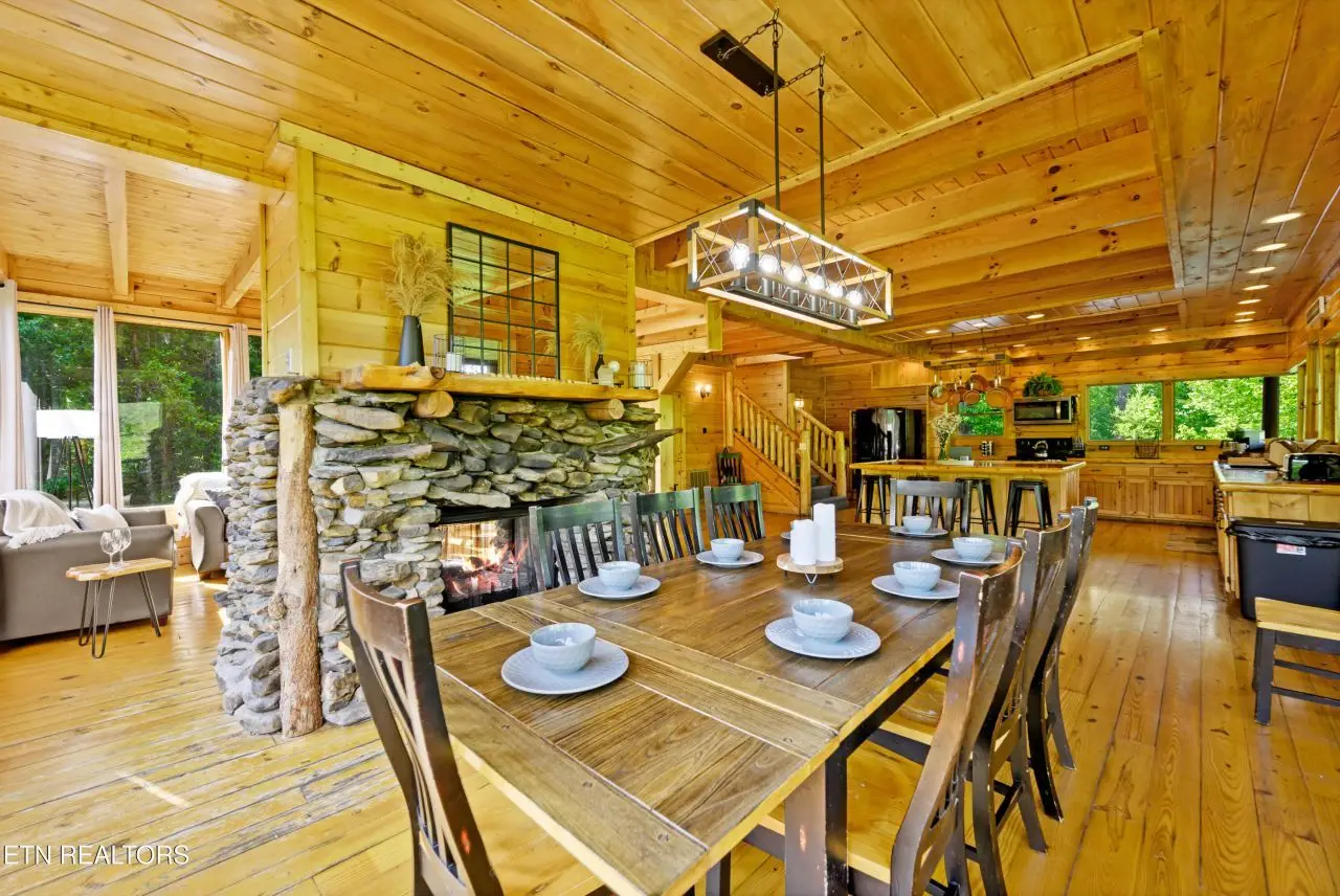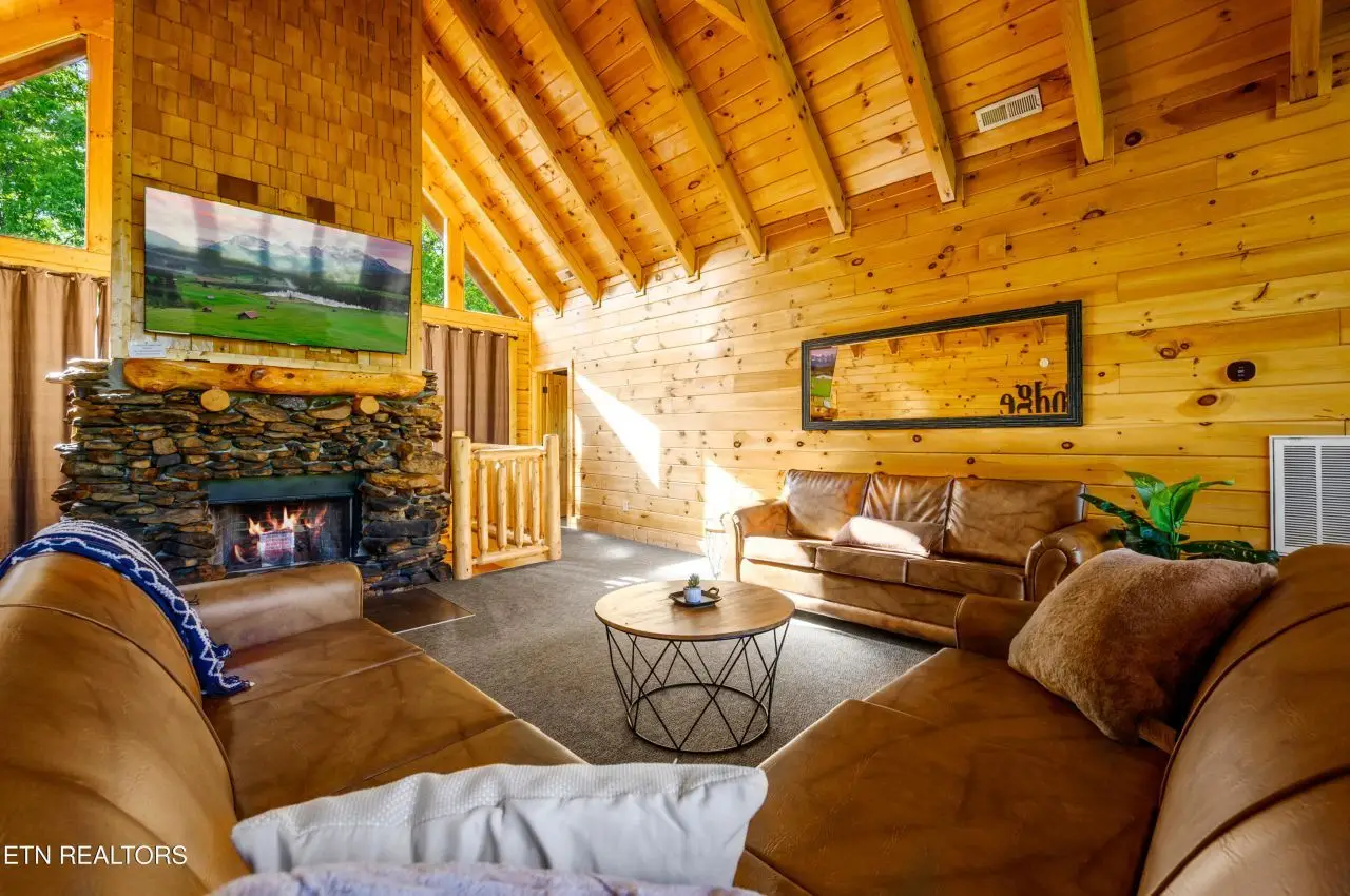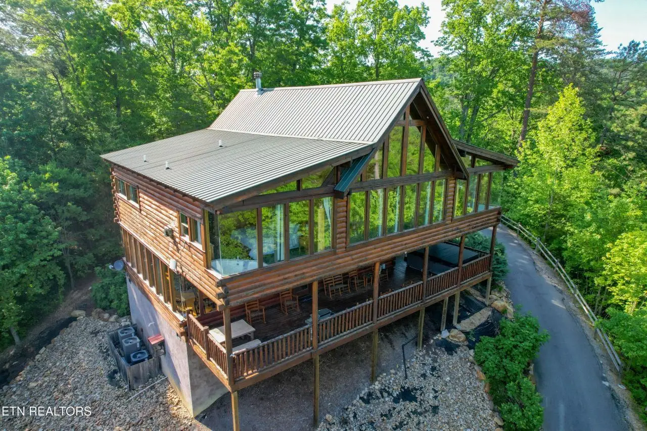 Don't miss this incredible income-producing cabin located in the private, gated community of Brother's Cove! This stunning property grossed $135,000 in 2023 and $100,000 in 2024, all while being self managed by the owner part-time making it a proven and profitable short-term rental investment. Conveniently located just 15-20 minutes from Pigeon Forge, Dollywood, and Splash Country, with Gatlinburg only 10-15 minutes further, this cabin offers the perfect blend of seclusion and accessibility. Nestled on 2.36 beautifully landscaped acres at the end of a cul-de-sac, the setting immediately captures your attention with lush plantings and gorgeous river rock accents. A short, well-kept trail leads to a cozy outdoor firepit area surrounded by polywood Adirondack chairs - perfect for gathering under the stars. The front deck welcomes you with a massive 10-person hot tub, setting the tone for the comfort and relaxation inside. Step through the door into a spacious open-concept floor plan featuring soaring 12+ foot ceilings and an abundance of natural light. The kitchen is equally impressive, offering updated appliances and an oversized island perfect for entertaining. The living and dining areas center around a custom stone gas fireplace, with a convenient half bath and laundry room also located on the main level. Upstairs, the open layout continues with tall ceilings and exposed wood rafters adding warmth and character. Four bedrooms, each with its own en-suite bathroom, are thoughtfully placed in each corner of the second floor. Guests love the central game area complete with a pool table, shuffleboard, and a large TV mounted over another beautiful stone fireplace. Expansive walls of glass throughout the cabin frame breathtaking views of the Great Smoky Mountains, while the large wrap-around deck offers additional space to relax and take in the scenery. With impressive rental history, incredible amenities, and a one-of-a-kind setting, this is one you don't want to miss. Call today to schedule your private showing before it's gone!