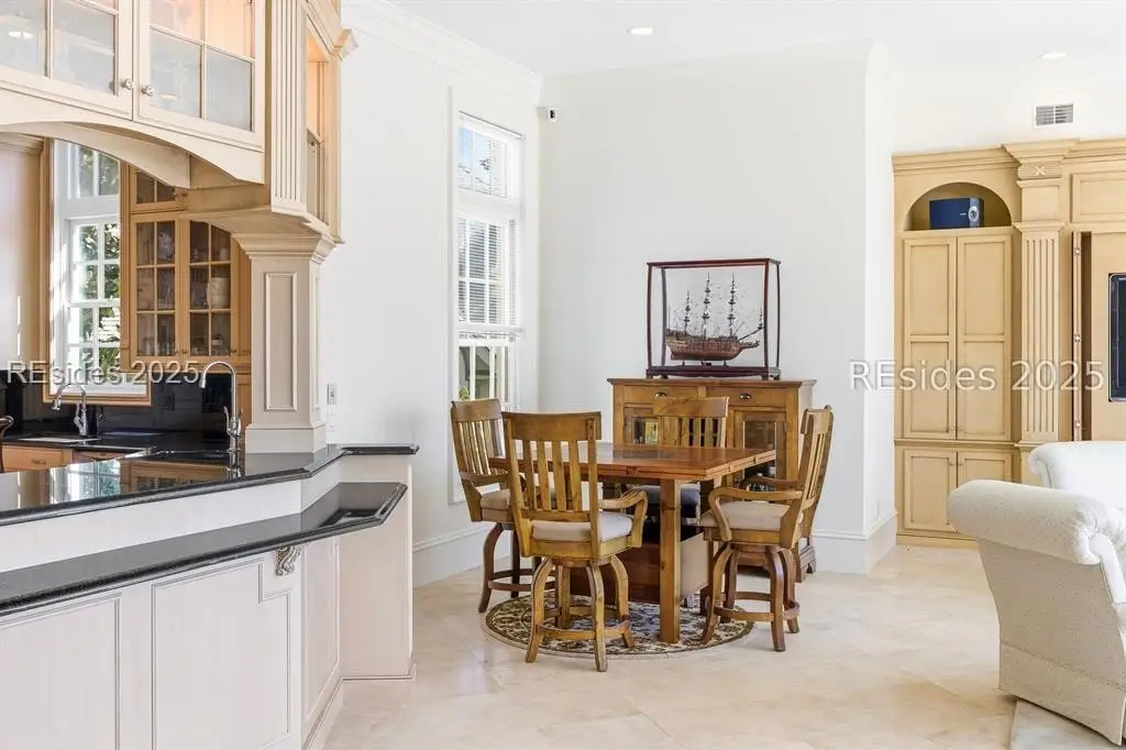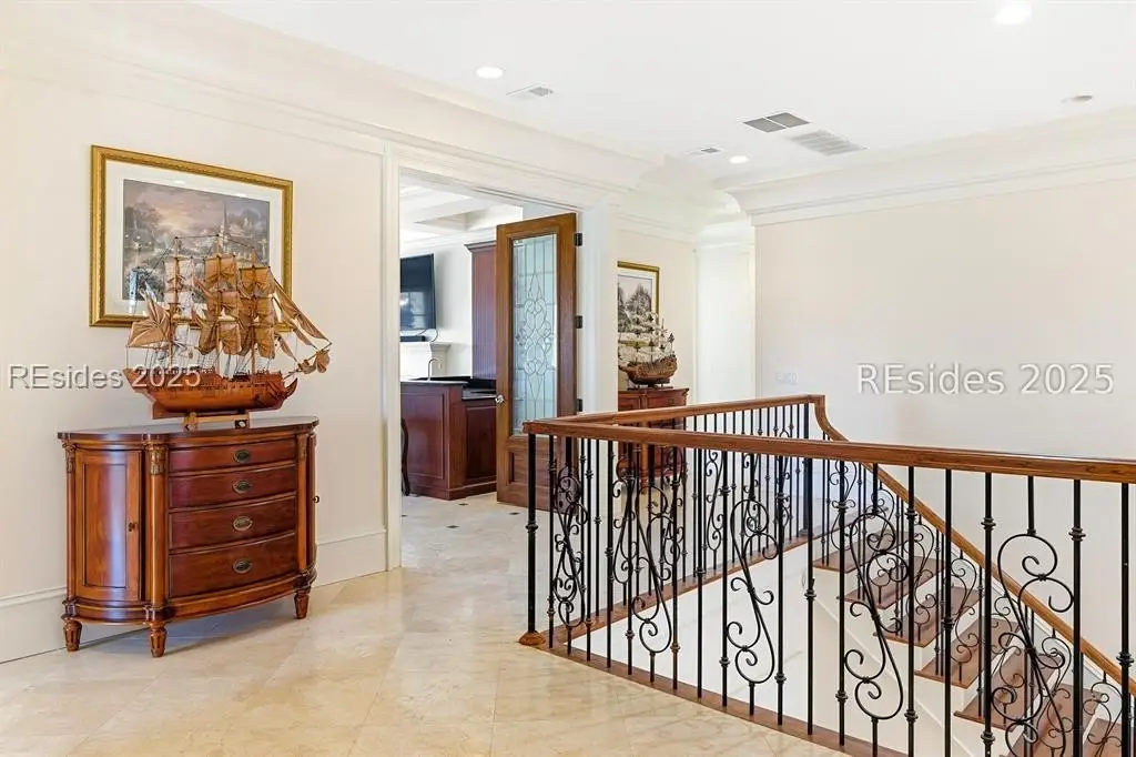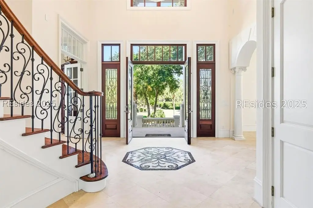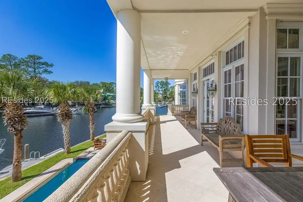 Experience stunning harbourfront living at 63 Bridgetown Road, where sweeping views of Wexford Harbour and the Clubhouse set the stage for breathtaking sunsets and elegant Lowcountry living. Two levels of rear decks, a 70' private dock, and a private pool with a covered lanai create an unmatched setting for outdoor entertaining and relaxation.Inside, the main level offers a spacious and thoughtfully designed layout perfect for both everyday comfort and hosting guests. The home features a formal living room, a cozy family room off of the spacious kitchen, a dedicated office, and a formal dining room. The main-level primary suite is exceptionally large, showcasing beautiful harbour views, dual walk-in closets, and luxurious finishes. A powder room, convenient laundry area, and easy elevator access complete this level, blending elegance with practicality.Upstairs, you'll find the second primary suite along with two additional ensuite bedrooms. A generous game room with a bar and full bath adds to the versatility of the space - it can easily serve as a fifth bedroom, media room, or entertainment area. A second laundry room adds convenience for upper-level living.On the ground level, a finished drive-through garage offers exceptional functionality with room for four or more vehicles-a rare feature in Wexford that combines practicality with luxury.As a Wexford resident, you'll enjoy world-class amenities including a private marina, championship golf, tennis and pickleball courts, croquet, clubhouse dining, a resort-style pool complex, and a vibrant year-round social calendar. Exciting improvements are underway - an expanded Clubhouse and a brand-new Harbour Center are scheduled for completion in April 2026, enhancing Wexford's already unmatched lifestyle experience.With timeless design, versatile living spaces, and spectacular sunset views, 63 Bridgetown Road stands as a truly remarkable waterfront residence in one of Hilton Head Island's most distinguished private communities.