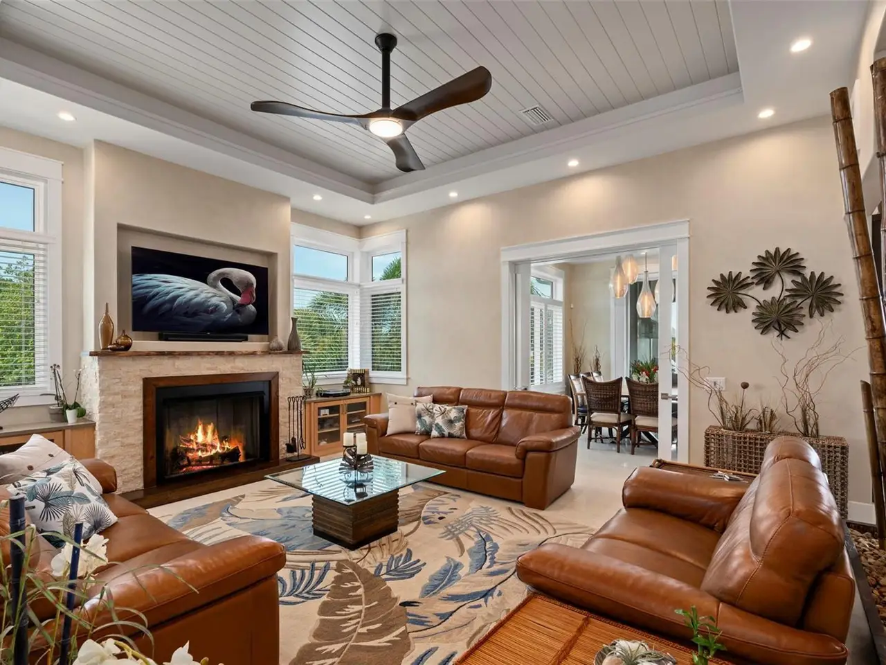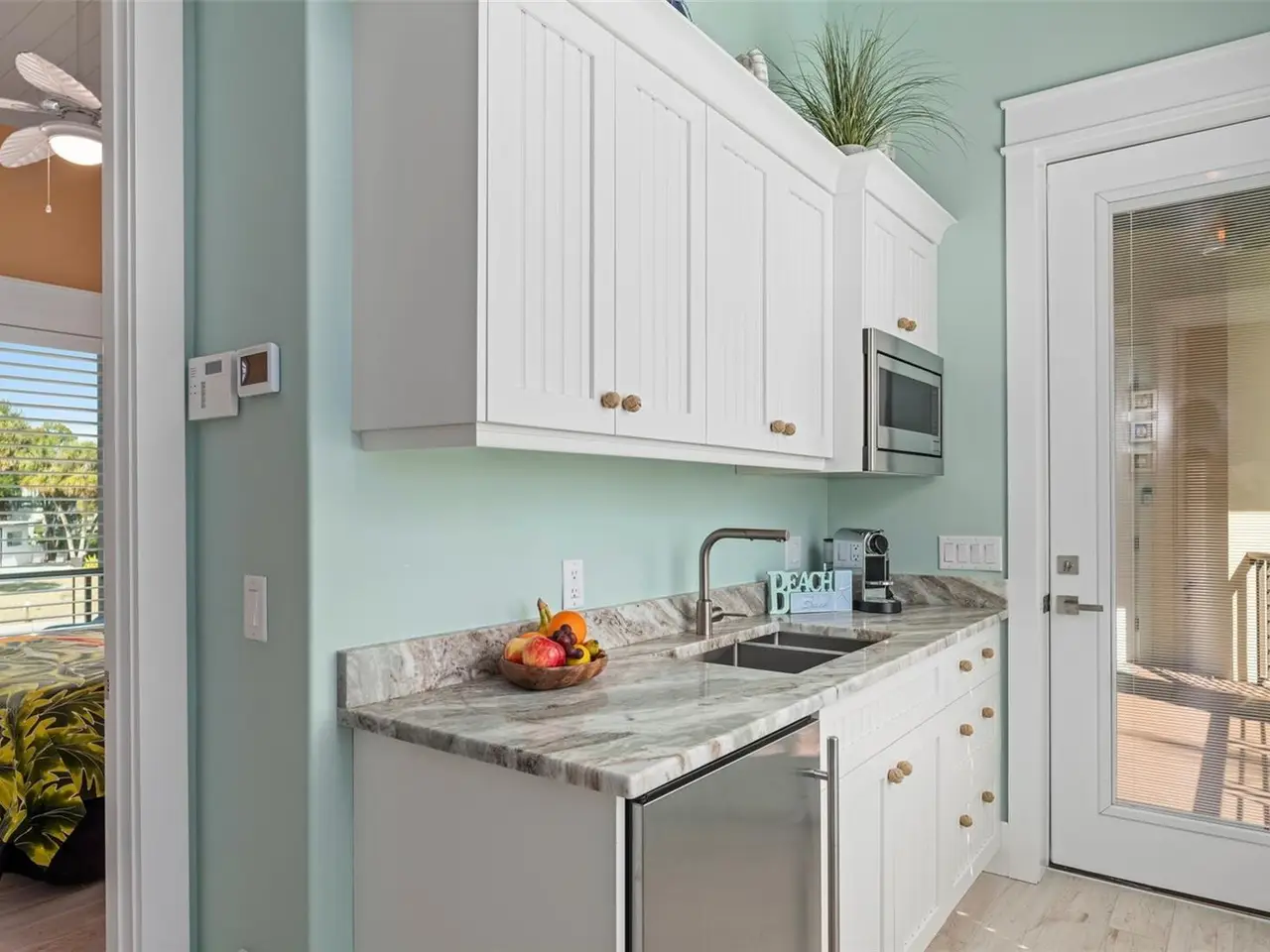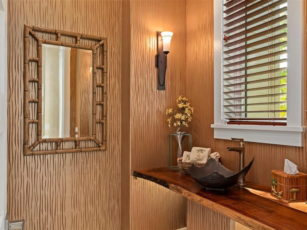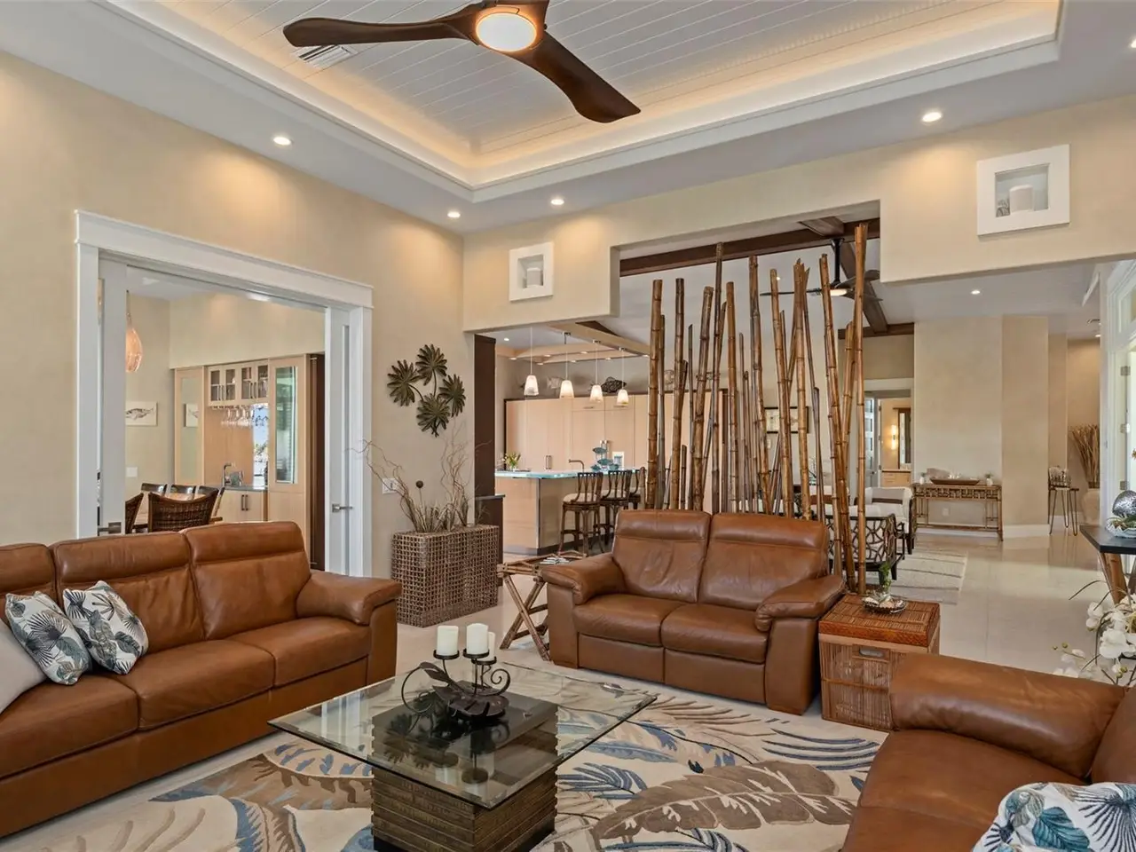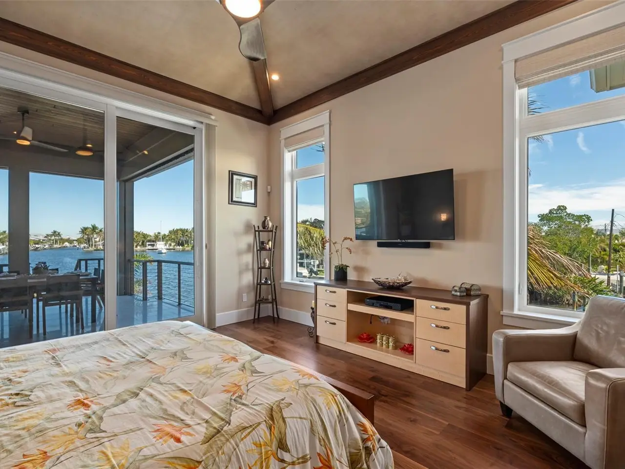 A rare opportunity now exists to own what has been described by many as one of the most beautiful homes on Anna Maria Island. This remarkable family estate has it all: location, architectural beauty and quality, elevated construction. In a sea of homes renovated or built for rental income, this property stands out as a true family residence, constructed to withstand the storms, yet take advantage of the beautiful Florida weather. Newly built in 2020, the spectacular home is set on a stunning triangular, gated property with over 500 feet of water frontage. It is located on the only street on the island that directly accesses both the famous beaches of Anna Maria and the pristine boating waters of Bimini Bay. With Anna Maria’s ideal climate, this home brings a seamless flow between indoor and outdoor living. The 3850 feet luxury air conditioned, elevated home combines with a further 4000 feet of covered and finished living space, to create an expansive family residence that is ideal for entertaining guests. Stepping out of the elevator into the huge vaulted great room, you are met with spectacular views over Bimini Bay. The stunning chef’s kitchen, with imported cabinetry and illuminated glass countertops, adjoins the family dining room with seating for ten and a living room with a fireplace for the occasional cool winter night. Throughout the home, imported cabinetry and Tahitian-inspired finishes reflect craftsmanship and thoughtful design. When not needed, a 20ft set of hurricane safe glass doors disappear into the outdoor walls, allowing a seamless flow from the kitchen onto the massive covered lanai The 800 square foot lanai, with retractable screens, is home to a full outdoor kitchen, a Teppanyaki cooking table with seating for eight, a built in fire table, outdoor dining and seating areas, and it has direct access to the elevated spa. All of this with spectacular views of Bimini Bay, over the resort-style pool below, the tropical gardens, fire and water features, and a waterfront “beach” fire pit, where family and guests gather beneath the stars. In the main house, there are two luxurious primary bedrooms enhanced with full ensuites, while in the guest house, connected by a covered bridge, there are two additional bedrooms, a full bathroom and a kitchenette providing a private retreat for your guests or the grandkids! A 20-foot dock is ideal for launching the Kayaks or SUP, while serious boating enthusiasts will appreciate 500 feet of new concrete reinforced seawall, a 60-foot boat dock, and a 12,000 lb. boatlift, with direct access to Tampa Bay and the Gulf of Mexico. This estate truly represents one of the island’s most distinguished offerings. Private viewings are available exclusively by appointment. Meanwhile, you are welcome to enjoy a narrated video preview at the property’s private website, amidreamhome.com.