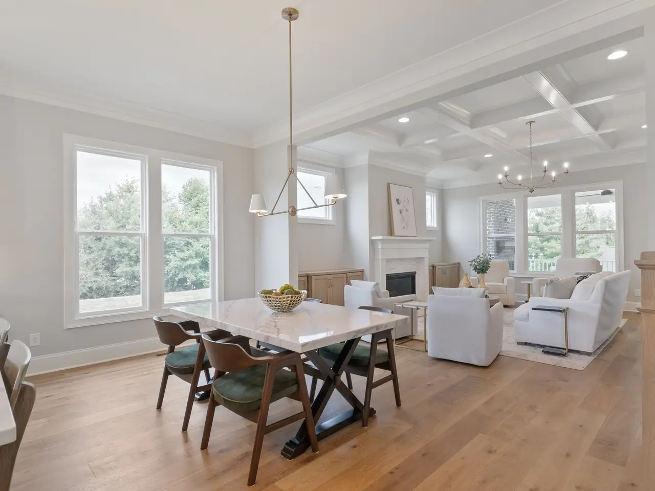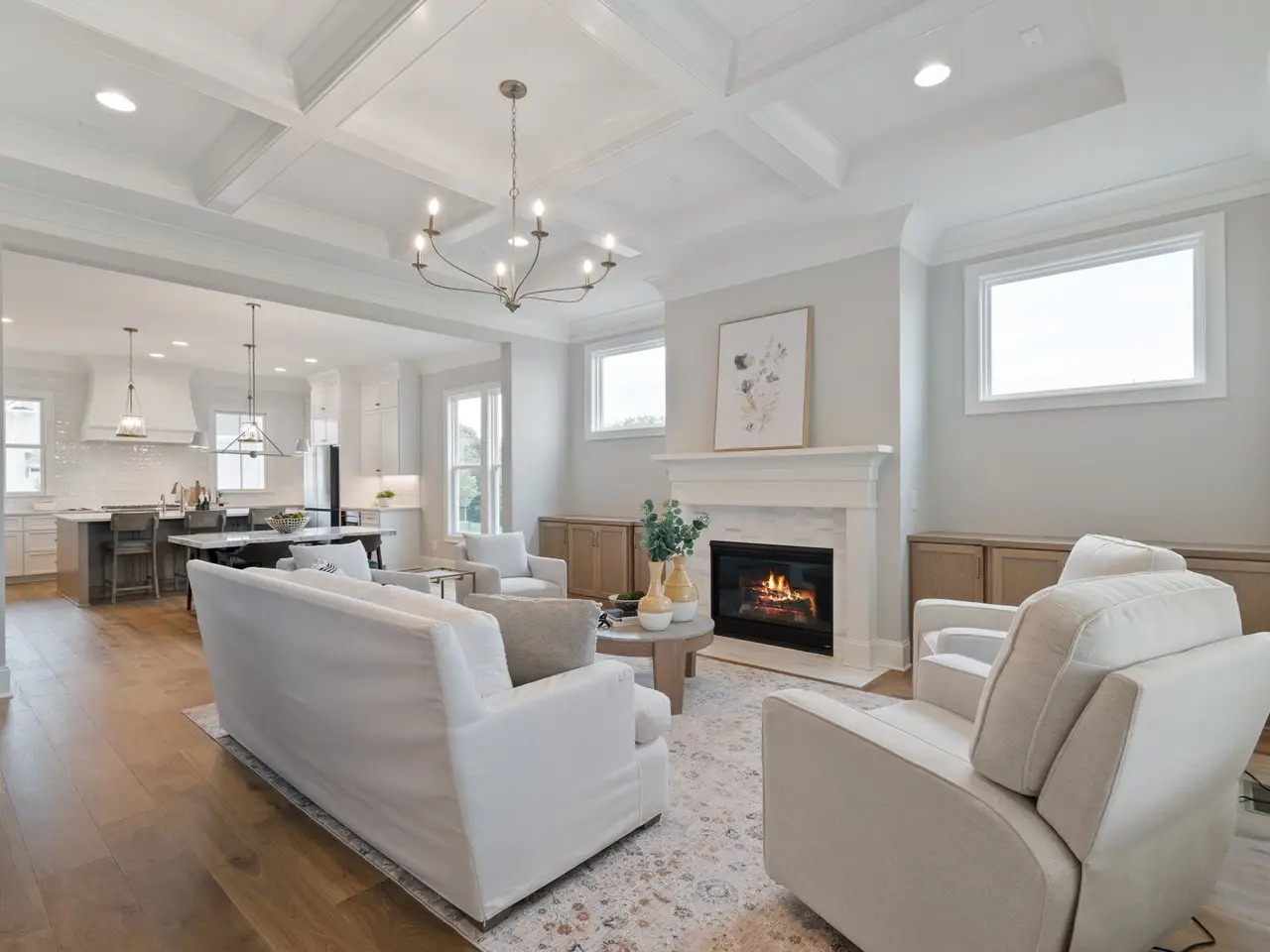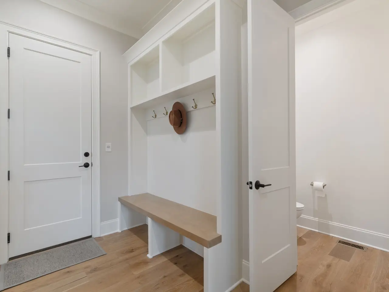 This stunning four bedroom, 4.5-bath home offers the perfect blend of elegance, comfort, and functionality--inside and out. Ideally situated on a desirable corner lot in the sought-after Southbrooke community, the charming exterior sets the tone for the thoughtfully designed interior filled with high-end finishes, custom details, and exceptional craftsmanship throughout. Step inside to discover a bright, open layout with amazing natural light, hardwood flooring on the main level, and crisp white finishes accented by warm natural wood tones, creating a clean yet inviting aesthetic. The chef's kitchen is a true showstopper, featuring ceiling-height custom cabinetry, a full-height tile backsplash, upgraded appliances, a spacious center island, and a walk-in pantry with built-in shelving. The adjacent living room exudes character with a coffered ceiling, built-ins flanking a gas fireplace, and large windows that flood the space with light. Just off the kitchen is a functional drop zone with built-in hooks, bench seating, and cubbies--perfect for keeping daily life organized. The main-level primary suite is a serene retreat with a natural wood beam ceiling, a spa-like bath featuring a standalone soaking tub, an oversized walk-in shower with floor-to-ceiling tile, double vanities with ample storage, and a custom walk-in closet. For added convenience, the laundry room is located just steps away. A private office on the main floor provides the ideal work-from-home setup, while the upper level offers three generously sized bedrooms, three full bathrooms, plus a spacious bonus/rec room perfect for relaxing or entertaining. Enjoy outdoor living year-round on the covered back porch with a wood-burning fireplace, overlooking the fully fenced backyard. The covered front porch offers yet another cozy space to enjoy Middle Tennessee's beautiful seasons. This meticulously maintained, move-in-ready home truly has it all--luxury, livability, and location.