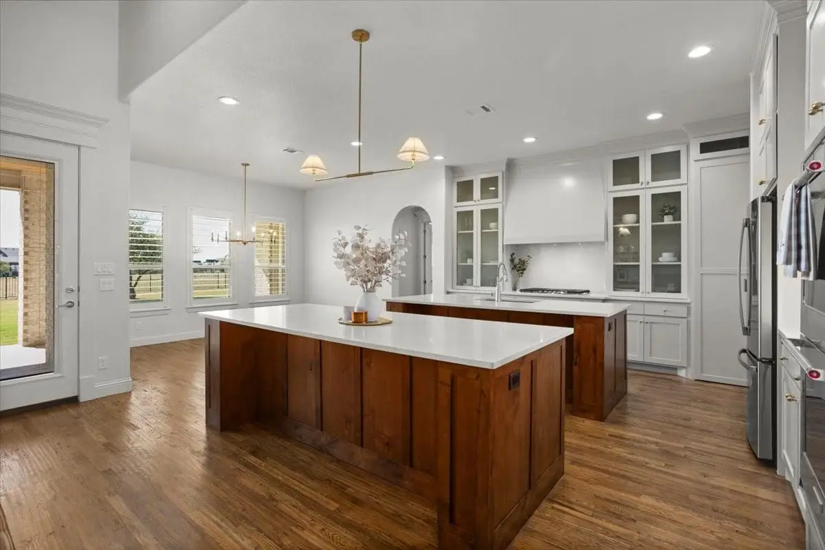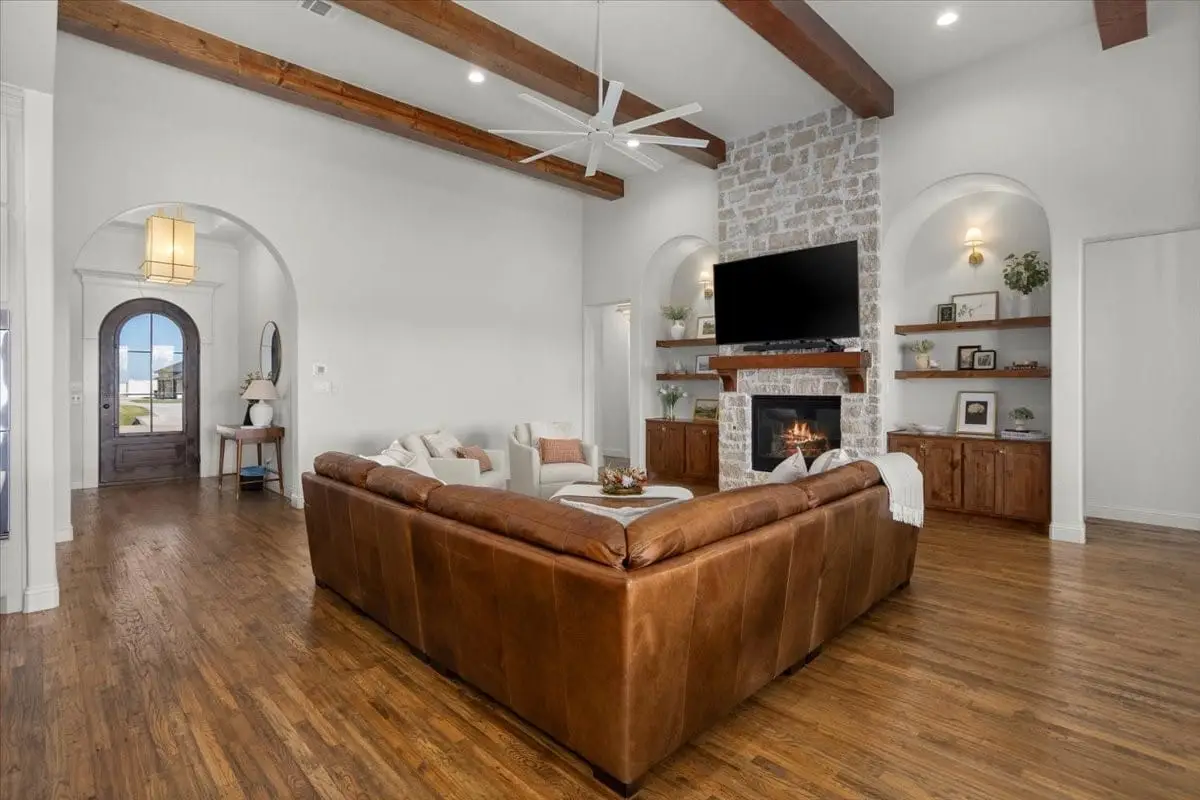 Looking for a newer home with some space? This is it! Welcome to this gorgeous single-story home in Bella Crossing! Recently built by Couto homes, this showstopper was designed with every detail in mind. Complete with 4 bedrooms and 4 full baths, a private office, plus an additional bonus-media room and plantation shutters throughout. This one is the perfect combination of luxury and comfortable modern living. Upon entering, you will be greeted by the large living room, anchored by the impressive floor to ceiling fireplace, gleaming wood floors, expansive ceilings, and loads of natural light beaming in through the expansive windows. Equally stunning is the chef's kitchen, featuring two spacious islands, gorgeous combination of custom solid and glass cabinetry with lots of storage. Double ovens, gas stove, walk-in pantry, and adjacent butlers pantry allow for opportunities for entertaining small and large gatherings alike. The luxurious primary suite is a true retreat, featuring an ensuite bath with a gorgeous double vanity, custom-designed wet room with dual shower heads, a freestanding soaking tub, plus a stunning walk-in closet complete with built-in dressers and shoe storage.A hard-to-find oversized four-car garage with insulated doors, epoxy flooring, and additional storage space provides both function and flexibility. The expansive 1+ acre lot offers endless potentialwhether you envision a custom pool, putting green, or private sports court, theres room to create your dream outdoor oasis.