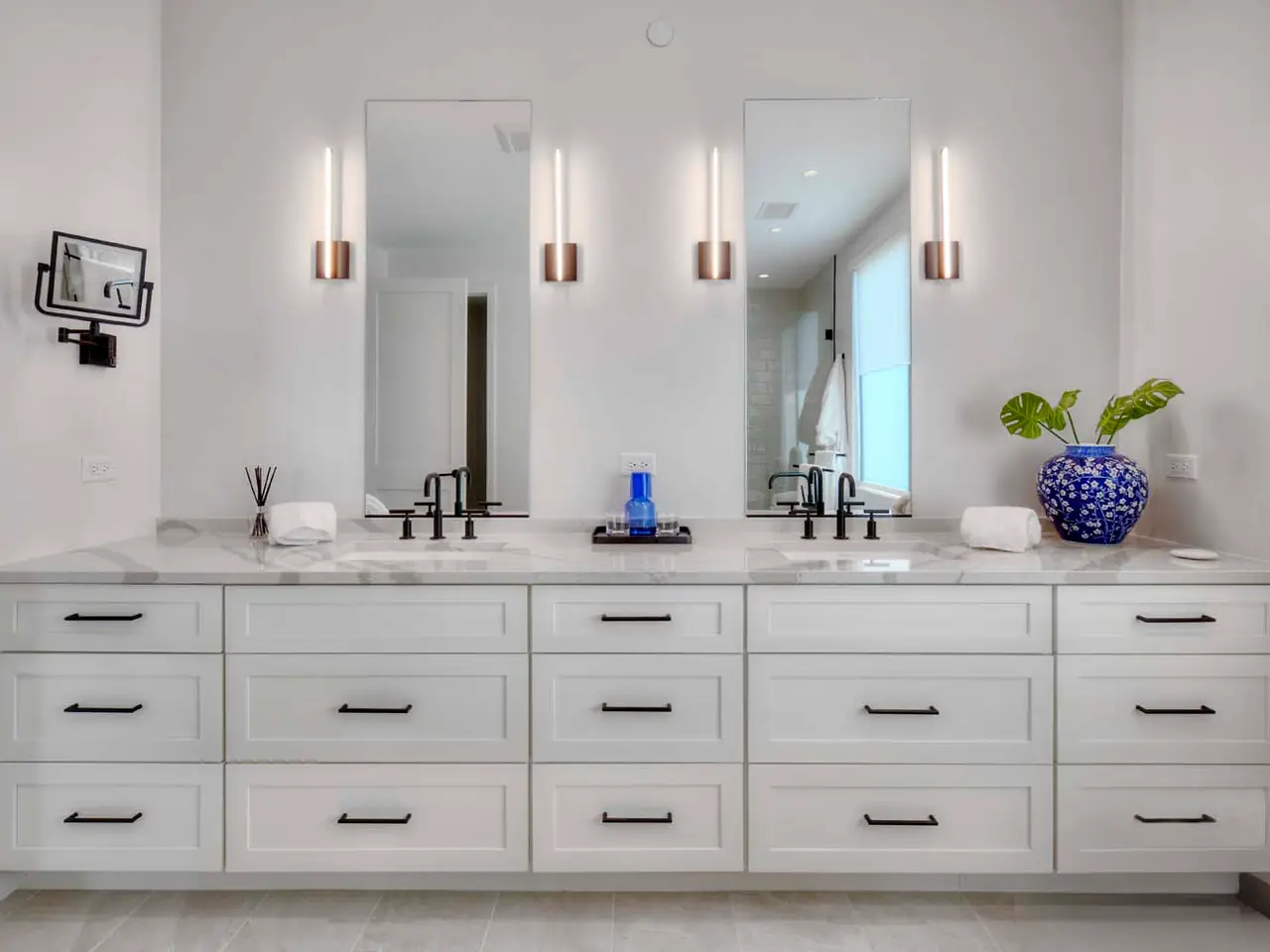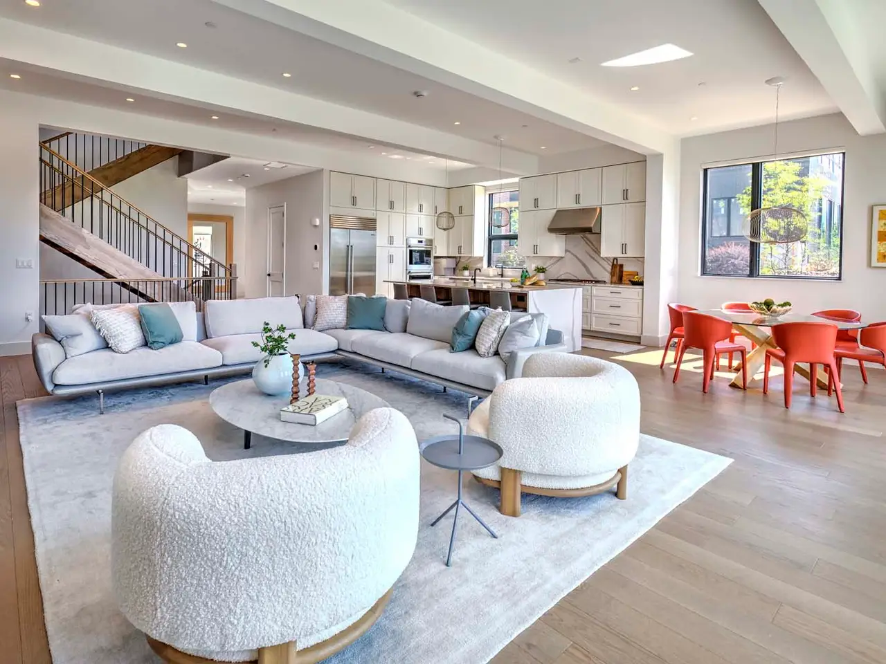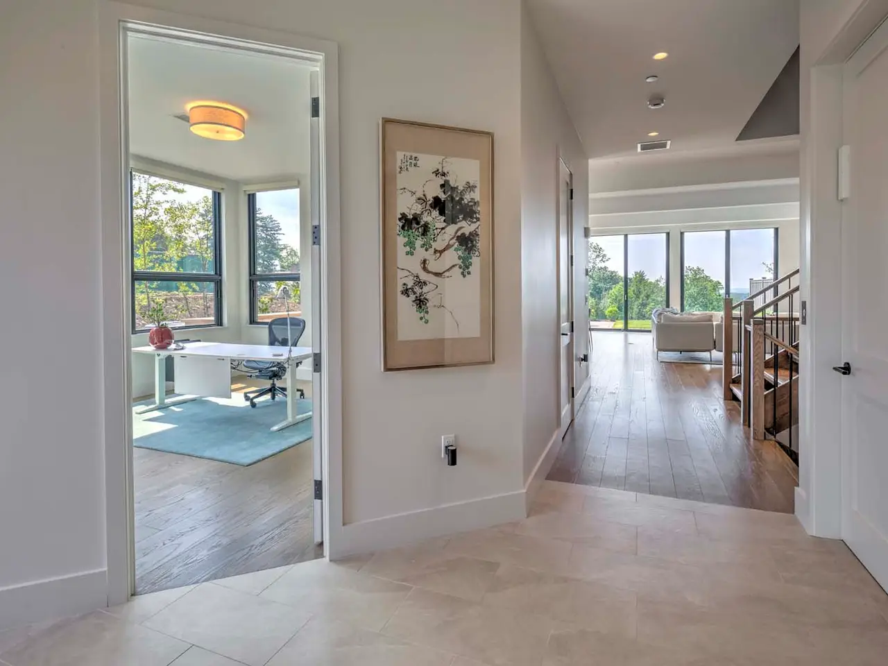 • Wide plank white oak hardwood and porcelain flooring