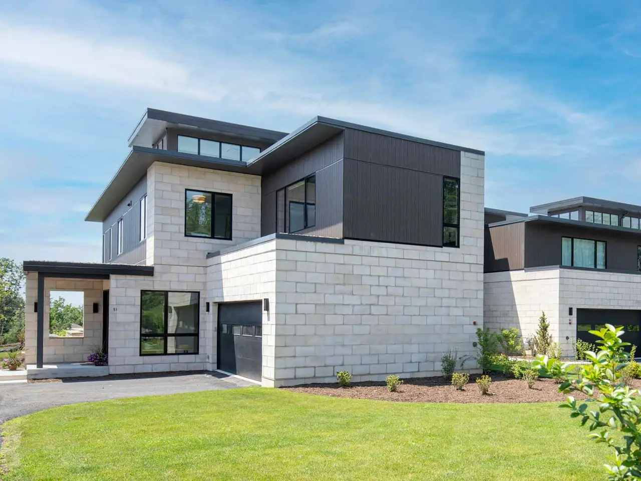 • Architecturally nuanced exterior with Nichiha cement fiber siding and cultured stonework