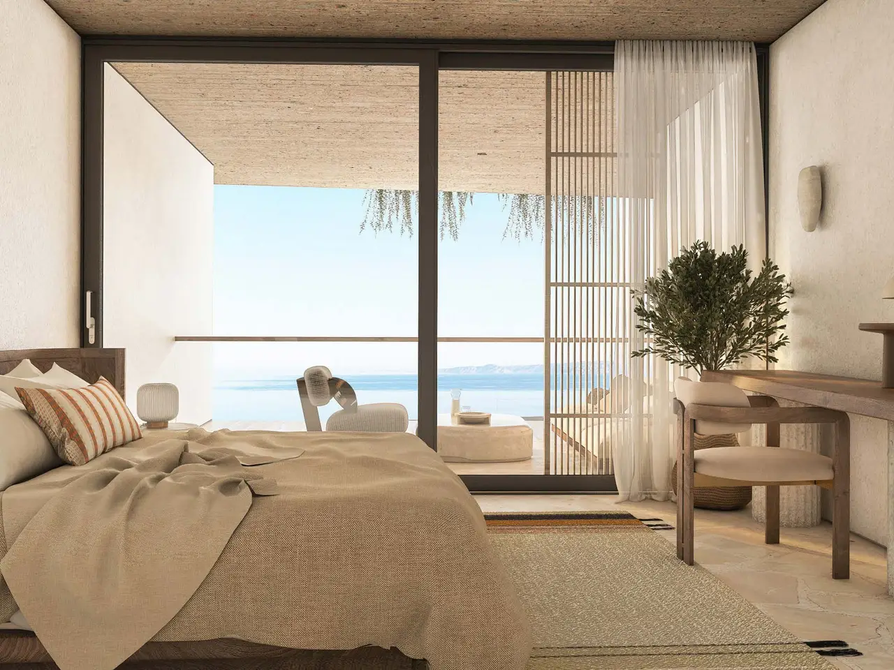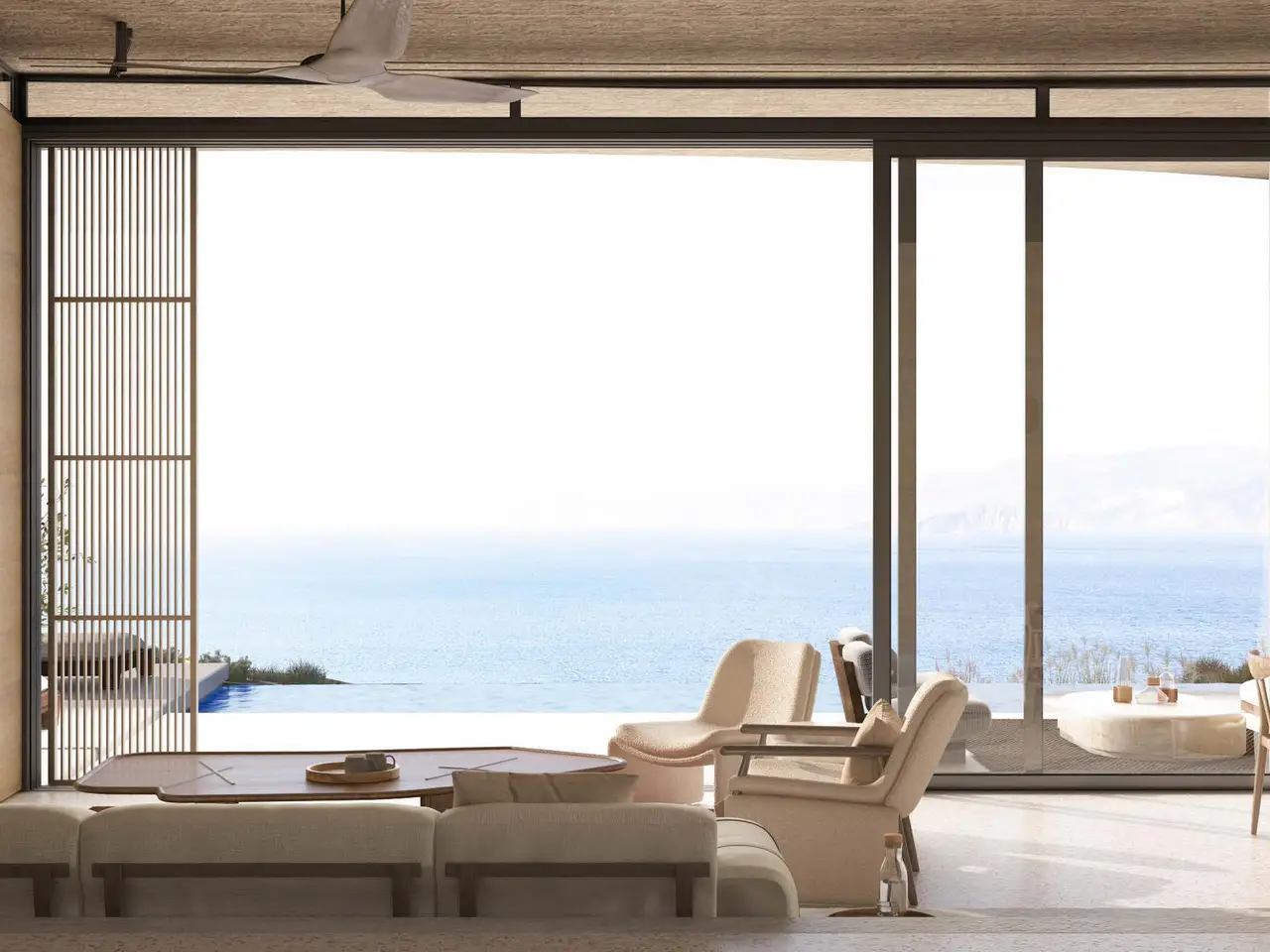 Unwind in opulence at Elounda's beachfront resort, just 25 minutes from Heraklion International Airport. Occupying 557,000 square meters of elevated coastal terrain, this haven offers breathtaking sea views, a luxurious hotel, and exclusive homes. Delight in amenities like a retail center, amphitheater, botanical gardens, sports facilities, business services, a marina with a yacht club, beach clubs, and diverse dining options for an unforgettable escape. Perched at the resort's summit, the spacious 2-bedrooms branded apartment boasts commanding bay views with distinctive layered architecture seamlessly integrated into the hillside. The 144 square meter residence, adorned with exquisitely designed interiors and floor-to-ceiling windows, maximizes natural light and showcases spectacular views through the swimming pool. A sizable 67m2 balcony adds to the allure, while available parking ensures convenience for your indulgent getaway. Experience luxury at its peak in this coastal retreat. Features: • 144 square meter accommodation • Floor-to-ceiling windows • Spectacular views • 67 square meter balcony • Swimming pool • Parking Asking selling price if furnished: 1.058.400€