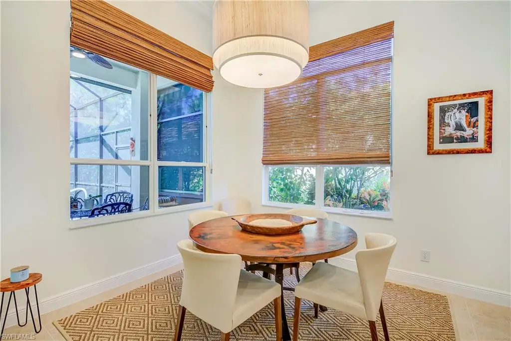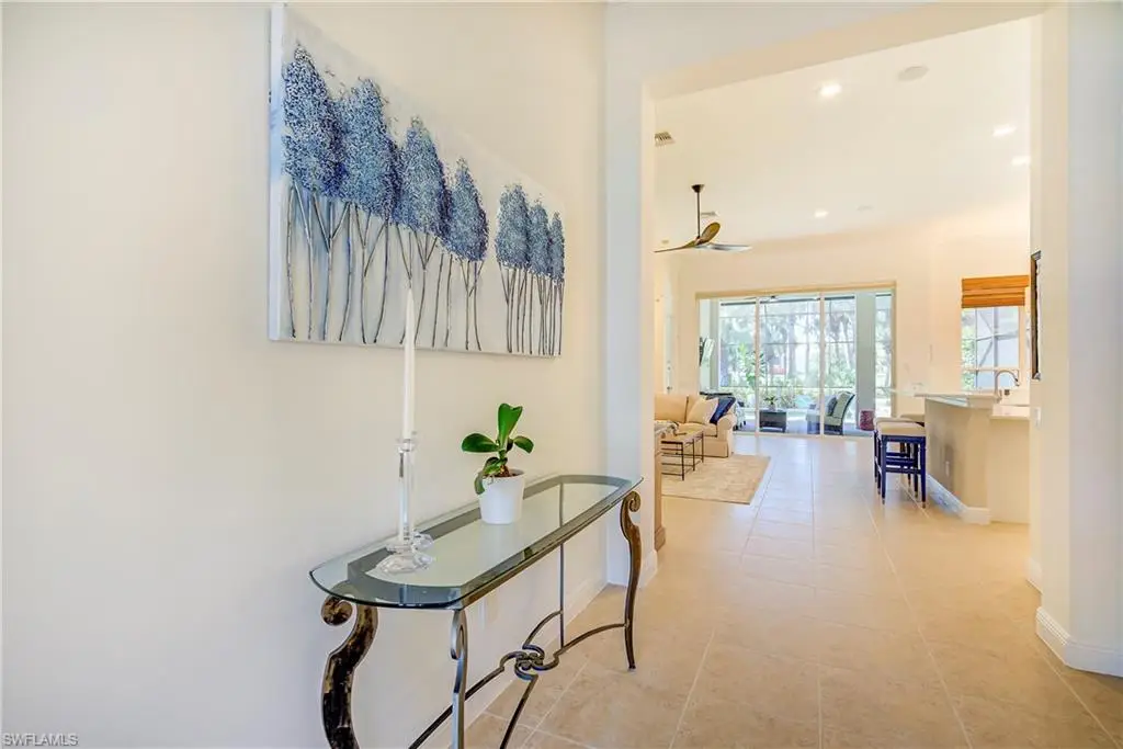 Golf membership included! Enjoy immediate access to Vasari Country Club with no waitlist. Beautifully maintained and thoughtfully updated, this residence offers 2,544 sq. ft. of comfortable living with 3 bedrooms, 2 baths, a den, a formal dining room, and a 2-car garage. One of Vasari's most desirable floor plans, the home has a simple, fresh, Florida-elegant feel with an open layout and split bedrooms for guest privacy. The updated kitchen features quartz countertops, all-new appliances including a double oven, induction cooktop, dishwasher, refrigerator, and microwave, plus a new sink and faucet, designer backsplash, and recessed and under-cabinet lighting. A new washer and dryer complete the laundry room upgrades. The primary suite includes two walk-in closets and a spa-inspired bath with dual vanities, a soaking tub, and a frameless glass shower. Direct access to the lanai brings the home's tropical, peaceful outdoor oasis feel right into the suite. Outside, enjoy a private salt water pool and spa area enhanced with a new pool heater, new pool pump, and color-changing LED lighting, positioned with western exposure for warm afternoon light. The lanai provides generous seating and dining space, along with new fans and lighting, smart hurricane shutters, and refreshed privacy landscaping. Additional updates include new interior and exterior paint, new ceiling fans in the family room and office, professionally cleaned tile and grout, and newer A/C (2024). Residents of Vasari enjoy an amenity-rich bundled golf lifestyle: an 18-hole championship course, golf practice facility, lighted Har-Tru tennis courts, pro shop, bocce, resort-style pool and spa, clubhouse with dining and social spaces, and a full calendar of events. Vasari is also celebrated for its beautifully maintained landscaping and a neighborly, welcoming community spirit. Centrally located near pristine Gulf beaches, downtown Naples, RSW and Naples airports, as well as exceptional shopping, dining, arts, and nature trails, this home truly offers the best of Southwest Florida living.