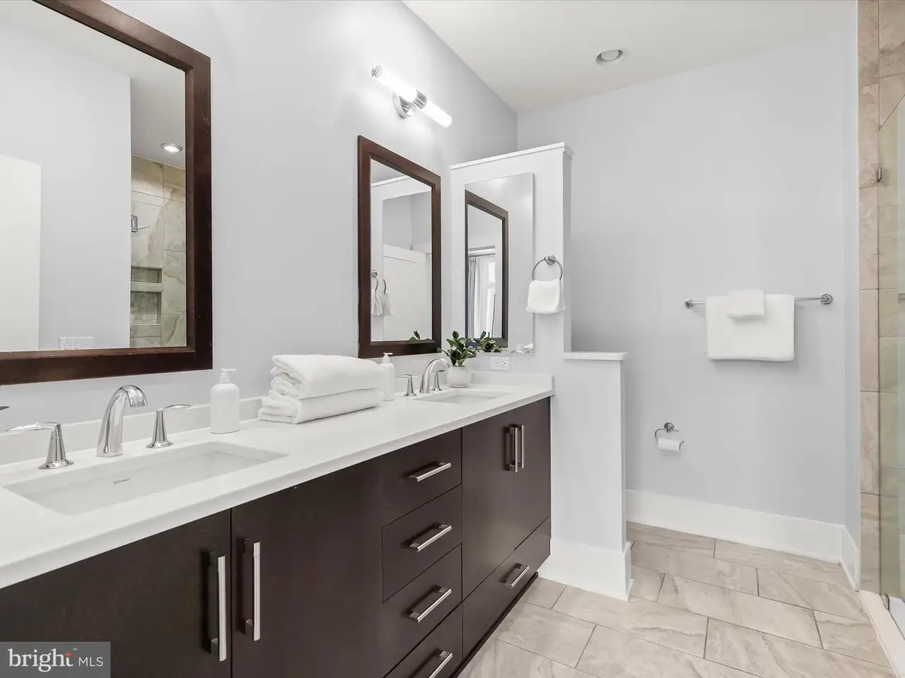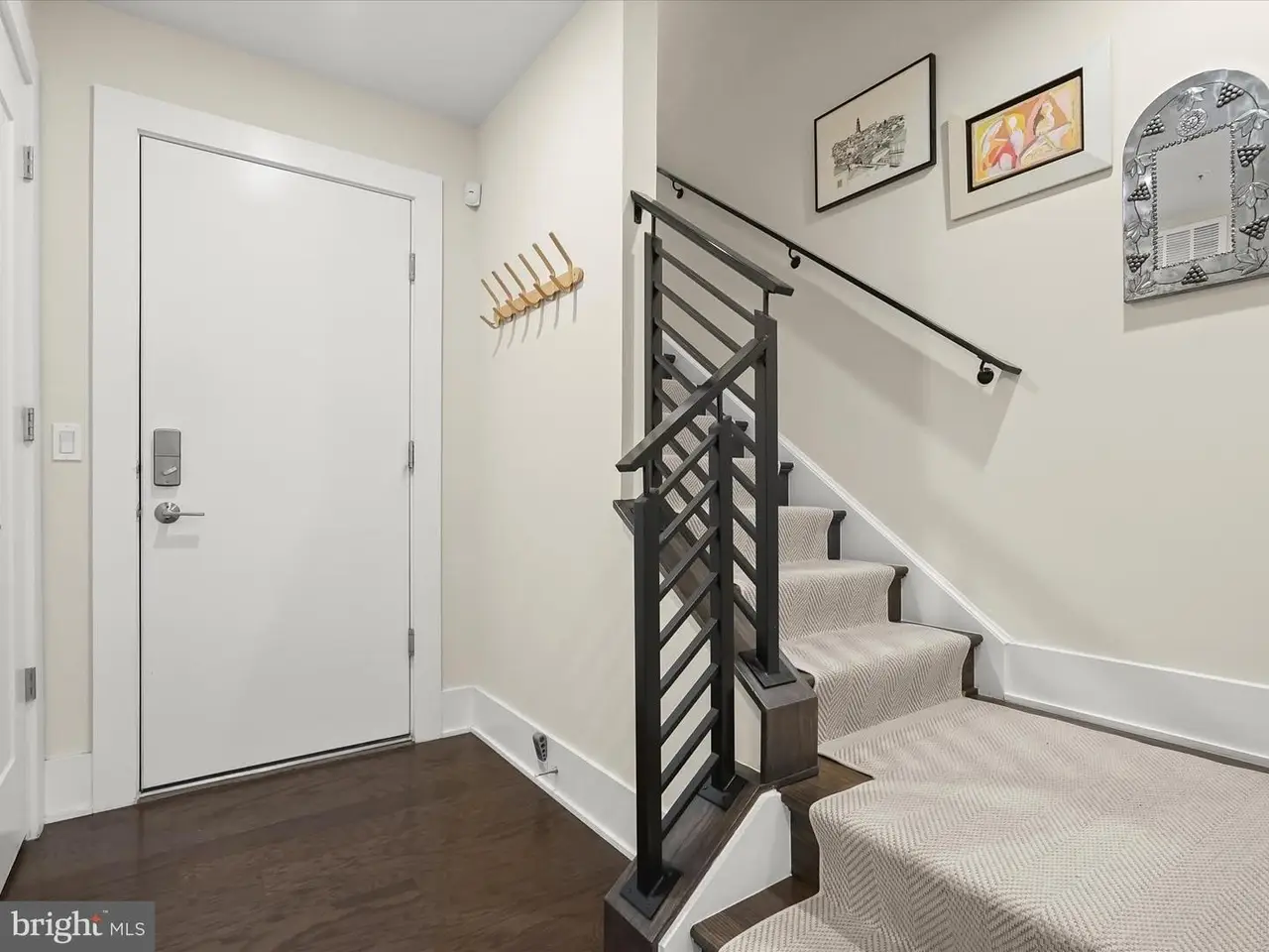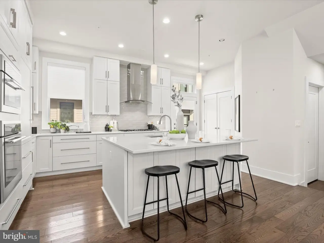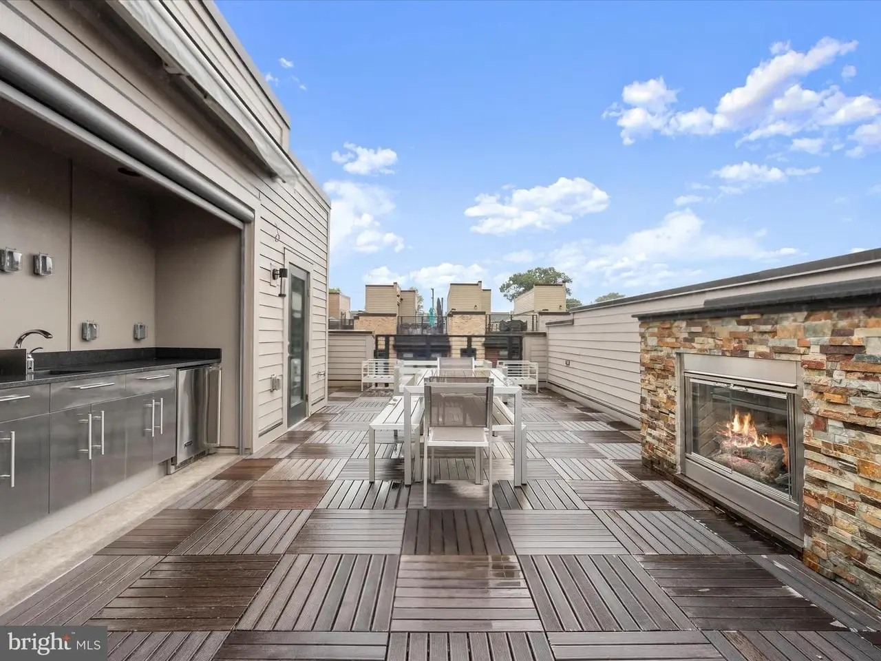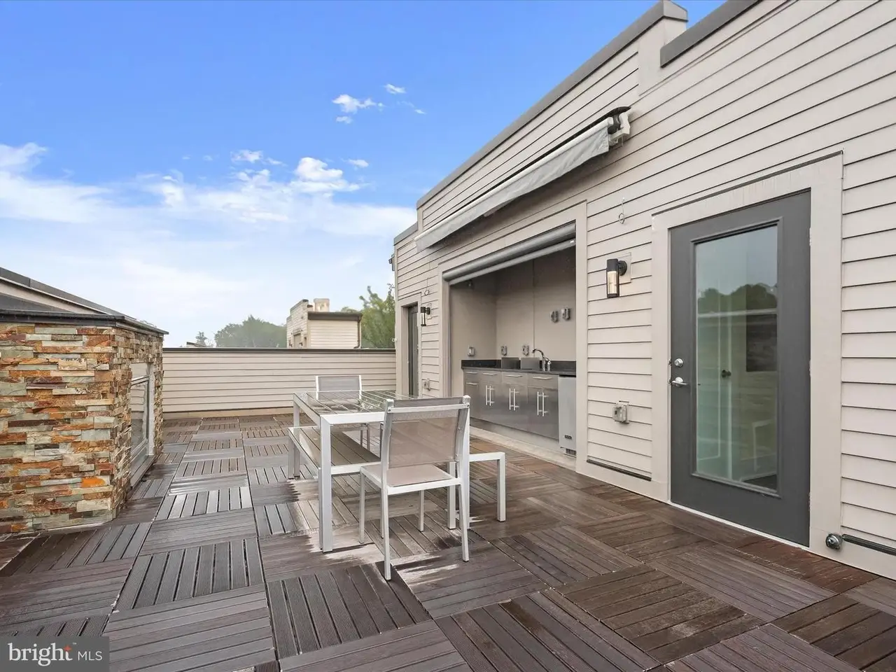 Introducing this exceptional four-level, elevator townhome in the sought-after Grosvenor Heights community in Bethesda, offering four bedrooms, three and a half bathrooms, and remarkable details at every turn. Built in 2019 by award-winning builder EYA, this home provides ultimate convenience with an elevator serving each level, including the rooftop terrace. Step inside the foyer where beautiful hardwood floors and a neutral color theme set the tone that continues throughout the home. The entry level includes a bedroom with a private ensuite bathroom featuring a walk-in shower, ideal for guests, those seeking a quiet retreat, or a home office. This level also provides access to the rear two-car garage. Upstairs, the open concept main level boasts tall ceilings and abundant natural light from oversized windows. The gourmet kitchen is a chef's dream, appointed with high-end appliances including a five-burner gas cooktop, range hood, built-in microwave and wall oven, as well as a hidden refrigerator and dishwasher. Quartz countertops, a tile backsplash, soft-close cabinetry with under-cabinet lighting and pull-out storage, and a center island with seating complete the space. Step onto the balcony off the kitchen for morning coffee or casual dining. The adjoining dining area is ideal for hosting gatherings, while the living room features a cozy gas fireplace and a discreet wet bar for coffee or cocktails. A half bathroom on this level adds convenience. Up one more flight, the bedroom level showcases the primary suite with two walk-in closets and sliding glass doors with custom motorized curtains. The luxurious ensuite bathroom offers a dual-sink vanity and oversized frameless shower with bench seating. Two additional bedrooms, a hall bathroom, and a laundry closet complete this level. The top level is entirely dedicated to the rooftop terrace, designed for both relaxation and entertaining. Highlights include a motorized retractable awning, wet bar tucked behind a garage-style door, gas fireplace, built-in grill, and views of the surroundings. Every detail reflects thoughtful craftsmanship, from custom closet built-ins to modern lighting and finishes throughout. Enjoy this convenient location minutes from the Grosvenor-Strathmore Metro Station, I-495, I-270 and other commuting roadways. Explore the local surroundings, with walking and biking trails, nearby Fleming Park, Wildwood Shopping Center, The Music Center at Strathmore, downtown Bethesda and more. Tucked among lush greenery, this serene setting offers an unparalleled lifestyle close to everything you need. Seller would consider a rent or rent-to-own option.