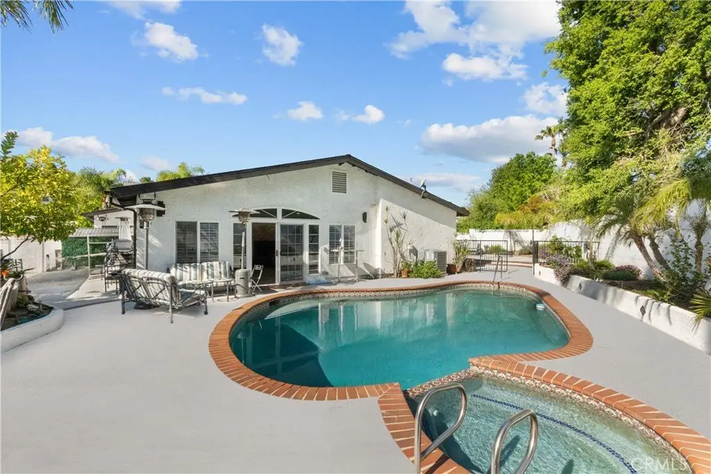 Spacious Pool Home on Ultra-Private Double Cul-de-Sac in Prime West of Topanga Chatsworth! Tucked away in one of Chatsworth’s most desirable pockets, this light and bright 3 bed, 2 bath pool home is a true gem offering the perfect blend of comfort, privacy, and everyday California living. Featuring an open, welcoming layout, the large living room flows effortlessly into a bright family room with walls of windows and sliding glass doors that open to the backyard — creating a great setup for family gatherings and entertaining guests. The kitchen includes a cozy breakfast nook and a bonus family room area that leads to a formal dining space, perfect for dinners, celebrations, or homework sessions that turn into dessert time. The spacious primary bedroom includes a large bath and walk-in closet, while the secondary bedrooms offer plenty of room for family, guests, or a home office. Step outside to enjoy a fun-filled backyard built for entertaining — complete with an oversized pool and spa, surrounded by lush greenery and beautiful hardscaping. Whether it’s pool parties, weekend BBQs, or movie nights under the stars, this backyard delivers it all. You’ll also see true owner’s pride throughout, with numerous updates including a new roof, new AC system, fully remodeled bathrooms, upgraded flooring, dual-pane windows, custom shutters, and so much more — the kind of improvements you can see and feel the moment you step inside. Additional highlights include solar panels for energy efficiency and a prime location close to shopping, restaurants, hiking trails, and freeway access. A true Chatsworth classic — updated, loved, and ready for its next chapter! Come see it for yourself!