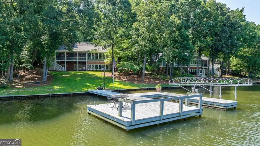 Discover timeless Southern elegance and luxury lakefront living in this custom-built 5-bedroom, 3.5-bathroom estate located in the prestigious Great Waters community at Reynolds Lake Oconee. Situated on a prime waterfront lot with a max dock and boat lift, this home offers stunning views that only Lake Oconee can provide. From the moment you arrive, a circular driveway and mature landscaping create a warm, private, and welcoming first impression. Step inside to find heart pine floors, tongue-and-groove ceilings, and solid construction details that give this home both character and comfort. The main floor features a spacious master suite with his-and-hers counters, jetted tub, separate shower and adjacent laundry for ultimate convenience. The lakefront breakfast room, cozy den with masonry fireplace and gas logs, and screened porch overlooking Lake Oconee set the tone for peaceful mornings and unforgettable sunsets. Also on the main level, two well-appointed bedrooms - one with a lakeside porch, share a Jack & Jill bath, ideal for guests or family. Downstairs, the finished walk-out basement offers even more living space with a kitchenette/wet bar, game area, two bedrooms, a boat garage/workshop, and a large unfinished utility room for storage or future expansion. A second masonry fireplace with gas logs adds charm and warmth to the lower level. Ready for your personal touches, this one will be a gem in your purse! Whether you're enjoying a quiet evening by the fire, entertaining lakeside, or heading out on the water from your private dock, this exceptional property offers a rare opportunity to own a true Lake Oconee legacy home. Owner is making a golf membership available. Call or text Anna O'Neal - Ansley Real Estate Christie's International. 706-988-5698