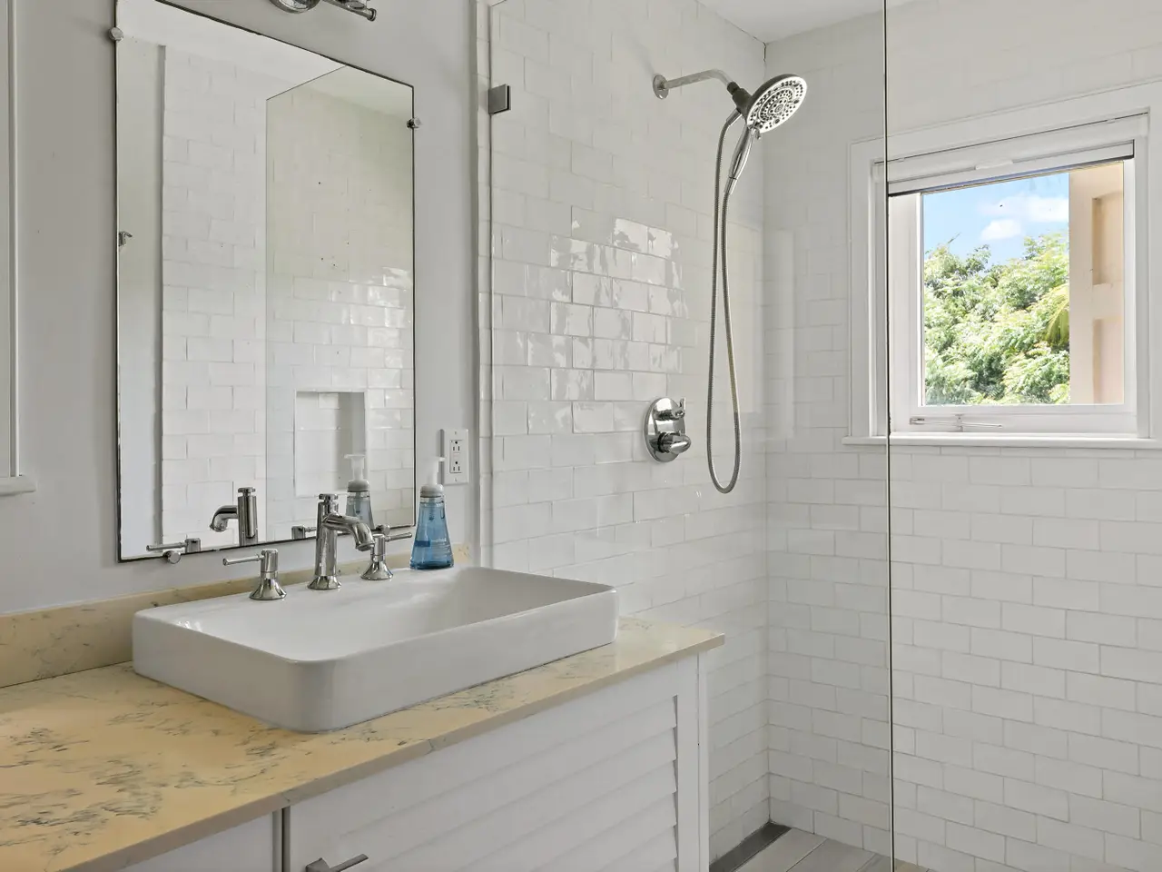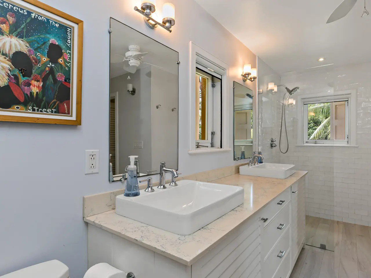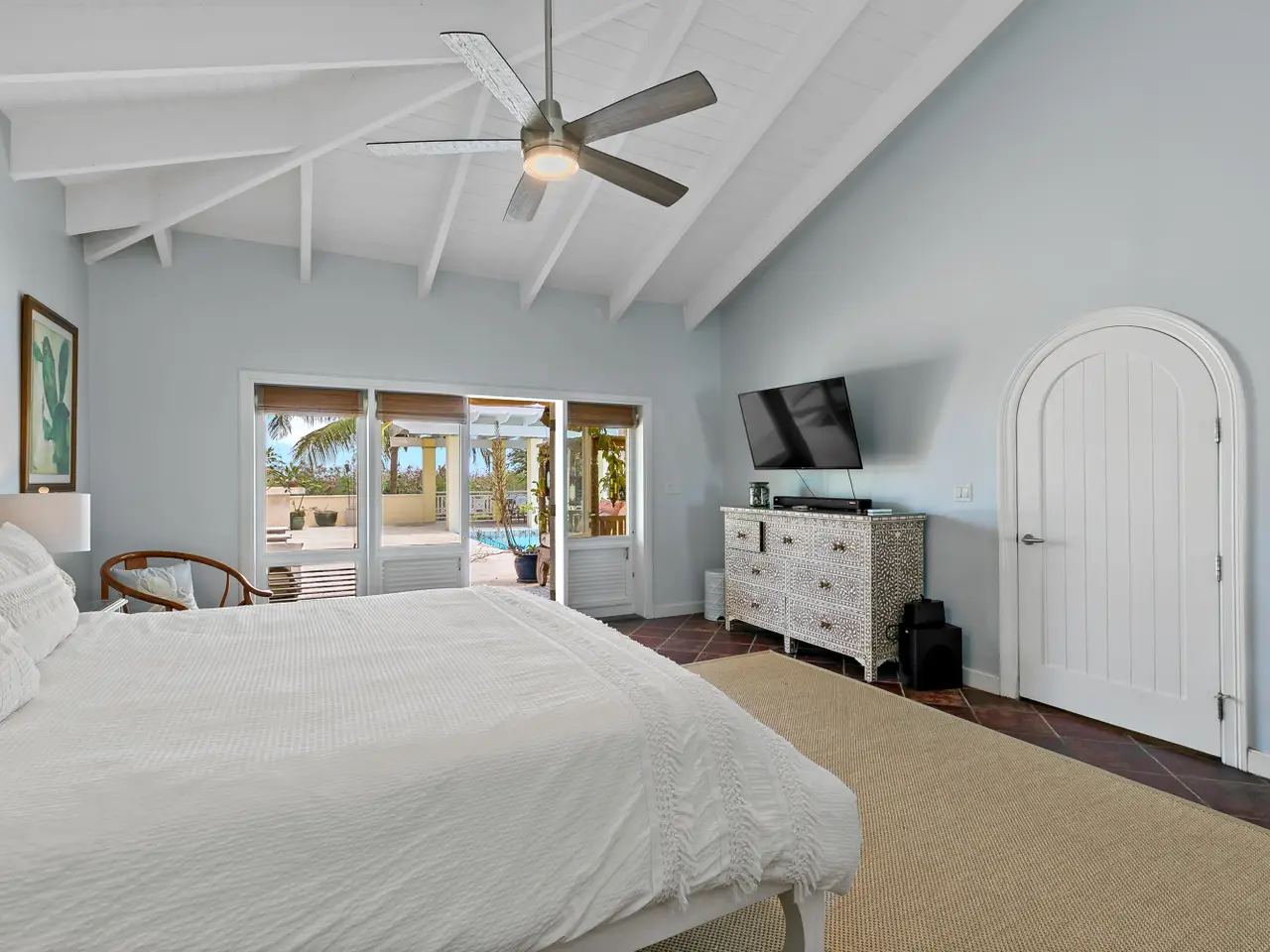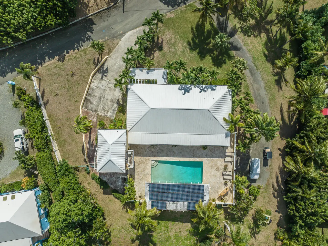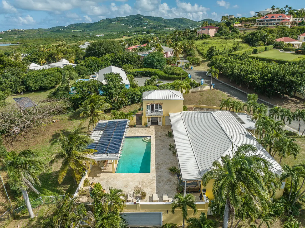 Escape to your own private island oasis located in the gated beach community Shoys! This upscale 4-bedroom main house paired with a guest suite, offers exceptional living spaces surrounded by tropical landscaping. With lots of light, high ceilings and a chef's kitchen, the main living area provides a comfortable and luxurious space to entertain or relax. The covered poolside areas features inviting spaces for lounging and dining al fresco in a beautiful setting. Below the house you'll find a two-car garage. The house is located just 5 minutes away from The Buccaneer hotel with tennis and golf club, the historical Christiansted with dining and shopping and Green Cay Marina. This property combines the charm of a tranquil haven with modern features including solar and a back up generator. As you enter the home you'll be welcomed by an inviting open space and the view of the incredible pool area. The high cypress ceilings create the perception of open space and with the attention to detail and high-end finishes, this elegant home combines modern amenities with Caribbean charm, creating your own private island oasis.Climate control is achieved through six air conditioning units throughout the home, ensuring optimal comfort all year round.The comfort extends to the chef's kitchen, a culinary haven designed for both functionality and style. The kitchen boasts stainless steel appliances that not only provide a sleek and modern aesthetic but also deliver top-tier performance for cooking enthusiasts. The large kitchen island offers ample counter space for meal preparation and entertaining.The thoughtful design of the kitchen extends to the inclusion of a wine fridge and an under the counter microwave to minimize cluttered countertops. With lots of storage and open space, the chef's kitchen at 92 Shoy is a versatile and well-appointed space that meets the needs of both culinary enthusiasts and those who simply enjoy the art of dining and entertaining.One of the distinguishing features of the interior is the integration of glass and louvers in the doors leading to the pool area. This design choice offers a seamless connection between the indoor and outdoor living spaces. The glass windows flood the main room with natural light, creating a bright and airy ambiance that enhances the overall sense of openness. The ability to open the glass doors allows for a seamless transition between the interior and the pool area.The dual functionality of the glass and louvers is a testament to the thoughtful design approach. On one hand, residents can close the doors to enjoy the comfort of air conditioning, creating a cool retreat on warm island days. On the other hand, the louvers can be opened to invite in the tropical breezes and sounds, fostering a connection with the lush surroundings. This harmonious blend of indoor and outdoor elements ensures that residents can savor the best of both worlds.The luxurious primary bedroom suite is an expansive oasis designed for utmost comfort and indulgence. The suite is flooded with natural light from the glass doors facing the pool area, creating a bright and inviting atmosphere that frames the views of the lush outdoor space. His and her walk-in closets, thoughtfully designed for modern living, offer practical yet lavish storage solutions. The stunning en-suite bathroom offers a bright and inviting space with a spa like feel. The beautiful swaying palms just outside the windows add a touch of tropical living to the space. Every detail is curated to elevate the bathing experience and with easy access to the pool, residents can seamlessly transition from the tranquillity of their private haven to the invigorating pool.Opposite the primary suite and off the living room you will find two spacious guest bedrooms with walk-in closets. One of the bedrooms faces the outdoor deck allowing for easy access to the pool. Between the rooms is an updated bathroom with glass shower to create a modern and open space.The third guest bedroom is any visitor's dream with a luxurious and spacious bathroom and double doors that open towards the pool. The bathroom can also be accessed from an exterior door so that guests can use the bathroom here instead of walking through the house, one of the many thoughtful features in this house.An exterior staircase leads you upstairs to a suite with vaulted ceilings and en-suite bathroom. Open the doors to let in the tropical breezes and take in the stunning views! This could be a great space for visitors or maybe a home office. The previous owner used it for an art studio.The pool area is the centerpiece of this elegant home and with it size and layout it has the feel of your own private resort with ample space for multiple loungers, covered dining area and a bar. Palms frame the house and line the driveway and the yard is not only an outdoor retreat, but a private haven. Part of the yard is enclosed by a thoughtfully designed fencea perfect feature for those with canine companions.The two car garage is located below the deck and features a separate driveway. The automatic garage door provides easy access to the space. The extra driveway also provides lots of parking for visiting guests.Shoys, renowned for its pristine beach and beautifully landscaped properties offers both a place to go for a run or walk as well as a place to enjoy the best of island living, the turquoise waters and beautiful beaches, all right outside your door!