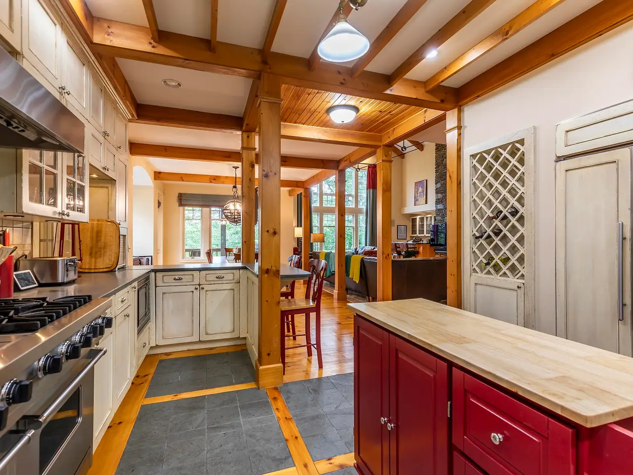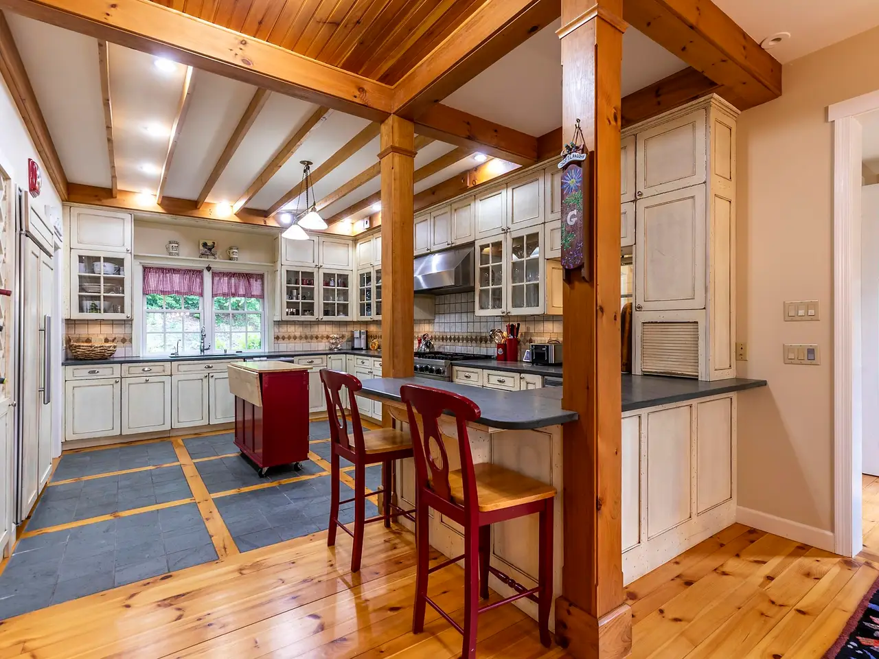 Welcome to your mountain sanctuary in the heart of Solitude Village - Okemo's premier slopeside community. This luxurious 5-bedroom, 3-bathroom retreat offers true ski-on/ski-off access, allowing you to hit the Rising Star Trail or Moonshadow right from your doorstep. Step inside to a warm, elegant interior featuring radiant-heated tile and rich hardwood floors throughout. The expansive great room, with its stunning stone fireplace and vaulted ceilings, creates the perfect apres-ski gathering space. Just off the great room, a custom beverage bar with seating for three invites you to unwind with a cocktail while watching the snow fall. The chef's kitchen is appointed with high-end appliances, granite countertops, and custom cabinetry - ideal for entertaining. The dining room comfortably seats twelve, making it perfect for holidays and celebrations. After a day on the slopes, drop your gear in the well-designed mudroom with built-in cubbies before heading down to the walkout lower level - complete with a pool table, exercise space, sauna, and hot tub for ultimate relaxation. A large game room with tons of comfortable seating for movie watching. The spacious primary suite includes a private balcony, perfect for morning coffee with mountain views. Additional features include a dramatic carport entry, two-car garage, ample storage, and timeless craftsmanship throughout. Whether you're seeking a serene winter escape or an active four-season retreat, this home delivers. ROFR