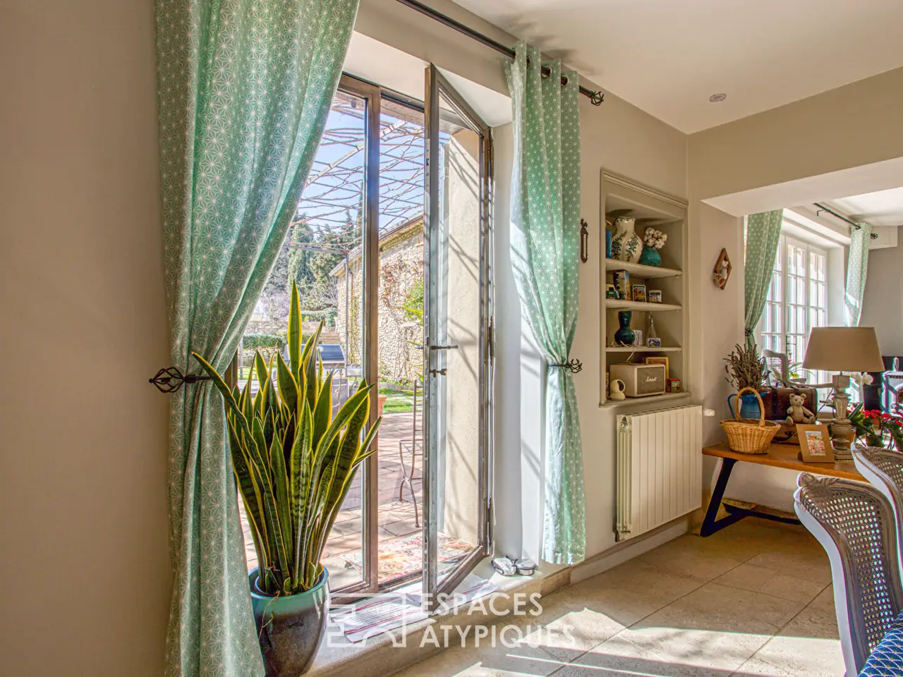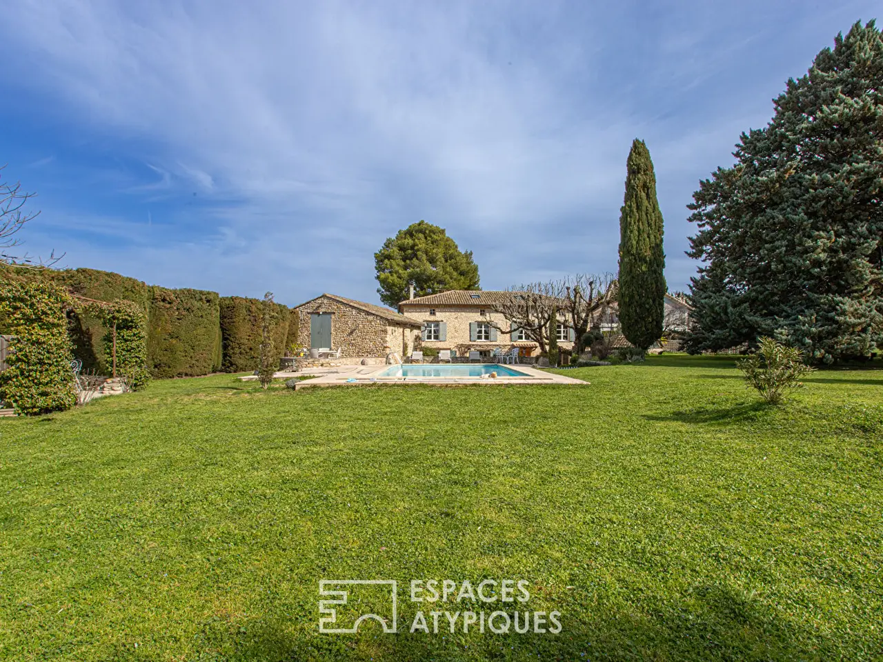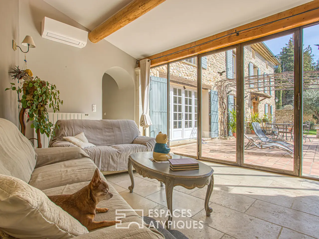 In a preserved green setting, in the heart of Provence, discover this sumptuous stone residence, built in 1750 and renovated with absolute refinement in 2018. Located on a landscaped plot of 4,775 sqm facing due south, this property of 370 sqm of living space harmoniously combines historical character and contemporary comfort. From the entrance, the elegance of the place is revealed through a vast hall decorated with a majestic staircase, leading to superb living spaces. The main living room, with a fireplace, invites conviviality, while the equipped kitchen with dining area and the dining room offer a warm and functional setting. An air-conditioned TV lounge and a perfectly equipped laundry room/pantry complete this level. A real asset of this residence lies in its magnificent air-conditioned veranda, bathed in light thanks to its large bay windows. A true extension of the living spaces, it offers a breathtaking view of the landscaped garden and the sparkling swimming pool. Designed to be used all year round, it becomes in turn a sunny relaxation area or a warm cocoon in winter, ideal for enjoying the enchanting setting in all seasons. On the first floor, two bedrooms, each with its own bathroom, offer optimal comfort and perfect privacy. On the second floor, two other bedrooms, accompanied by two bathrooms, guarantee space and well-being for all. Perfectly suited to receiving guests or for rental use, the property also includes two independent apartments of 26 sqm and 45 sqm, each with a kitchen, a dining room, a bedroom and a bathroom. Outside, the garden offers an enchanting setting with its century-old trees, true witnesses of time, and its various landscaped areas conducive to relaxation. An 11m x 5m swimming pool completes this exceptional environment, while an automatic watering system powered by a natural spring ensures easy maintenance. A 50sqm workshop completes the ensemble, ideal for DIY or art enthusiasts. In terms of comfort and security, the property benefits from surveillance cameras, a water softener and a wide choice of heating solutions, including air conditioning, an insert fireplace and a stove. Located in a sought-after residential area of Sablet, this prestigious residence seduces with its timeless charm and excellent renovation. Offering a perfect blend of history and modernity, it represents a rare opportunity for lovers of characterful homes. ENERGY CLASS: D / CLIMATE CLASS: CEstimated average amount of annual energy expenditure for standard use, established from 2021 energy prices between 2,960 and 4,090 euros per year. Information on the risks to which this property is exposed is available on the Georisques website: www.georisques.gouv.fr REF. 891EAA Additional information * 15 rooms * 6 bedrooms * 3 bathrooms * 3 shower rooms * Floor : 2 * Outdoor space : 4775 SQM * Property tax : 3 028 € Energy Performance Certificate Primary energy consumption d : 217 kWh/m2.an High performance housing