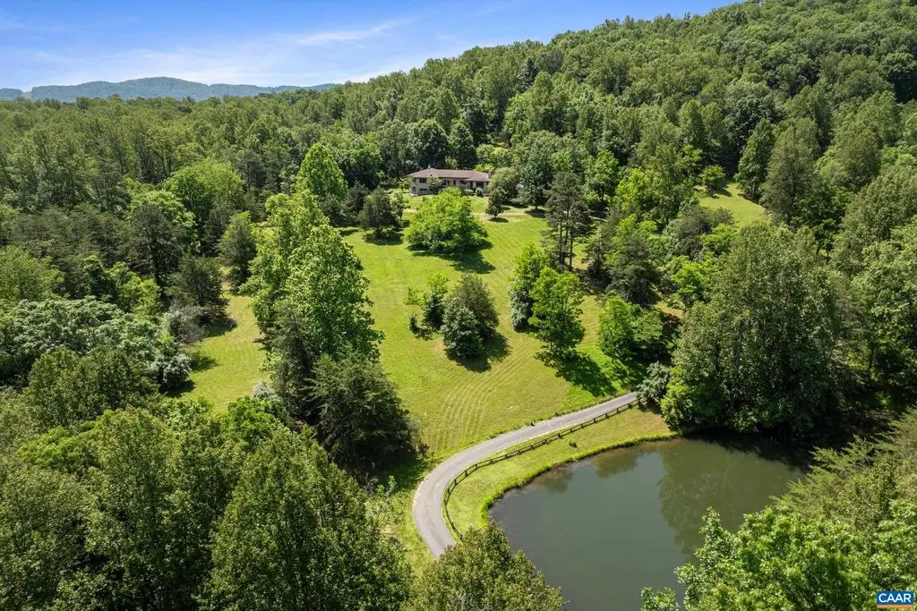 Set against the backdrop of Yellow Mountain, this tucked away 24-acre sanctuary offers the ultimate blend of elegance and convenience. Just minutes from Crozet and Charlottesville, this custom built residence was designed by architect Dawn Rowe to frame SWEEPING YEAR-ROUND MOUNTAIN VIEWS and is crafted with gorgeous cherry woodwork, built-ins and cabinetry coupled with refined architectural details and an outstanding floor plan. Blue Ridge views from every Western facing window! MAIN LEVEL LIVING with versatile spaces including dedicated home office and terrace-level guest quarters with private entrance, rec room, 2 bedrooms and baths, kitchenette plus fabulous storage. Ideally set up for 2+ generations. Quiet, efficient geo-thermal HVAC system. Expansive invisible fence. Approximately 1/3 of the acreage is open. Glorious patio with soothing water feature, elevated fire pit area and stream-fed pond create an idyllic setting for entertaining, recharging and making memories. Whether hosting weekend gatherings or enjoying the region's wineries, hiking trails or sporting events, this estate embodies the VERY BEST of Western Albemarle. See documents for full list of features and improvements.