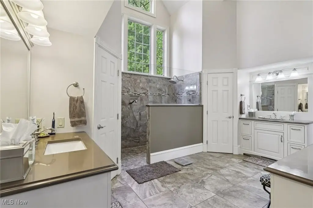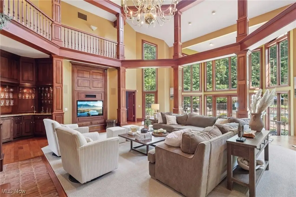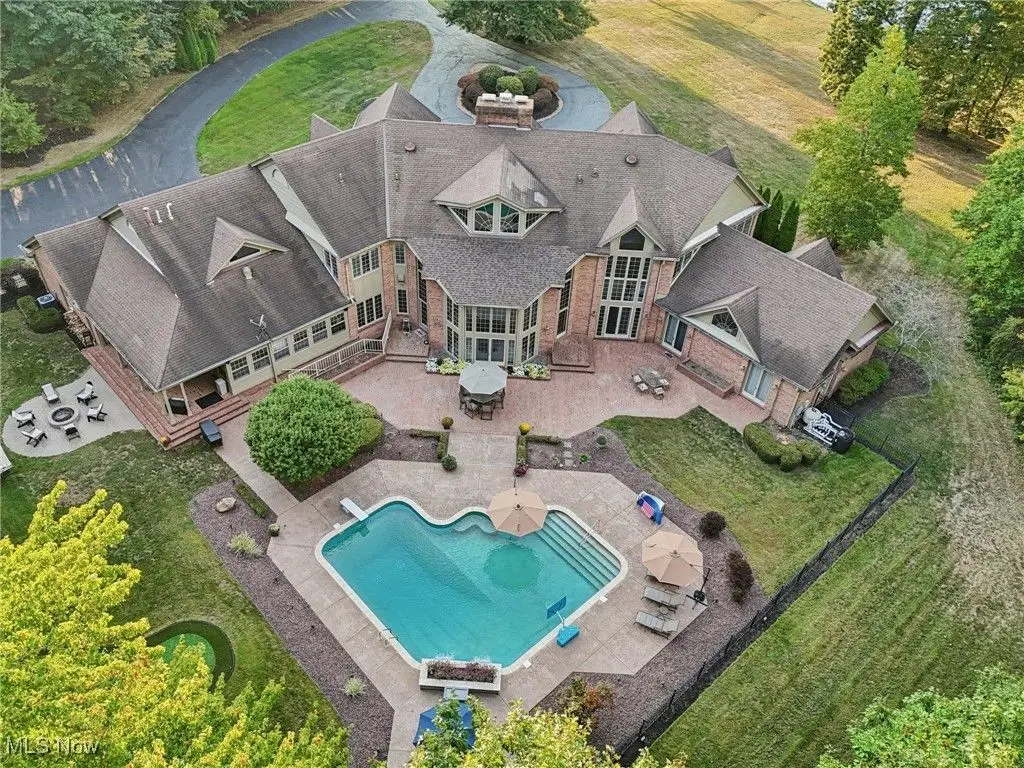Privately nestled on 48 wooded acres, this luxury estate offers panoramic views of a 3.5-acre lake & provides peaceful seclusion while being just minutes away from local amenities. Upon entering you are welcomed by an elegant marble entry which opens to a split staircase dividing the great room and the grand formal dining room. The three-story great room offers soaring ceilings, exposed beams and walls of windows with lake views. An impressive three-story family room with an oversized fireplace is open to the magnificent gourmet kitchen with granite counters, double ovens, island, breakfast bar & a spacious walk-in pantry. Finishing off the first floor is a laundry room, an elegant private library - perfect space for a quiet home office, a spacious game room and a 3-season enclosed brick patio. The well-appointed first-floor primary suite offers a sitting room, dual walk-in closets & a fully renovated spa bath with dual vanities, an oversized shower, heated floors & hidden stackable laundry for added convenience. Step up to the loft area from the primary suite which is being used as a workout studio with fabulous lake views. The 2nd floor provides four additional bedrooms, each featuring en-suite baths. The walk-out basement is an entertainer's dream showcasing a spacious recreation room, kitchenette, living area with a cozy gas fireplace & a charming custom-built Irish bar. There is also guest bedroom with full bath. Step outside into the backyard oasis and you will find a stunning retreat created for relaxation with a resort-style inground pool with a cascading waterfall. The outdoor bar & firepit area is perfect for hosting weekend gatherings and game nights with an outdoor flat screen. There is also a rare find for golf lovers: a custom designed putting green with full T-box setup, providing a private space to refine your short game. This estate truly offers an unparalleled combination of elegance, functionality and tranquility. Call today for your private tour!