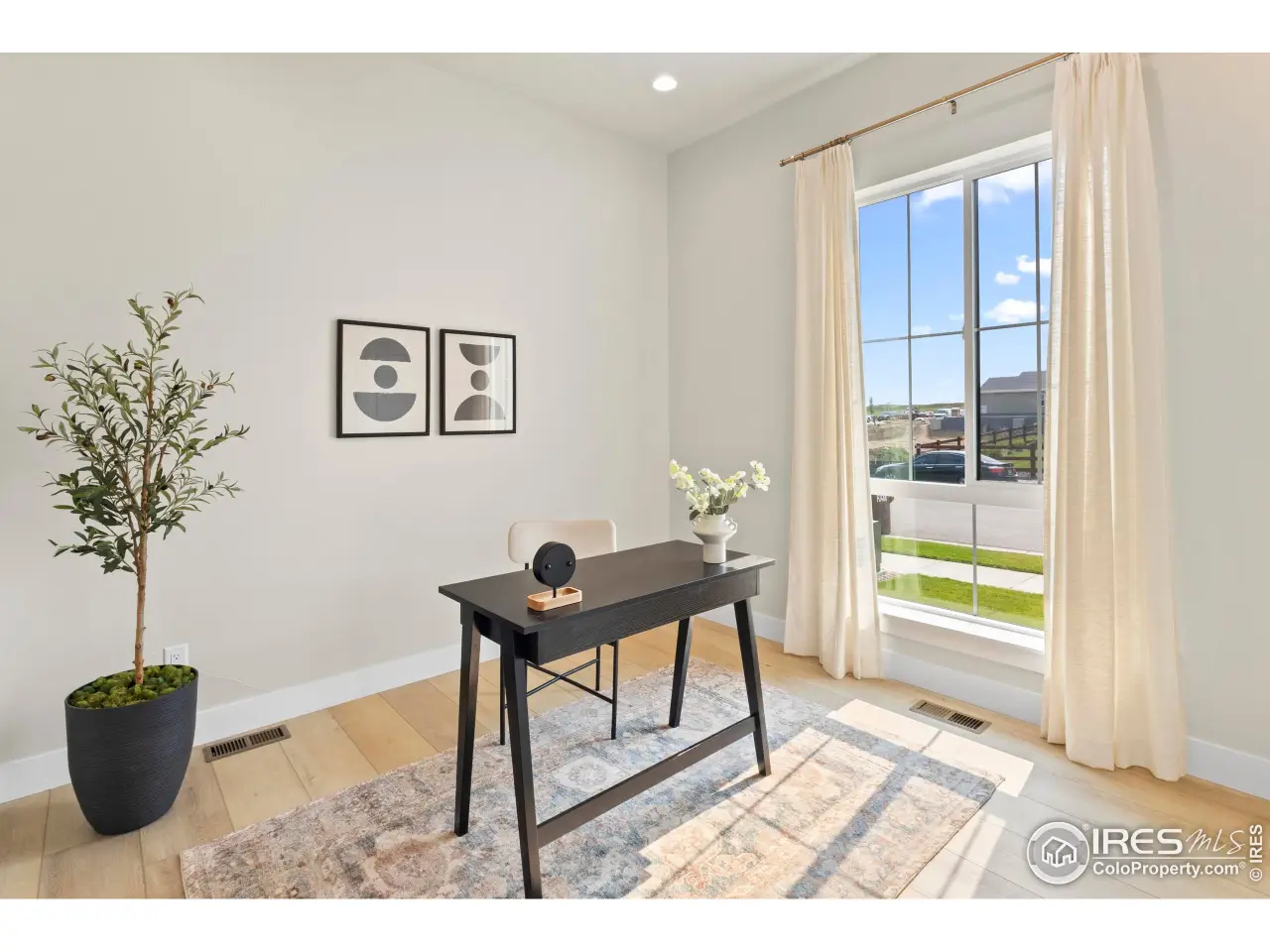 Welcome to resort-style living, offering an exceptional blend of luxury, convenience, and world-class amenities in Raindance. Enjoy a truly one-of-a-kind move-in ready home boasting nearly $300k upgrades and updates seen only in model homes. This Trumark custom-builthome is the most popular plan they build offering 5 bedrooms, 4 bathrooms plus an office with a 4-car almost 1,000 sq.ft. garage, and daylight basement for future expansion. The open floor plan great room will capture you with 20-foot ceilings adorned with windows flooding the home with natural light, and a gas fireplace to center the room. The gorgeous gourmet kitchen boasts an enormous island, beautiful, upgraded cabinetry, under cabinet lighting, full quartz countertops and full quartz backsplash, high-end Beko appliances, and a huge walk-in pantry. The primary bedroom offers breathtaking views of the Rocky Mountains including a luxurious bathroom with an oversized shower, soaking tub, and large walk-in closet. The entire home has luxury vinyl plank flooring, hand trowel textured walls, upgraded tile and quartz countertops in all bathrooms, upgraded brass hardware in kitchen and all bathrooms including faucets, along with upgraded designer lighting throughout. The entire home is wired with surround sound including the four-car garage that is finished and painted. Neighborhood amenities of walking trails, orchards, non-potable water and trash are included in your metro district fees. Better than new with full backyard landscaping and fenced yard with a covered back deck perfect for enjoying all that Colorado has to offer. This home offers an unparalleled combination of luxury, comfort, and designer finishes!