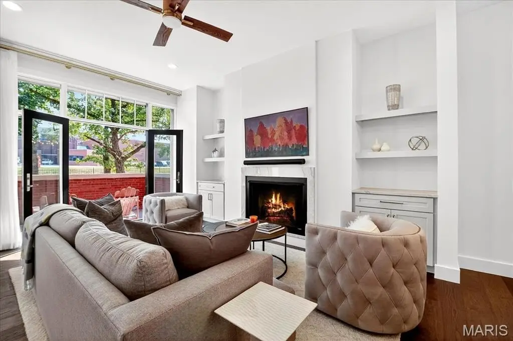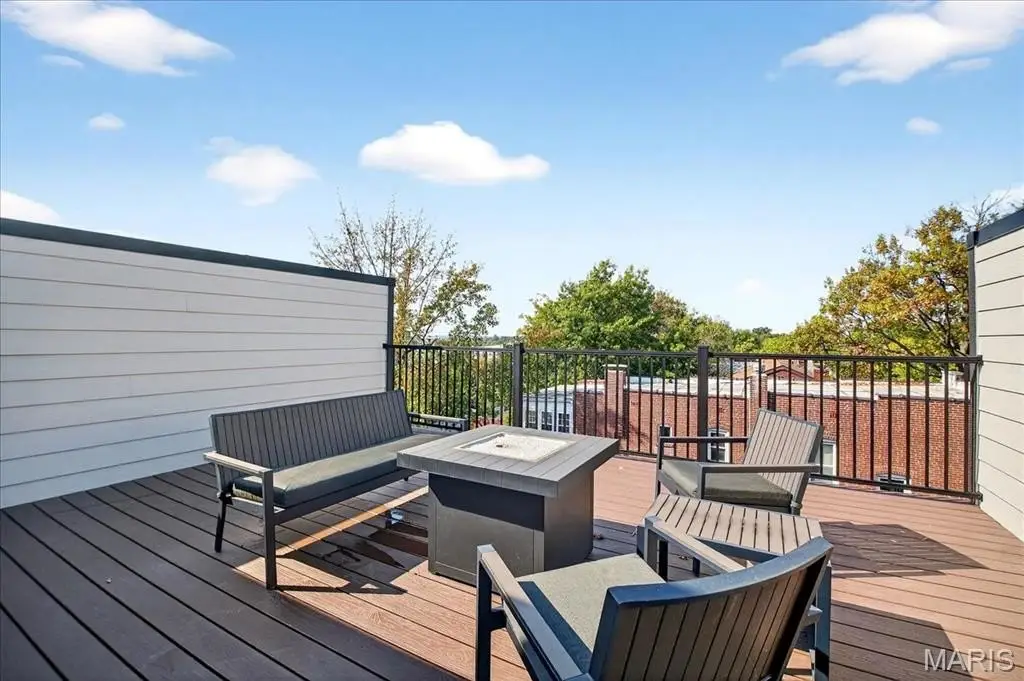 Meticulous and private, this 2 year old brick townhome features upgrades throughout. Perfectly situated in Clayton, St Rita provides easy access to highways, Forest Park and quaint walkable neighborhoods including DeMun. 10 ft ceilings, wide plank wood flooring set the tone for this open concept townhome. A beautiful stone gas fireplace creates a cozy retreat while the high-end custom kitchen with huge center island, gorgeous quartzite, stainless appliances with gas range with griddle and great room for entertaining. A guest powder completes the first level. The luxury primary bedrm is flooded with light and offers an office/sitting nook, spa bath with glass shower and a large walk-in custom closet. Another bedrm suite and laundry provide efficiency and convenience. The third level open loft sleeping area/fanukt rn with closet, large bath and rooftop private deck with great views. The lower level is partially finished with workout area, sauna, office nook and private 2 car garage with EV charger. The brick walled front patio also allows another entertaining area as it opens up to the gorgeous living room. The quality of construction and upgrades are felt throughout every inch. Furnishings are negotiable.