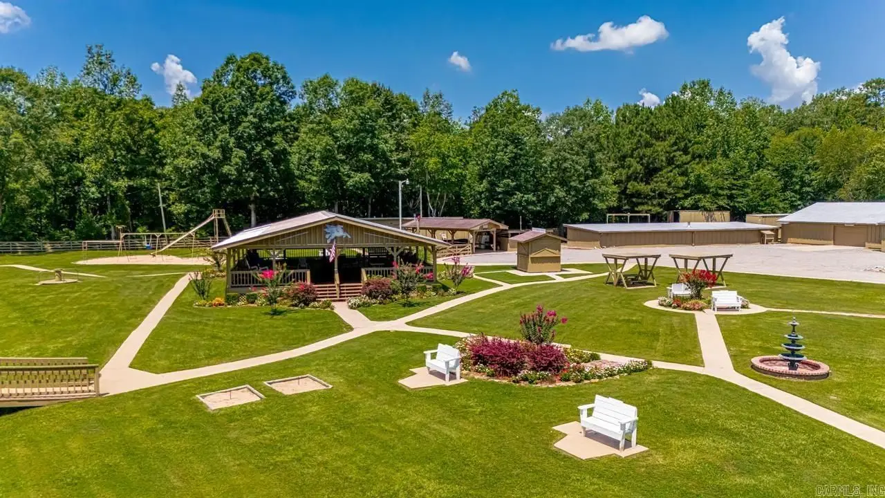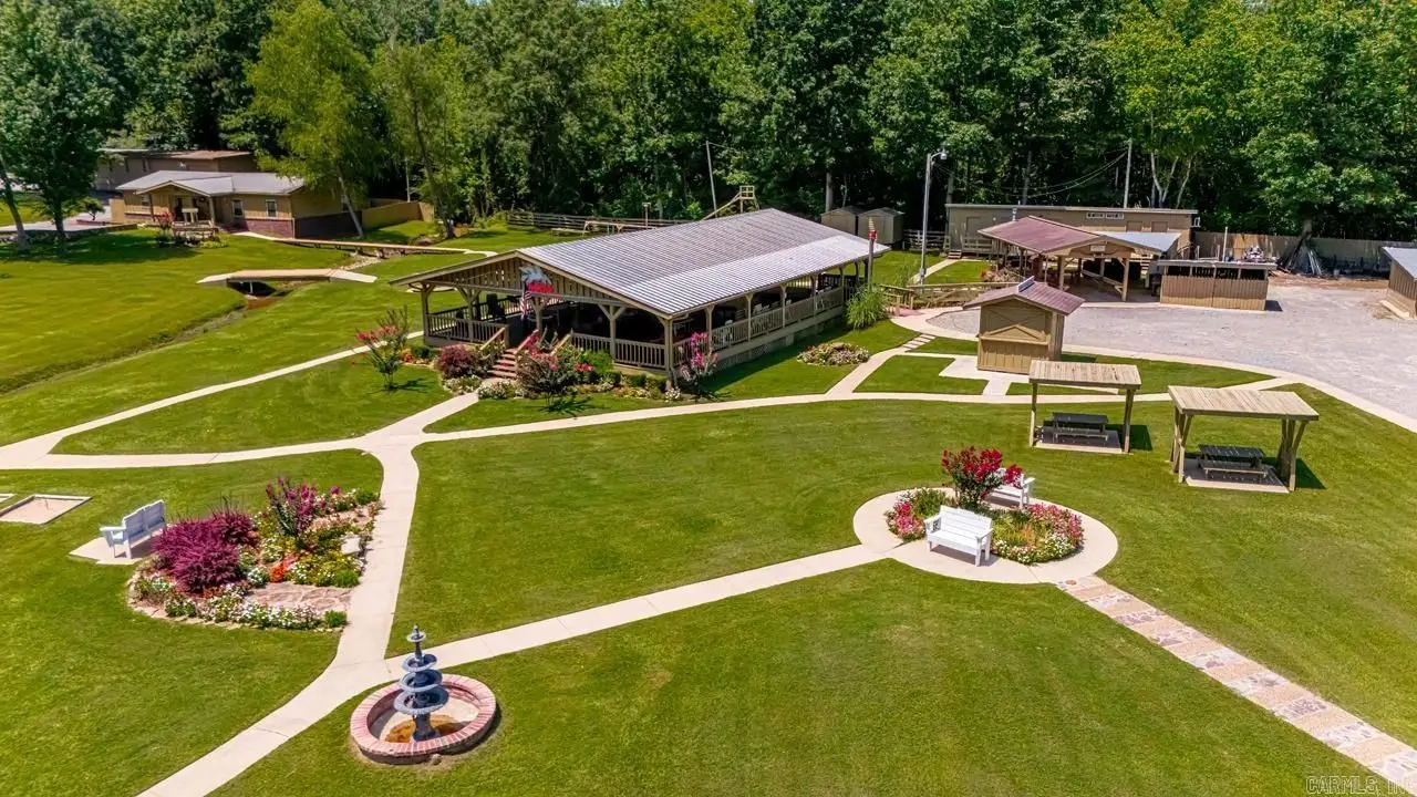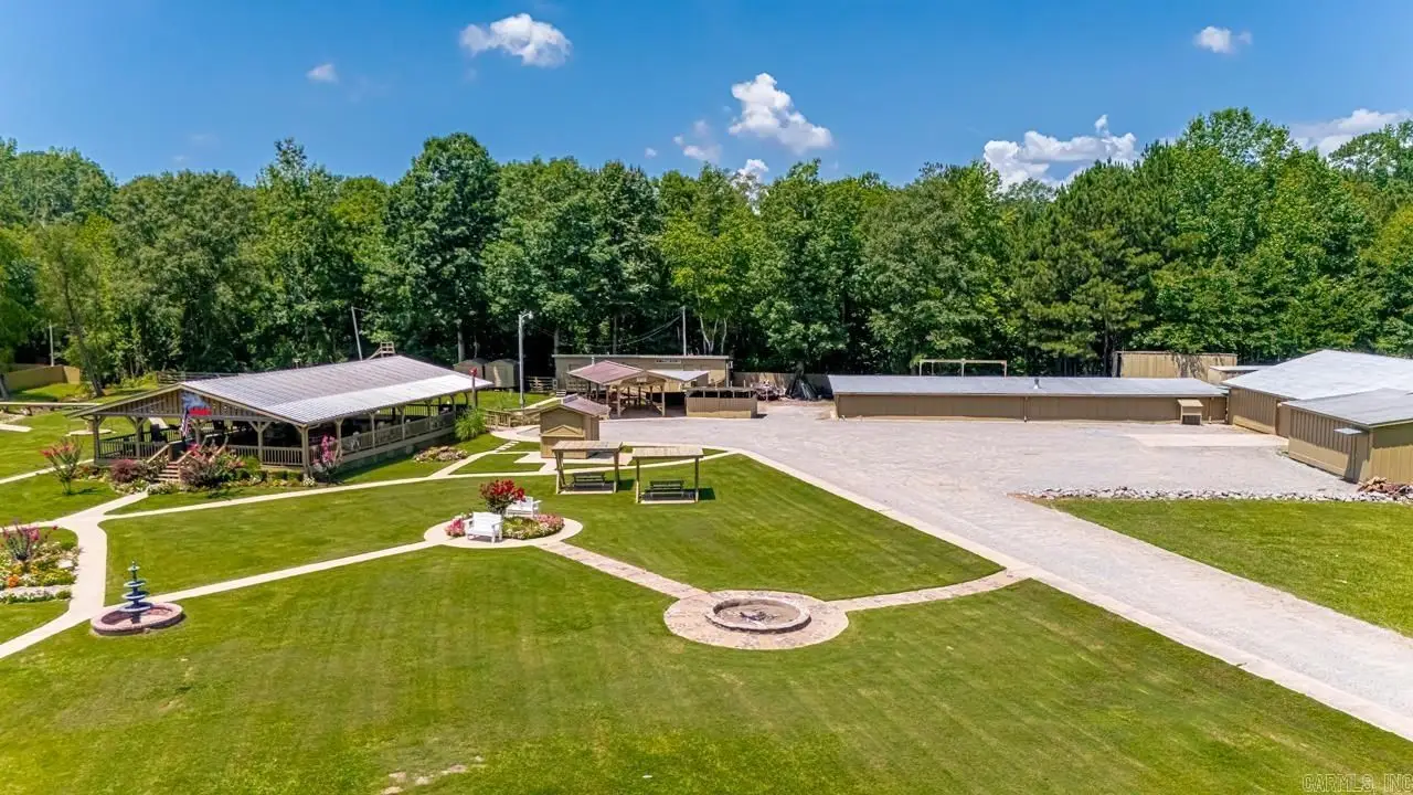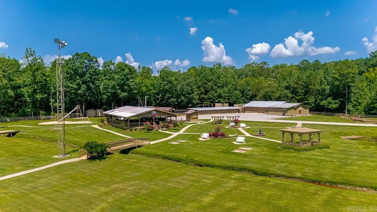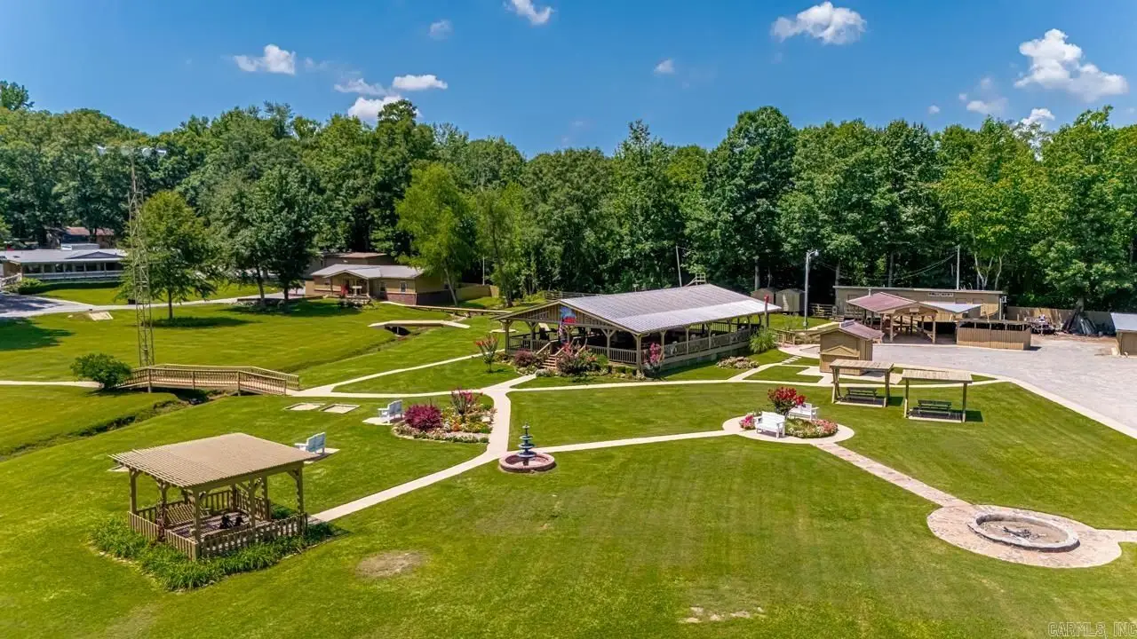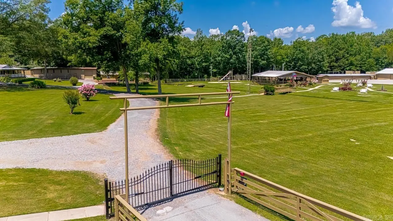 This is one incredible property and a once in a lifetime chance to own your own family complex. in-laws, guests, rental, family/business retreat, you decide. Fully fenced 5.6 acres. 3 homes, Mini living suite. Office, work shop/garage, huge Open Air Pavilion (2 air conditioners, 26 ceiling fans, raised stand for performing, electrical outlets), Serving Pavilion, and a 3rd pavilion for all your entertaining needs. More buildings, Large enclosed garage storage areas, play yard, storage buildings, in-ground storm shelter, ponds and more. Professionally landscaped. A 100 watt generator in fenced area behind the home which is connected to all the residences. The list goes on and on. Ask for a complete list. You will not find another property like this one.