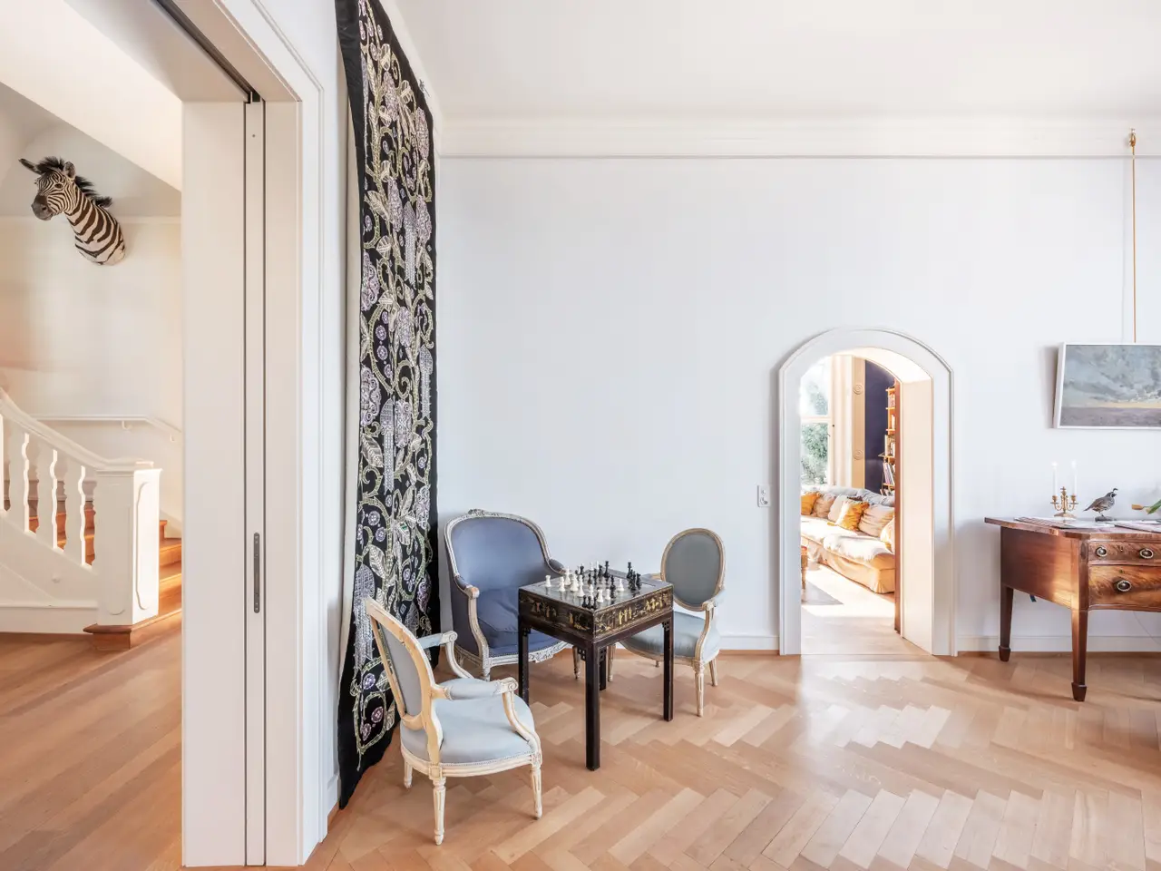Historic elegance meets modern living - On the Zürichberg you live a reasonable distance from the hustle and bustle of the valley. A fresh breeze blows in from the nearby forest, and after a clear night you can still feel the morning dew. At the same time, you are never far from the hustle and bustle of the city centre. In one of the best residential areas, the »Golden Triangle«, the elegant »Villa Sonnenberg« is enthroned on a hillside, just a few steps away from the woods and vineyards. It is a classic Belle Epoque villa with extravagant furnishings, many original details and a park-like garden that extends to the next intersecting street. The villa offers breathtaking views of the city on the River Limmat, Lake Zurich and the Alpine peaks. The luxurious villa was built between 1911 and 1912 for a successful publisher to plans by star architects Otto Pfleghard and Max Häfeli. After an eventful history, the property was renovated in 2017-2019 in accordance with its listed status, without compromising on contemporary comfort. We would be delighted to show you this property in person. If you have any questions or would like to arrange a viewing, please do not hesitate to contact us.