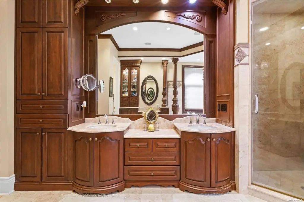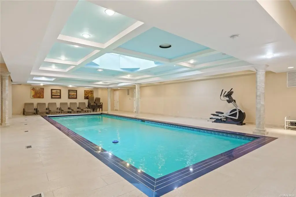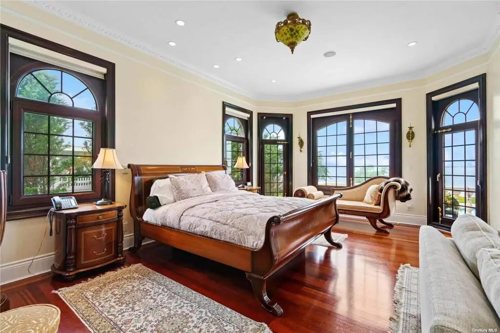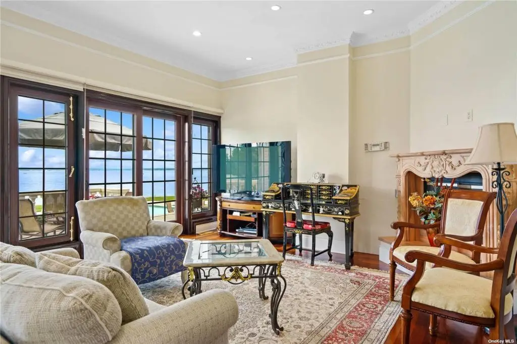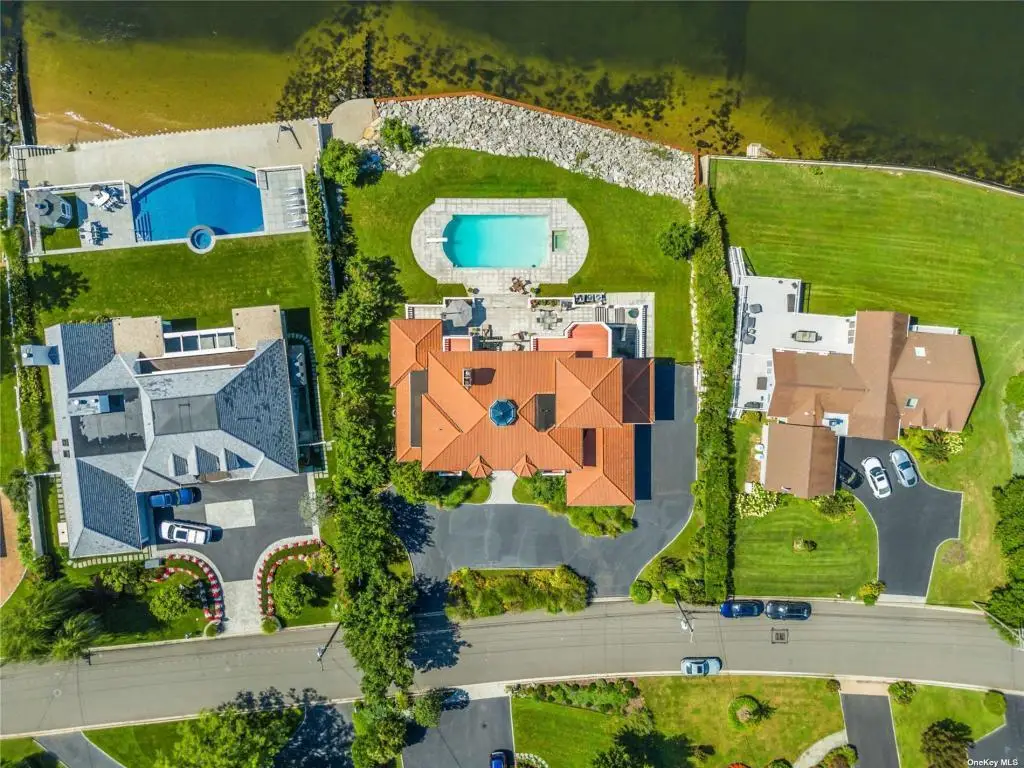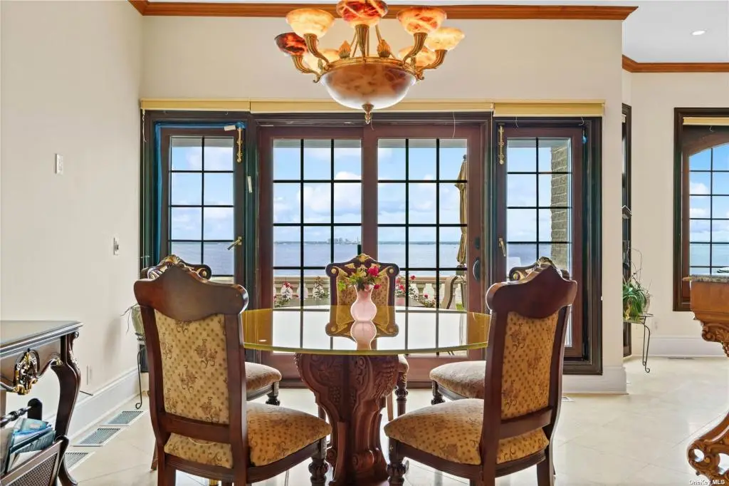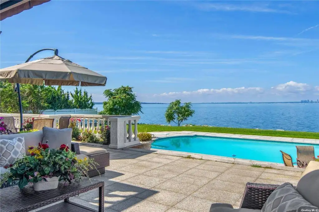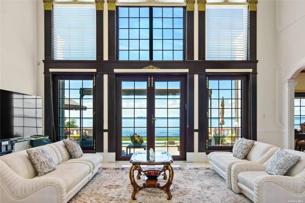 Embrace the allure of island living in this elegant, custom-built waterfront gem. This masterpiece of architecture encapsulates the privacy & serenity of waterfront living on the iconic Morgan Island. As you walk through the grand foyer with a 20 foot ceiling, a sense of wonder envelopes you as your greeted by the breathtaking water views and spectacular sunsets. Welcome your guests with a massive skylight that will direct natural light to a glass floor inlay, providing light to your heated indoor gunite pool on the lower level. The dehumidification system freshens the whole pool level while the sun shines from above. Impress with the waterfront balconies, custom millwork design coffered ceilings in the dining room and the den, and stunning floor-to-ceiling windows with 180 panoramic view of the Manhattan skyline. Every corner of this four-level home has an air of refined living, including a seamless transition between floors on your total home elevator. Your island retreat offers manicured landscaping with a luxurious heated gunite outdoor pool & spa. A 10 year old seawall & retaining wall with a life span of 100 years. Security is forefront with rear window & door shutters, alarm system, gas generator & steel construction. This exquisitely designed home spans over 6000 feet & features a sitting area, grand living room with wood fireplace leading to a sprawling waterfront balcony, a first floor primary bedroom suite with sitting area, spacious balcony overlooking the water, jacuzzi & steam shower, formal dining room, family room, large gourmet chef's kitchen with dining area, powder room, & guest bedroom with en-suite. All marble floors on the entire first floor and lower level provides you with the warmth of radiant heated floors. Second Floor features three bedrooms with two full bathrooms, four balconies & office with sitting area. Third Floor features a finished attic room. Basement includes a heated gunite indoor swimming pool, full bathroom with steam shower, family room, optional gym/flex room, spacious electrical storage room. You're invited to view this island retreat of luxury, privacy and tranquility where your story can unfold in your new home.
