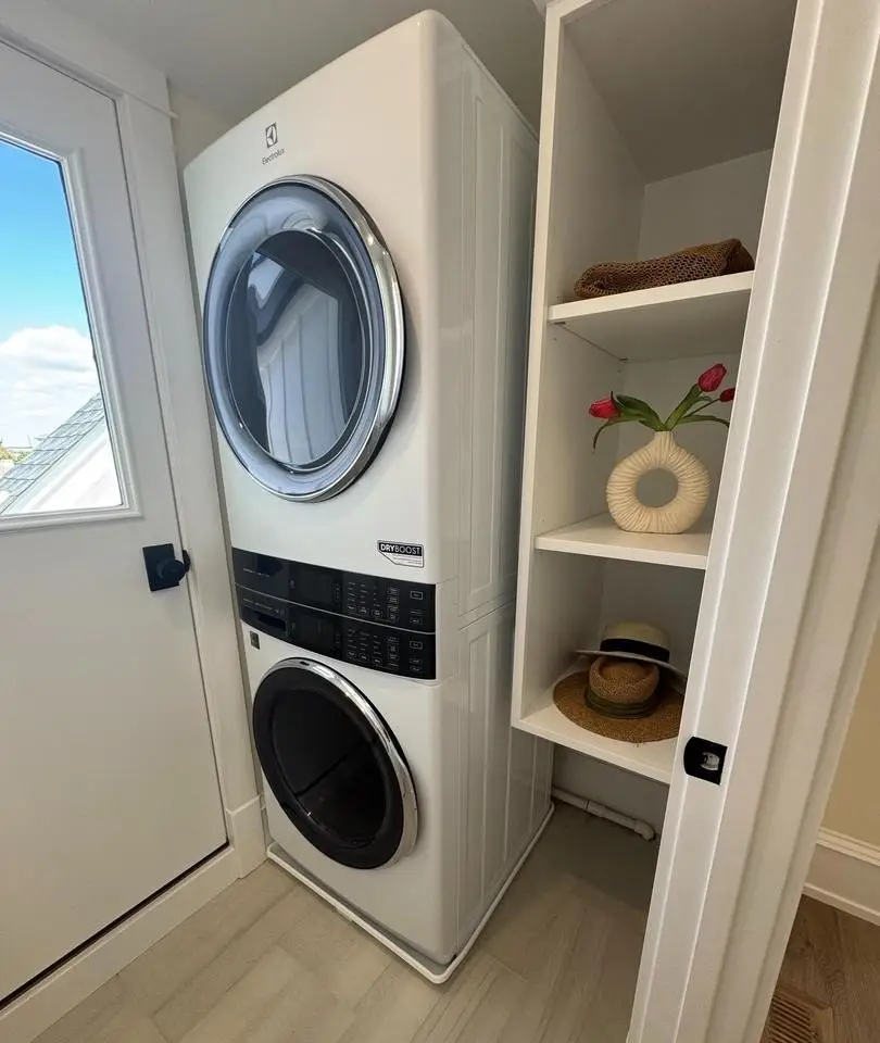 Two outdoor showers and backyard shed