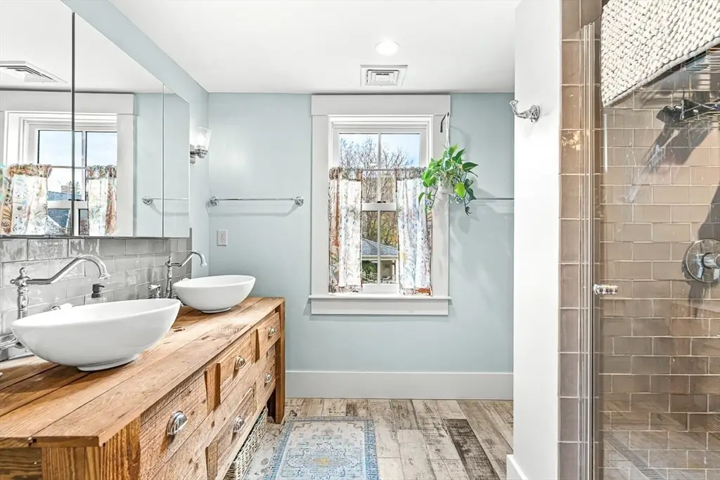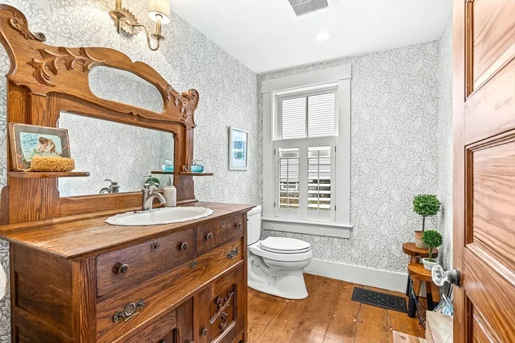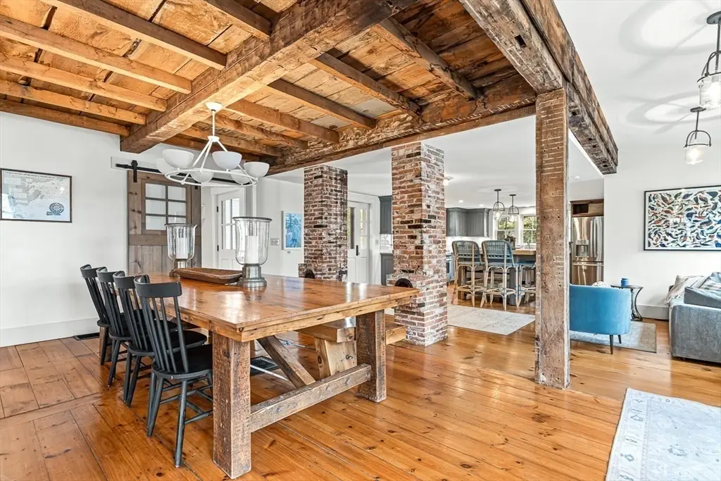 A remarkable fusion of history & modern luxury located in the heart of Downtown Andover. Enjoy the convenience of walking to local cafTs, shops, & restaurants. The open-concept design flows seamlessly, highlighted by exposed brick, rich wood beams, & impeccable craftsmanship throughout. The kitchen boasts a walk-in pantry, an impressive center island, high-end appliances, & spacious mudroom designed for everyday functionality. Gorgeous wide-pine floors flow throughout, extending from open dining area into the inviting living rm, which includes a versatile adjoining office or playroom. Second level bedrms include the ensuite, convenient laundry rm, additional full bath & ample closet space. Finished LL w full bath great for guest suite, family rm, home gym, etc. Two covered porches, a beautifully landscaped patio, and a charming garden area create an inviting outdoor retreat. Ideally situated in the highly sought-after Bancroft School District.
