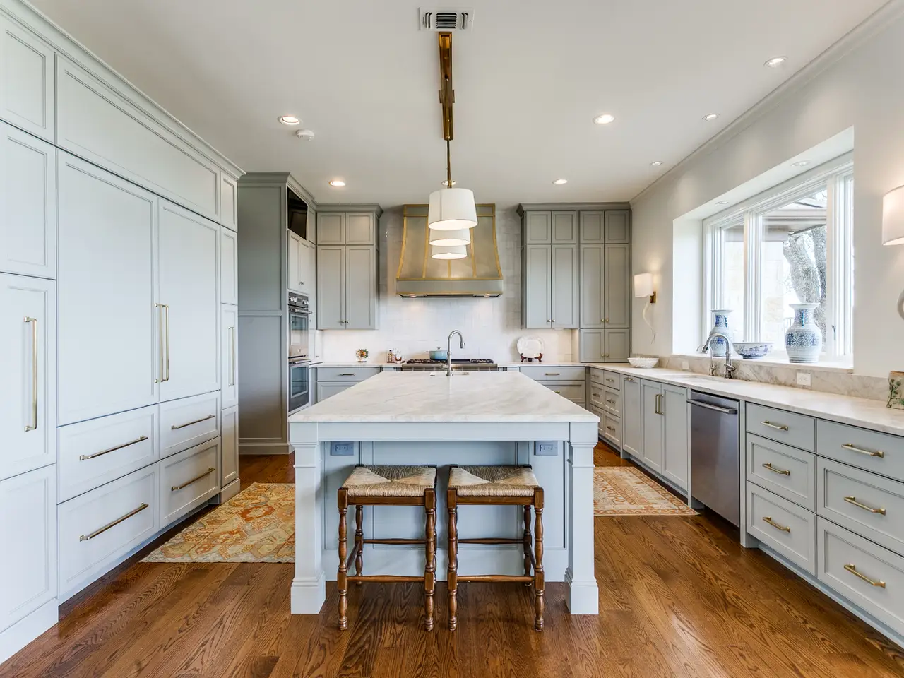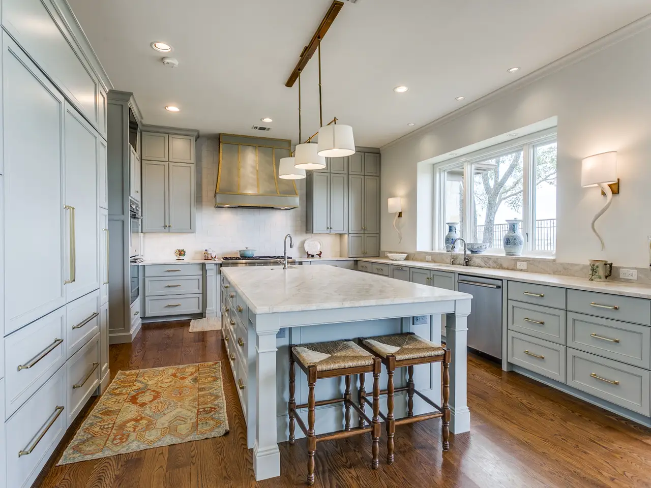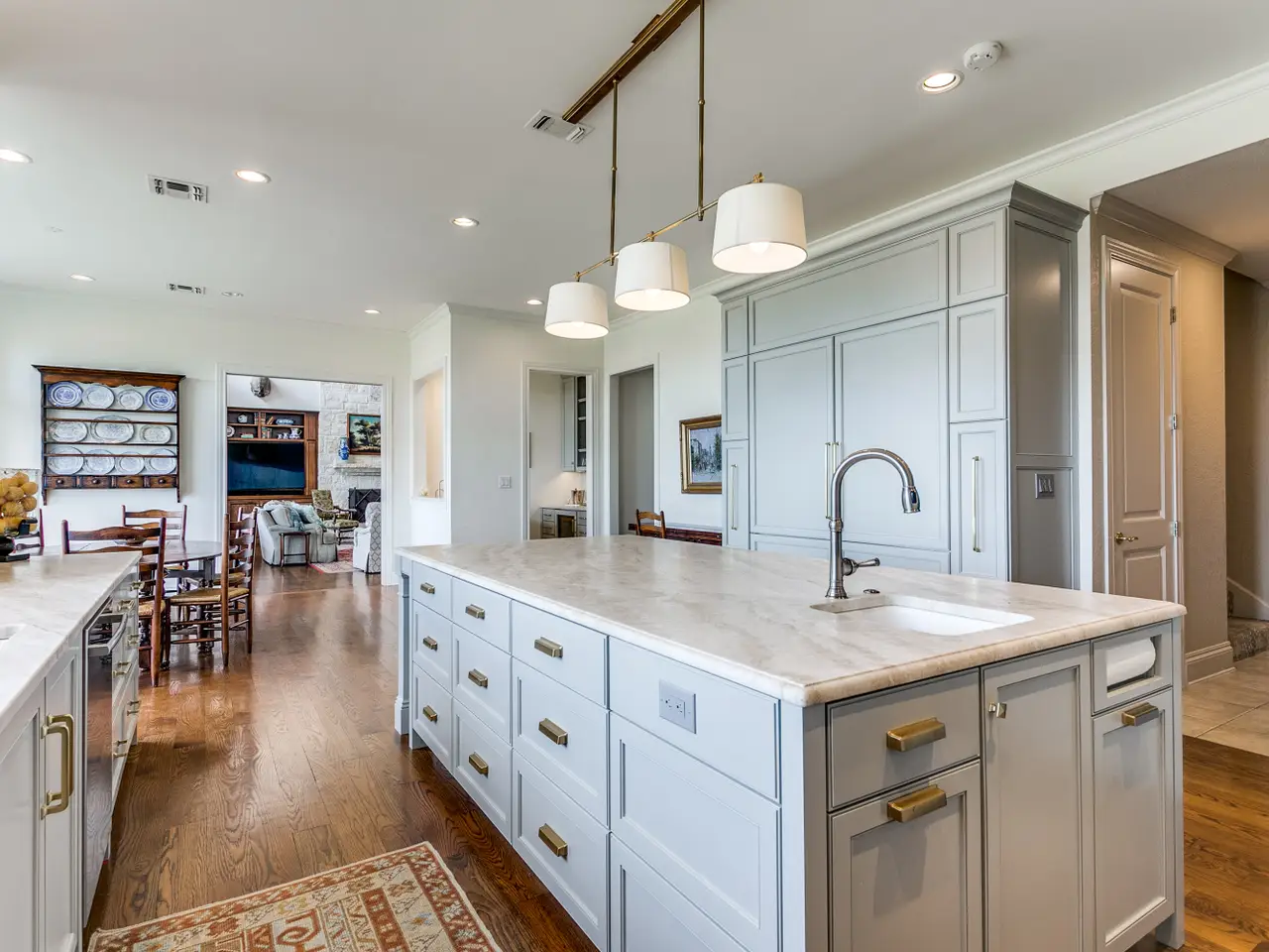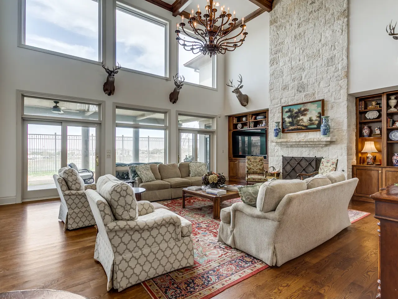 Perched atop a stunning cliff, this exquisite estate in Lincoln Heights offers breathtaking views of San Antonio and the Quarry Golf Course. Step into the impressive 45-foot-long entrance hall, which seamlessly connects the main areas of the home. The grand two-story living room sets the tone for elegance, complemented by a formal dining room perfect for entertaining. A versatile study or fifth bedroom includes a walk-in closet and full bath. The expansive chef's kitchen boasts refrigerator drawers alongside a large built-in refrigerator, double ovens, a spacious gas cooktop, a generous center island with a sink, hidden storage, a built-in bar, a butler's pantry, and an additional walk-in pantry. The primary suite, located on the main level, features separate walk-in closets for ample storage. A secondary bedroom and a mudroom complete the downstairs layout. Upstairs, you'll find three large ensuite bedrooms, a cozy sitting room with a balcony and closet, and an open loft area overlooking the living room below. Additional highlights include an elevator, a fully equipped gym, and abundant storage throughout. The spacious garage and workshop provide even more built-in storage options. This estate is a rare gem that perfectly balances luxury, comfort, and breathtaking surroundings.