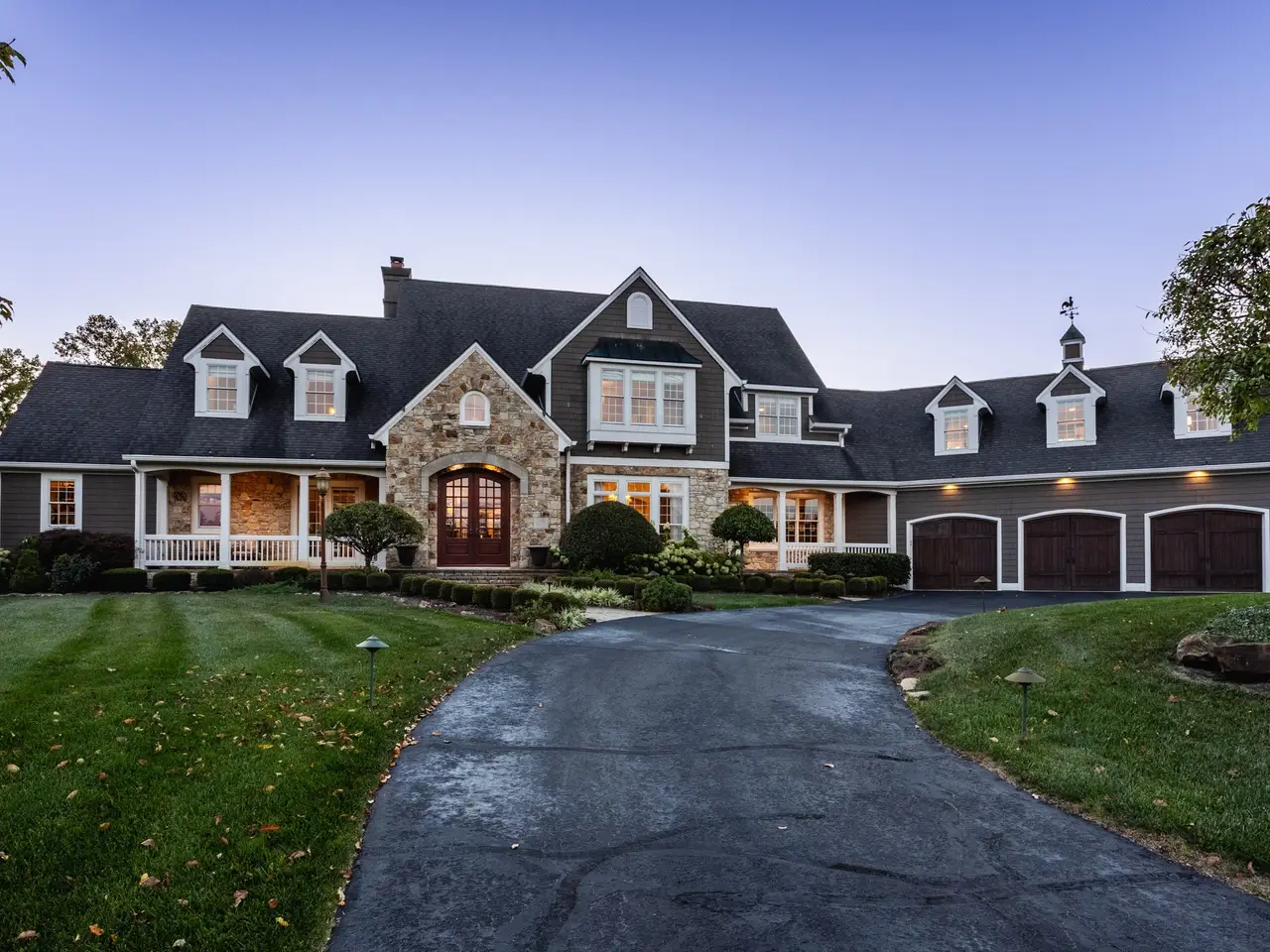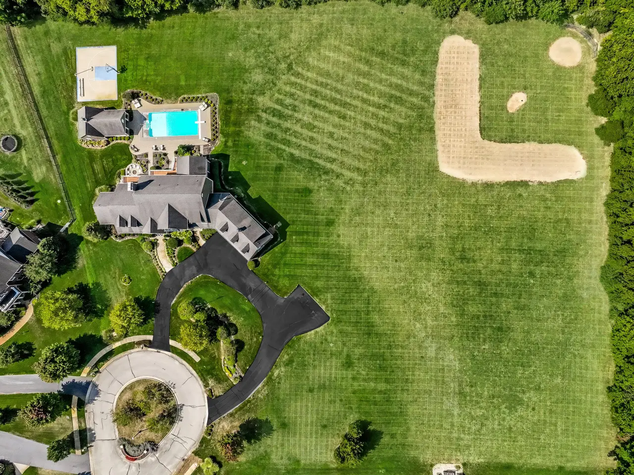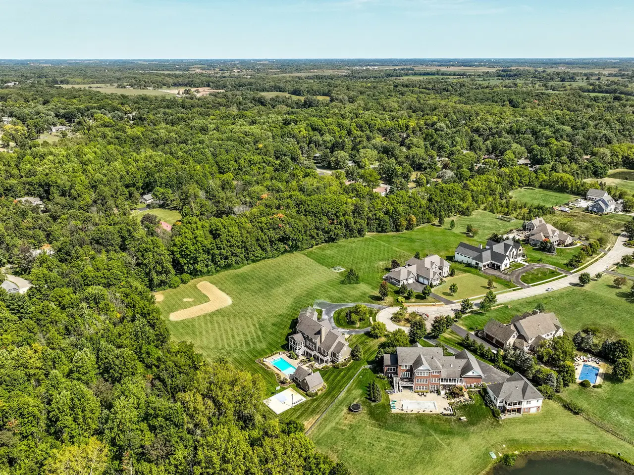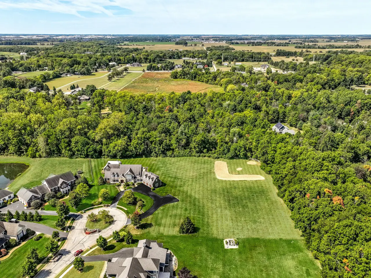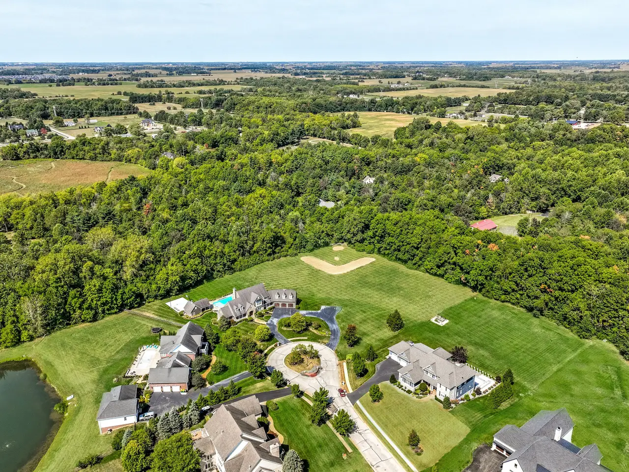Nestled on 4 private acres at the end of a quiet cul-de-sac, this extraordinary 8-bedroom, 7 full and 2 half bath estate offers the perfect blend of elegance, warmth, and everyday livability. It's more than just a house....it's a home. Offering 9,900+ finished square feet, this home was designed with a calming, inviting flow. The enchanting floor plan showcases soaring ceilings, abundant natural light, and exquisite craftsmanship at every turn. The main level features newly refinished hardwoods throughout, anchored by a show-stopping great room with an oversized stone fireplace and coffered ceilings. The dreamy chef's kitchen is a true centerpiece, featuring double commercial-grade gas ovens and ranges, quartz surfaces, custom backlighting, and seamless access to both formal and casual dining areas. The primary suite is a sanctuary of its own, complete with a private sitting room, cozy fireplace, spa-inspired bath, and direct access to the outdoor deck. Up its own private staircase is a fully outfitted in-law/guest suite perfect for extended stays. The finished lower level is equally impressive, bathed in sunlight through two sets of French doors and designed for both entertainment and relaxation. Highlights include a state-of-the-art theater room, full wet bar, wine cellar, exercise room, and two additional fireplaces. Outdoor living is equally spectacular. Framed by lush woods, the in-ground pool with poolhouse creates a resort-like setting, while a basketball court, soccer field and baseball diamond offer endless recreation. Enjoy 'smores by the firepit, watch pool shenanigans, or enjoy a happy hour cocktail from the enormous deck--the choice is all yours. Property parcel includes 2 lots, allowing for additional building options. PVE Elementary and ZMS Middle School.