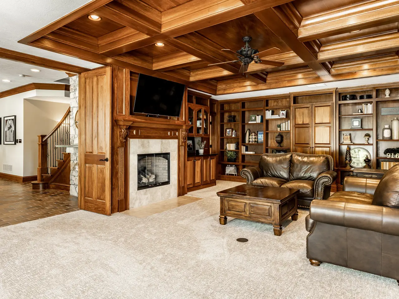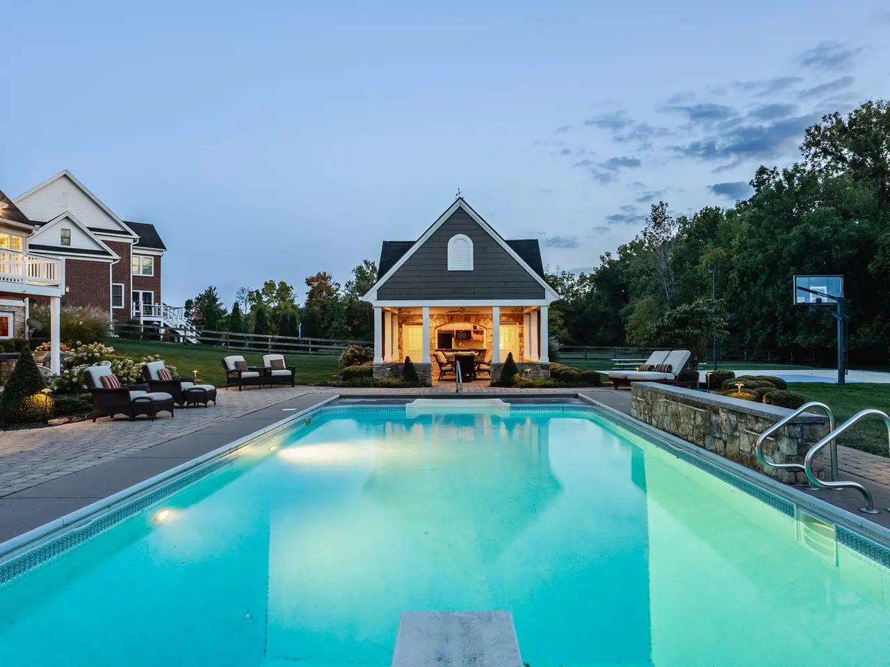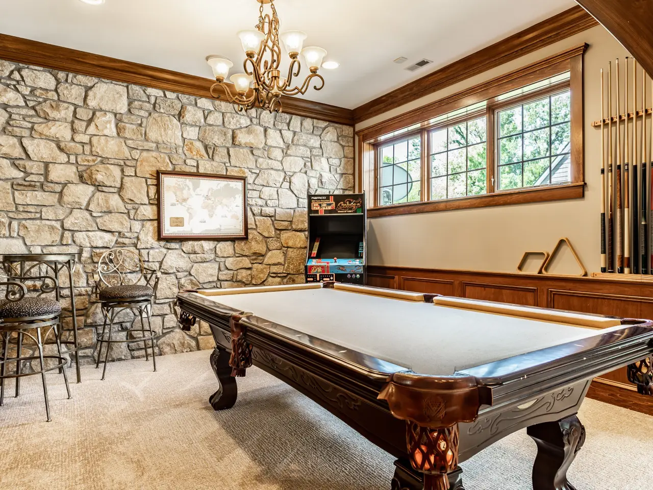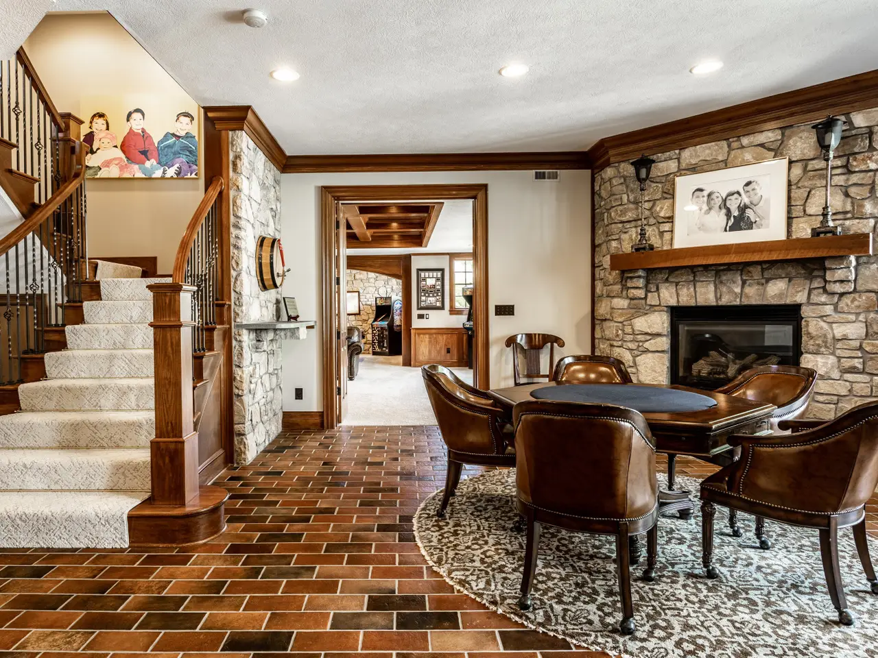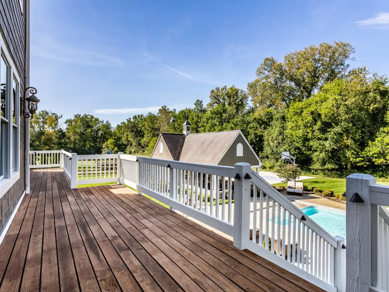 Nestled on 4 private acres at the end of a quiet cul-de-sac, this extraordinary 8-bedroom, 7 full and 2 half bath estate offers the perfect blend of elegance, warmth, and everyday livability. It's more than just a house....it's a home. Offering 9,900+ finished square feet, this home was designed with a calming, inviting flow. The enchanting floor plan showcases soaring ceilings, abundant natural light, and exquisite craftsmanship at every turn. The main level features newly refinished hardwoods throughout, anchored by a show-stopping great room with an oversized stone fireplace and coffered ceilings. The dreamy chef's kitchen is a true centerpiece, featuring double commercial-grade gas ovens and ranges, quartz surfaces, custom backlighting, and seamless access to both formal and casual dining areas. The primary suite is a sanctuary of its own, complete with a private sitting room, cozy fireplace, spa-inspired bath, and direct access to the outdoor deck. Up its own private staircase is a fully outfitted in-law/guest suite perfect for extended stays. The finished lower level is equally impressive, bathed in sunlight through two sets of French doors and designed for both entertainment and relaxation. Highlights include a state-of-the-art theater room, full wet bar, wine cellar, exercise room, and two additional fireplaces. Outdoor living is equally spectacular. Framed by lush woods, the in-ground pool with poolhouse creates a resort-like setting, while a basketball court, soccer field and baseball diamond offer endless recreation. Enjoy 'smores by the firepit, watch pool shenanigans, or enjoy a happy hour cocktail from the enormous deck--the choice is all yours. Property parcel includes 2 lots, allowing for additional building options. PVE Elementary and ZMS Middle School.