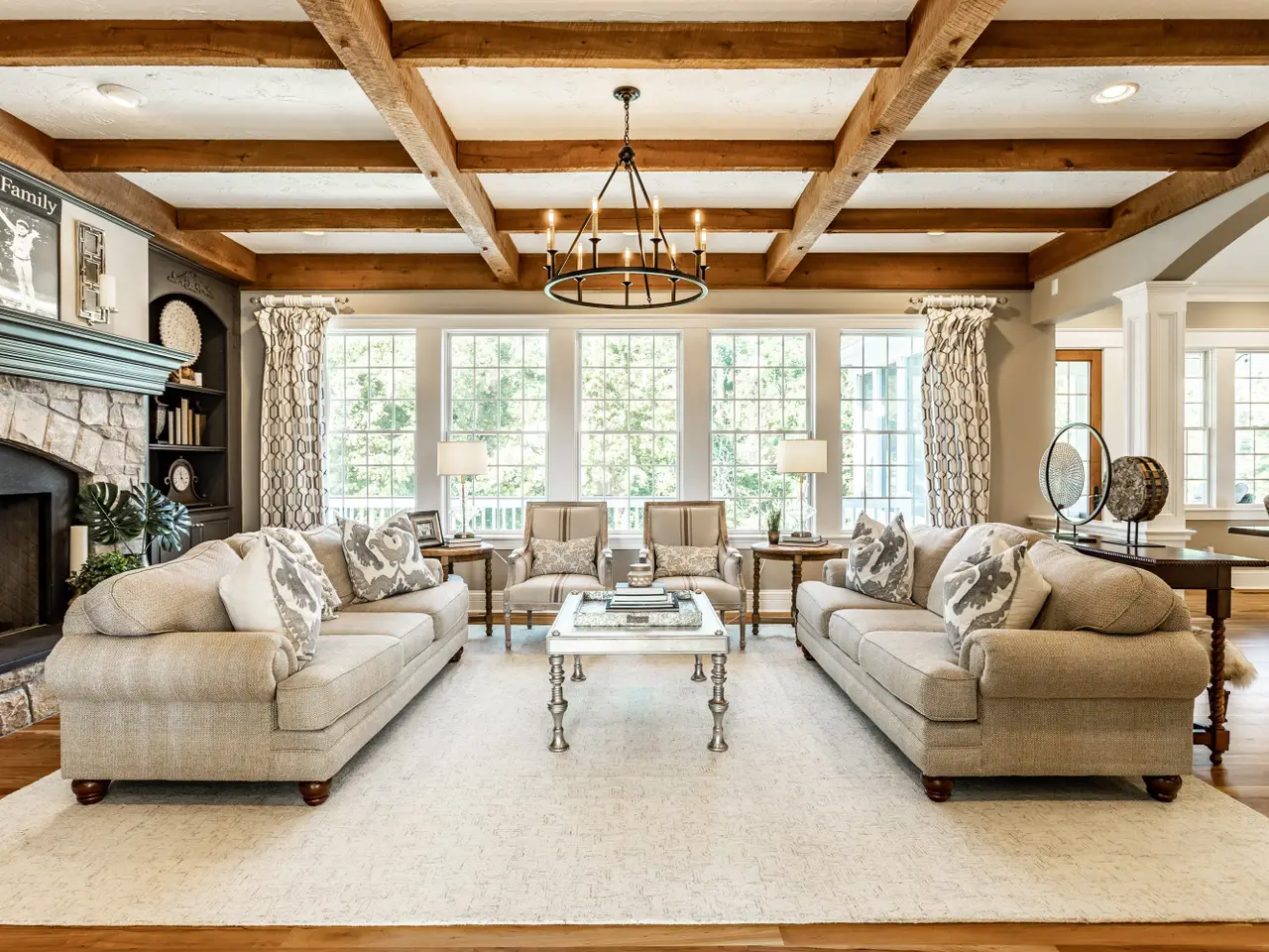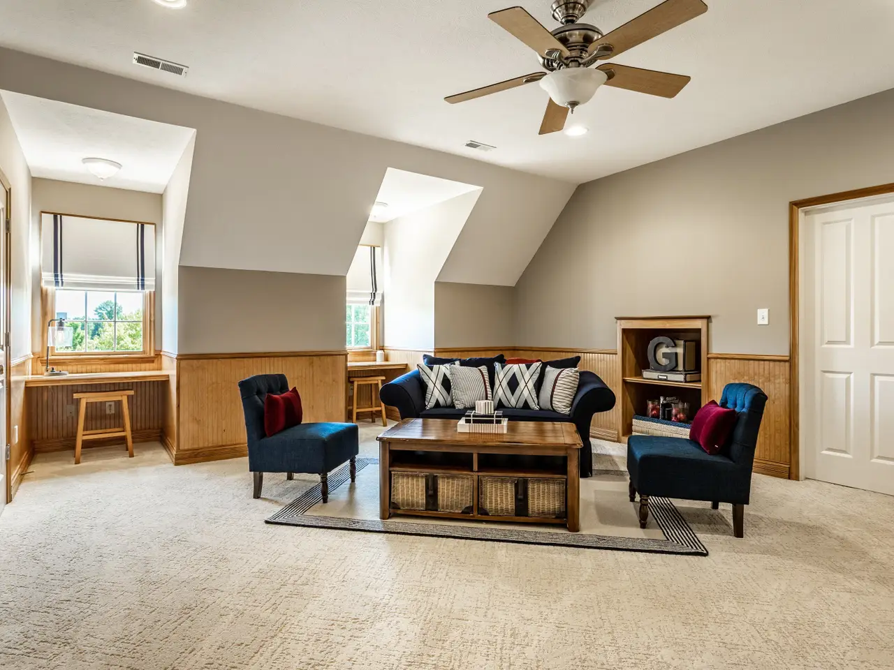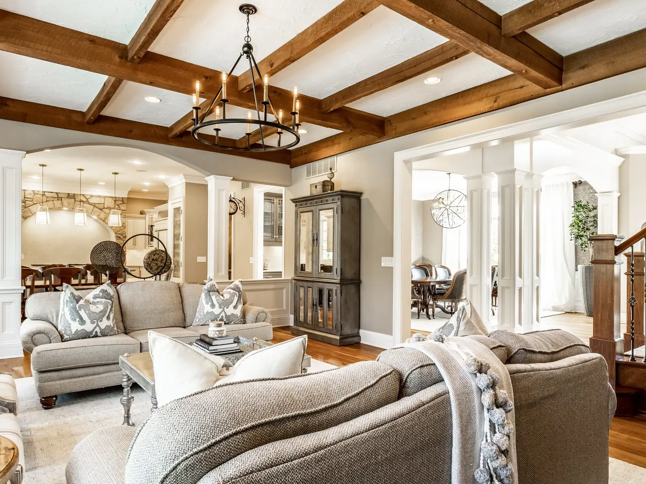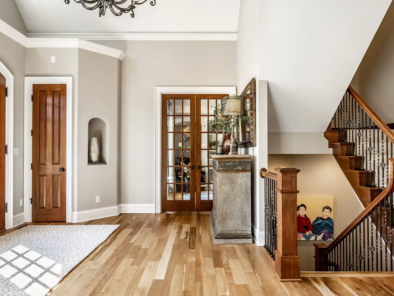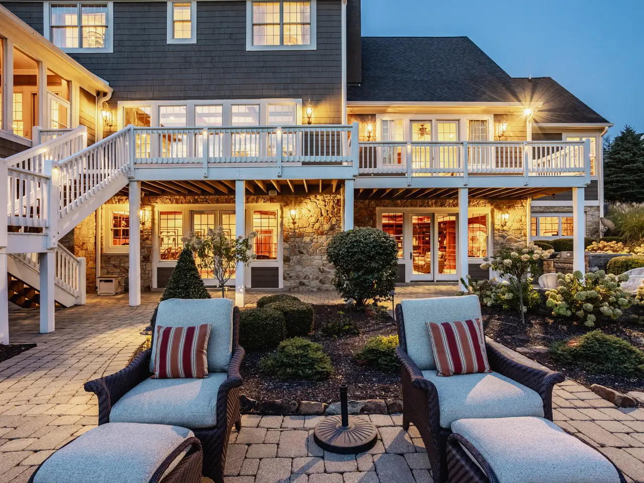 Nestled on 4 private acres at the end of a quiet cul-de-sac, this extraordinary 8-bedroom, 7 full and 2 half bath estate offers the perfect blend of elegance, warmth, and everyday livability. It's more than just a house....it's a home. Offering 9,900+ finished square feet, this home was designed with a calming, inviting flow. The enchanting floor plan showcases soaring ceilings, abundant natural light, and exquisite craftsmanship at every turn. The main level features newly refinished hardwoods throughout, anchored by a show-stopping great room with an oversized stone fireplace and coffered ceilings. The dreamy chef's kitchen is a true centerpiece, featuring double commercial-grade gas ovens and ranges, quartz surfaces, custom backlighting, and seamless access to both formal and casual dining areas. The primary suite is a sanctuary of its own, complete with a private sitting room, cozy fireplace, spa-inspired bath, and direct access to the outdoor deck. Up its own private staircase is a fully outfitted in-law/guest suite perfect for extended stays. The finished lower level is equally impressive, bathed in sunlight through two sets of French doors and designed for both entertainment and relaxation. Highlights include a state-of-the-art theater room, full wet bar, wine cellar, exercise room, and two additional fireplaces. Outdoor living is equally spectacular. Framed by lush woods, the in-ground pool with poolhouse creates a resort-like setting, while a basketball court, soccer field and baseball diamond offer endless recreation. Enjoy 'smores by the firepit, watch pool shenanigans, or enjoy a happy hour cocktail from the enormous deck--the choice is all yours. Property parcel includes 2 lots, allowing for additional building options. PVE Elementary and ZMS Middle School.