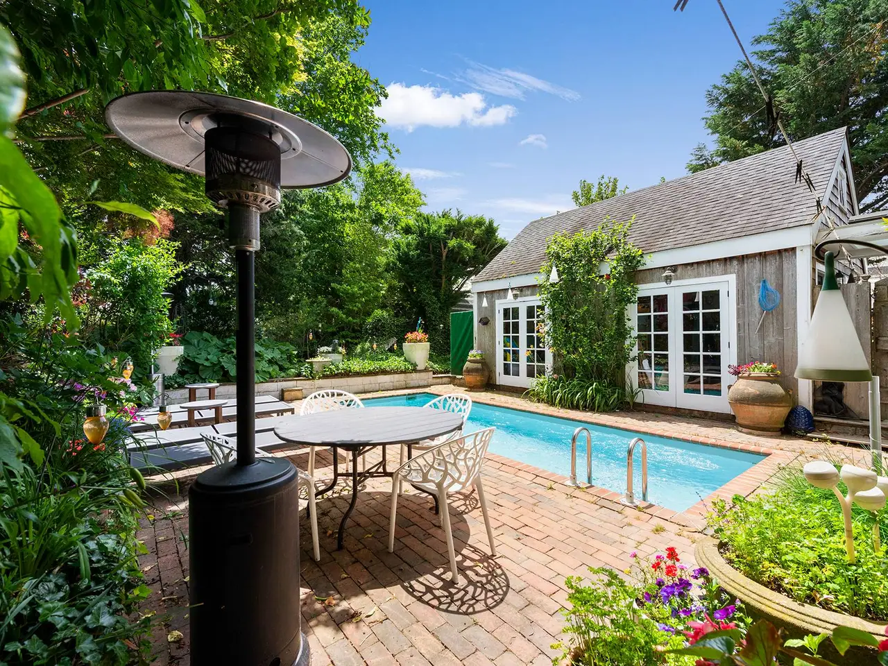 Located in the heart of Southampton Village, just a few blocks from renowned Main Street restaurants and shopping, this historic 3 bedroom shingle style home. Built in 1850, elegantly updated and upgraded over the years, the residence features charming interior spaces including a living room with wood-burning fireplace, a formal dining room, half bath and eat in gourmet kitchen with professional stainless appliances. Two guest bedrooms share one full bath. The primary bedroom with en suite bath offers a vaulted ceiling with exposed beams. The kitchen includes light-filled breakfast area overlooking the heated pool with south facing brick patio surrounded by charming English and herb gardens, pool-house and outdoor shower. The pool house/ garage is a multi function space with room for car, beach toys and bikes or clear it out to use as a party space with French doors to the pool area, brick floor and recessed lighting allow for some nice options. A second off the kitchen side door provides an outdoor cooking area with gas & charcoal grills and a spot for coffee. This home captures all the comfort and charms of Southampton living. Listing ID: 904600