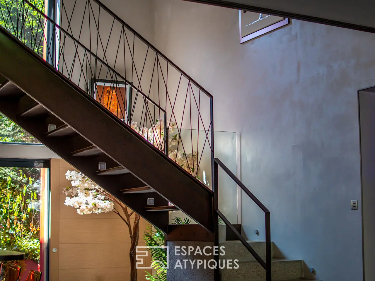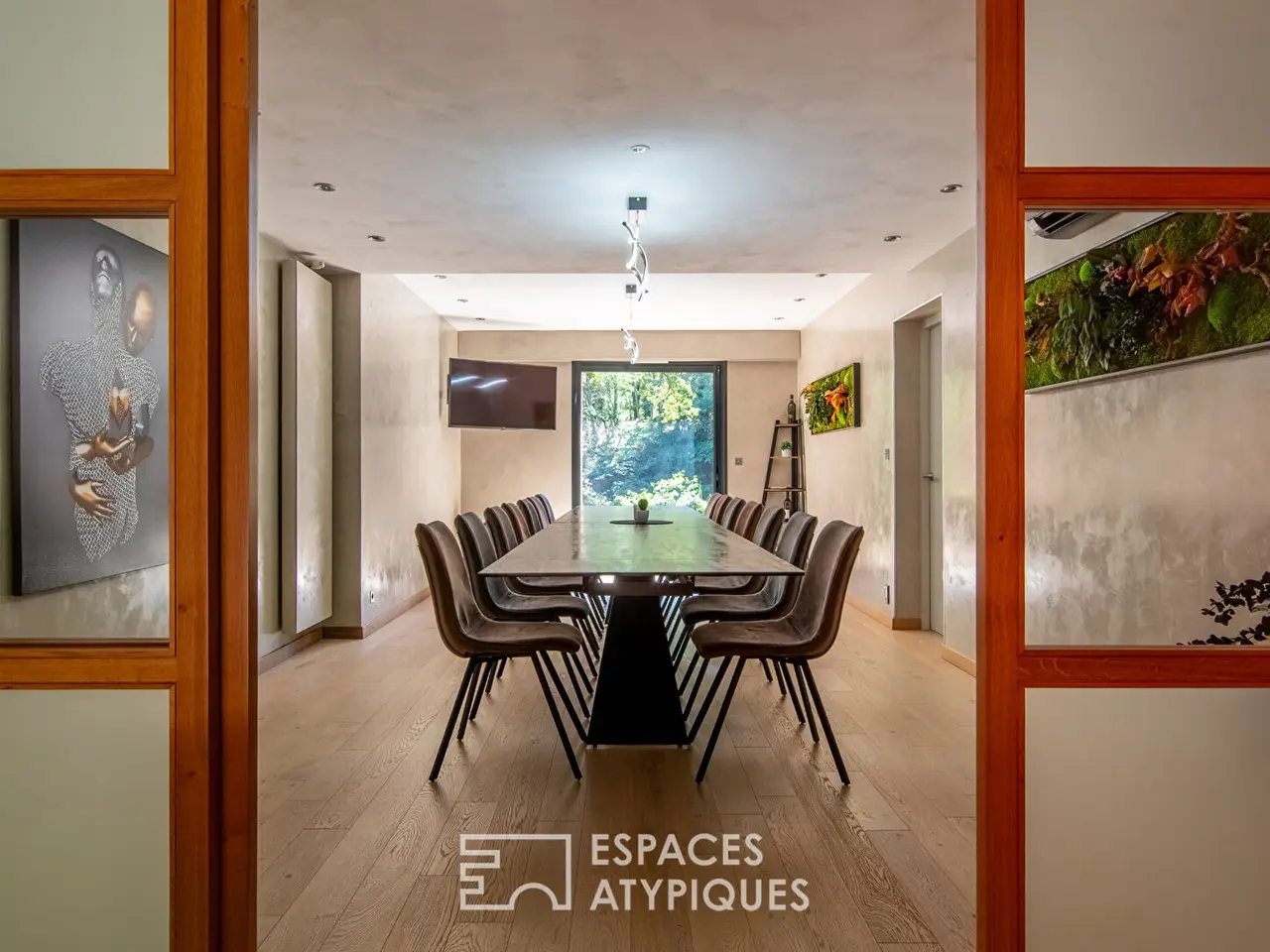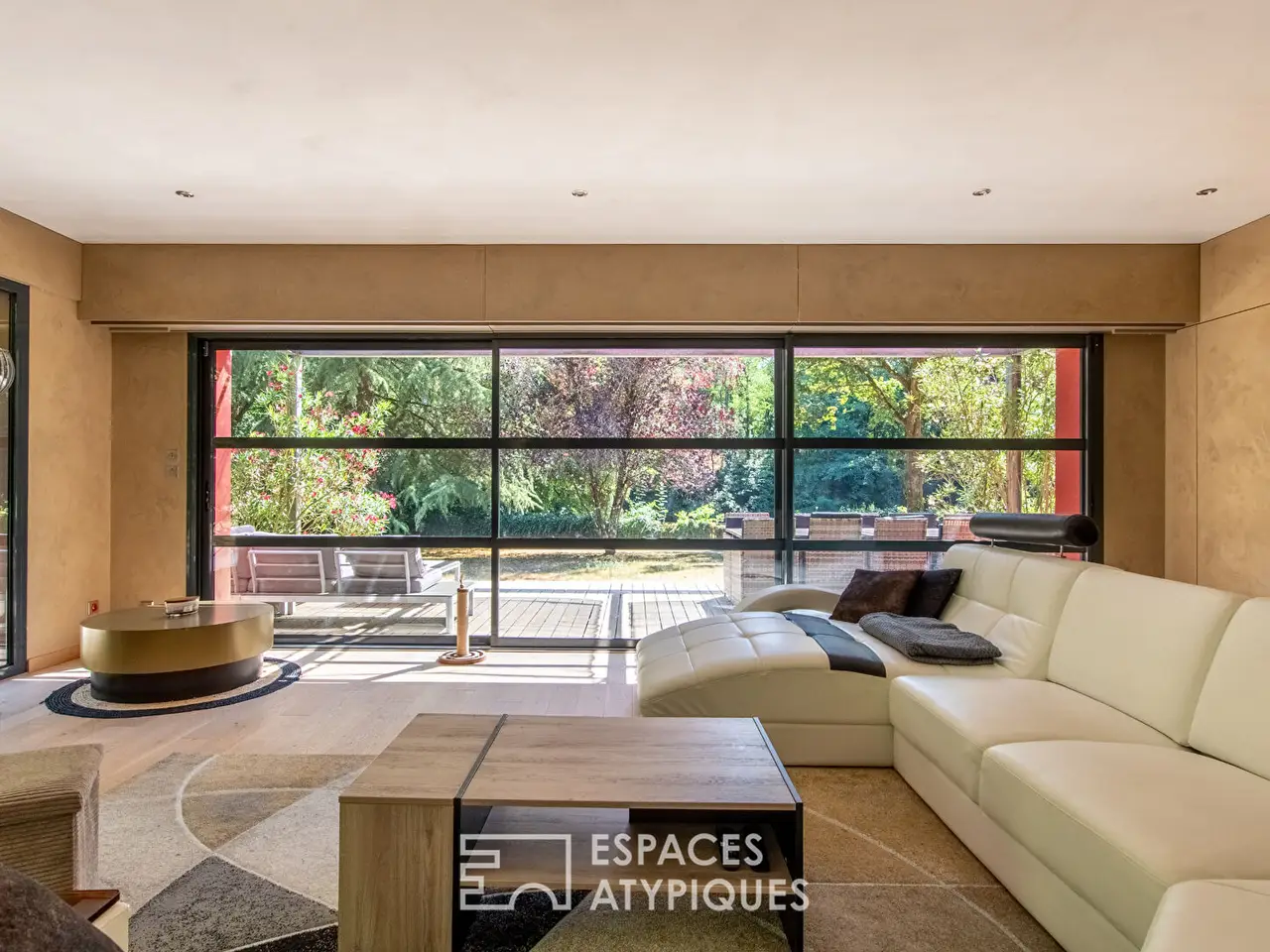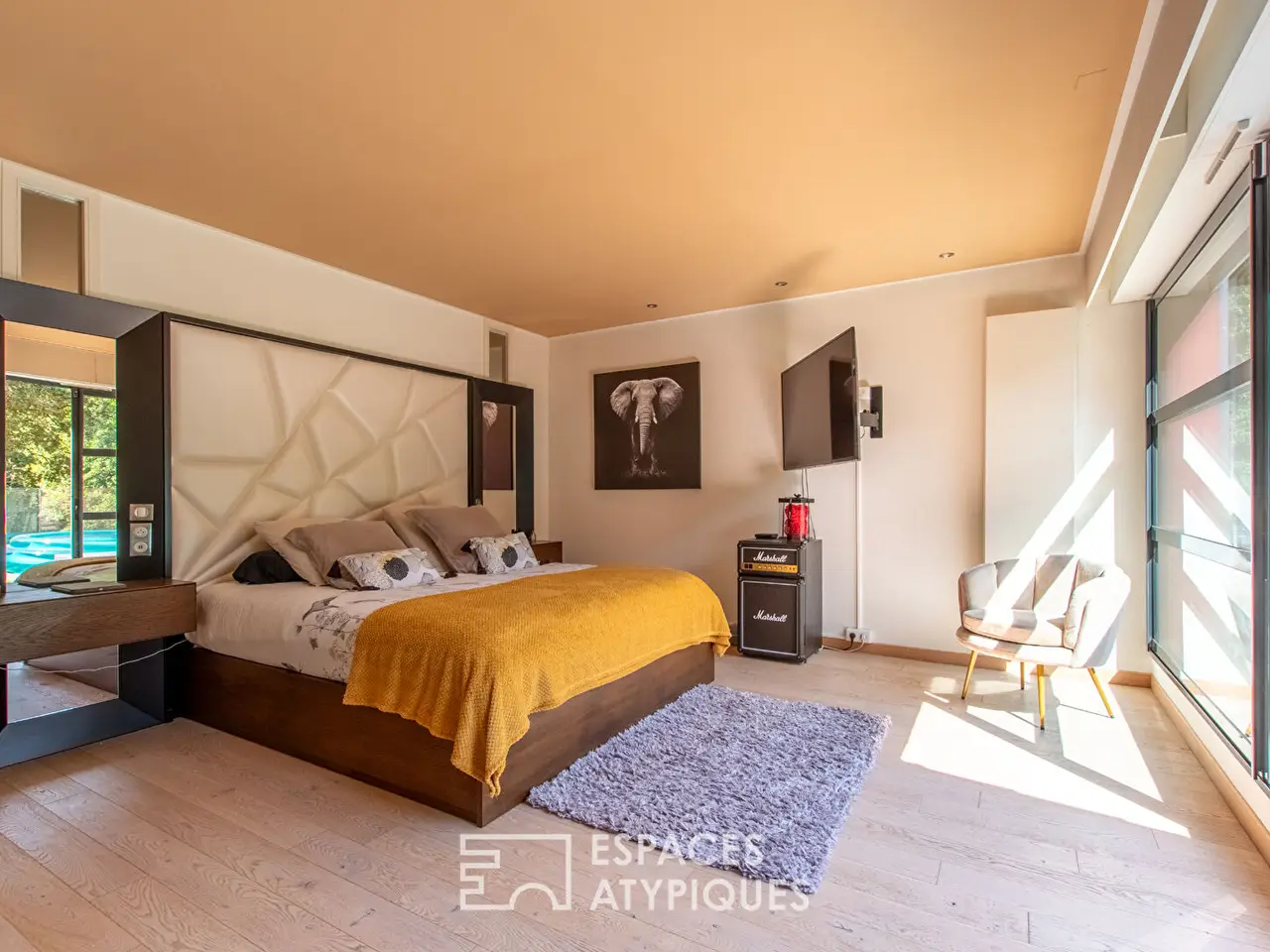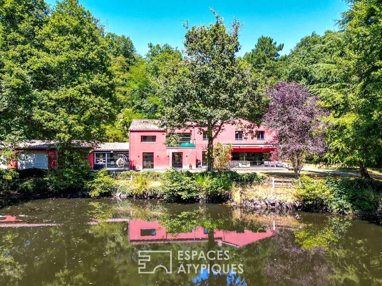 Nestled in the heart of a natural setting at the gates of La Roche-sur-Yon, this contemporary villa offers 500 sqm of living space on a vast 19,000 sqm plot. This unique property combines modern elegance and high-end comfort, with spacious and bright living spaces, an 1800 sqm pond, and a maintained forest. Ideal for lovers of space and tranquility. This contemporary villa, recently renovated, stands out for its modern architecture and generous volumes. The interior renovation has preserved the contemporary spirit of the house while integrating high-end decorative elements, creating a warm and welcoming atmosphere. The large living rooms bathed in light, the large bay windows, and the high-end amenities make it an ideal living space for relaxing and entertaining. Access to the interior of the house is through a majestic wooden door, a true museum piece. Once through this door, a vast hall is bathed in light, with a bar to welcome guests in the best conditions. This hall gives access on one side to a first sleeping area and a games room and on the other to the living rooms. Finally, a beautiful and very airy staircase leads to the first floor. As for the living rooms, the ground floor offers an office, a large living room with a contemporary fireplace and a panoramic view of the terrace, the garden and the pond, a library, a reception room for a dozen guests, a small family dining room, and a vast kitchen with very complete and high-end equipment. The other part of the ground floor houses a guest bedroom with its bathroom, a games room with a bar and a video area. Upstairs, a first suite with bedroom, living room, terrace and bathroom allows to offer guests a private and intimate space.Opposite is a very large master suite with a bedroom opening onto a terrace with a direct view of the pond, a dressing room, a bathroom with a bathtub and shower and a separate and private toilet. Three additional bedrooms with bathroom and shower room complete the upper floor. On the practical side, the property has a large laundry room, a carport, and a garage that can accommodate at least four cars with its workshop.Outside, a landscaped garden surrounds the house, offering several terraces and different atmospheres. The 1800 sqm pond and the maintained forest with a walk, several picnic or rest areas and a chalet with a terrace complete this ensemble, creating a peaceful and natural living environment. The property is located in La Roche-sur-Yon.The first shops and schools are within walking distance while the town center and all services are no more than 10 minutes away by car. This contemporary villa, with its incredible environment in the heart of nature and its exceptional location close to all services, is a true invitation to an art of living in harmony with nature. A rare property, to discover without delay for those looking for authenticity, elegance, calm and comfort.REF. LRY4665Additional information* 13 rooms* 6 bedrooms* 2 bathrooms* 3 shower rooms* 2 floors in the building* Outdoor space : 19125 SQM* Property tax : 8 500 €Energy Performance CertificatePrimary energy consumptionc : 94 kWh/m2.yearHigh performance housing*A*B*94kWh/m2.year14*kg CO2/m2.yearC*D*E*F*GExtremely poor housing performance* Of which greenhouse gas emissionsc : 14 kg CO2/m2.yearLow CO2 emissions*A*B*14kg CO2/m2.yearC*D*E*F*GVery high CO2 emissionsEstimated average annual energy costs for standard use, indexed to specific years 2021, 2022, 2023 : between 3900 € and 5350 € Subscription In