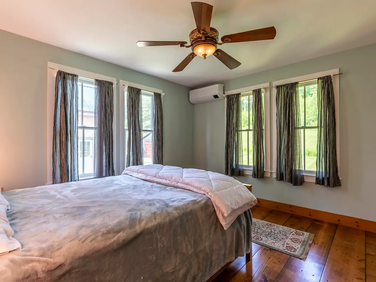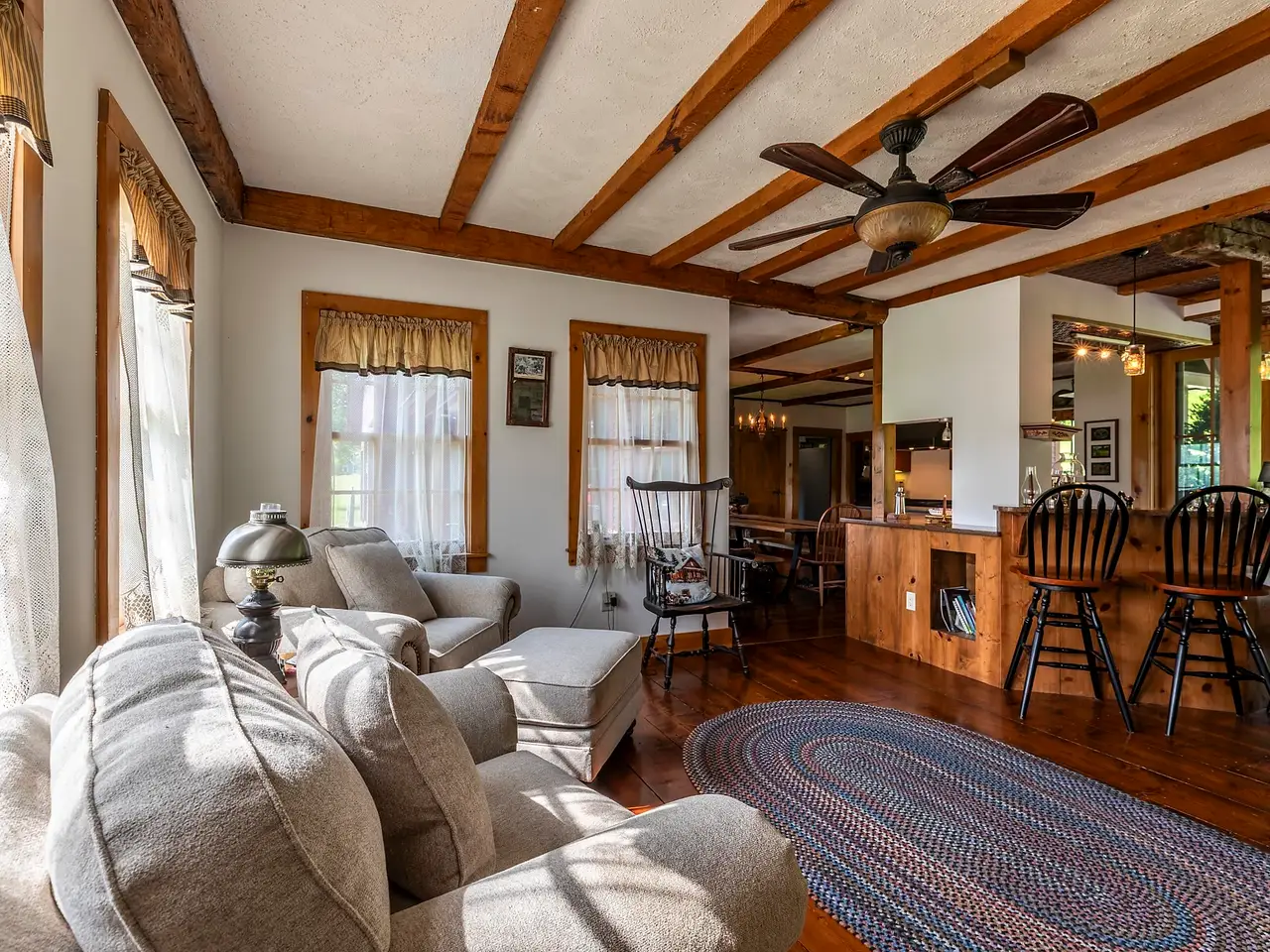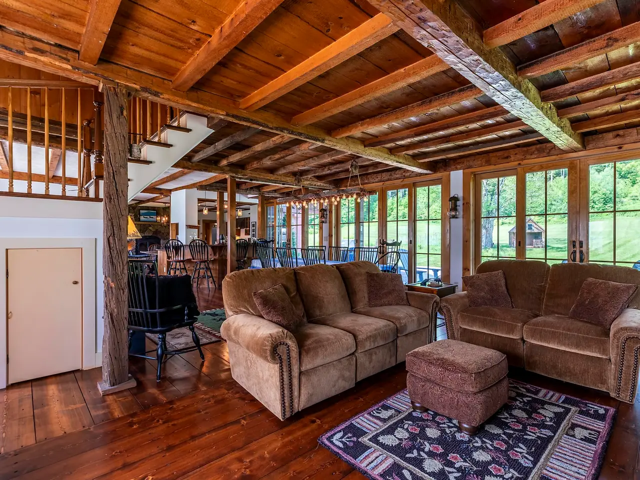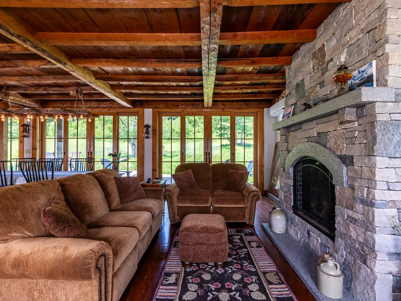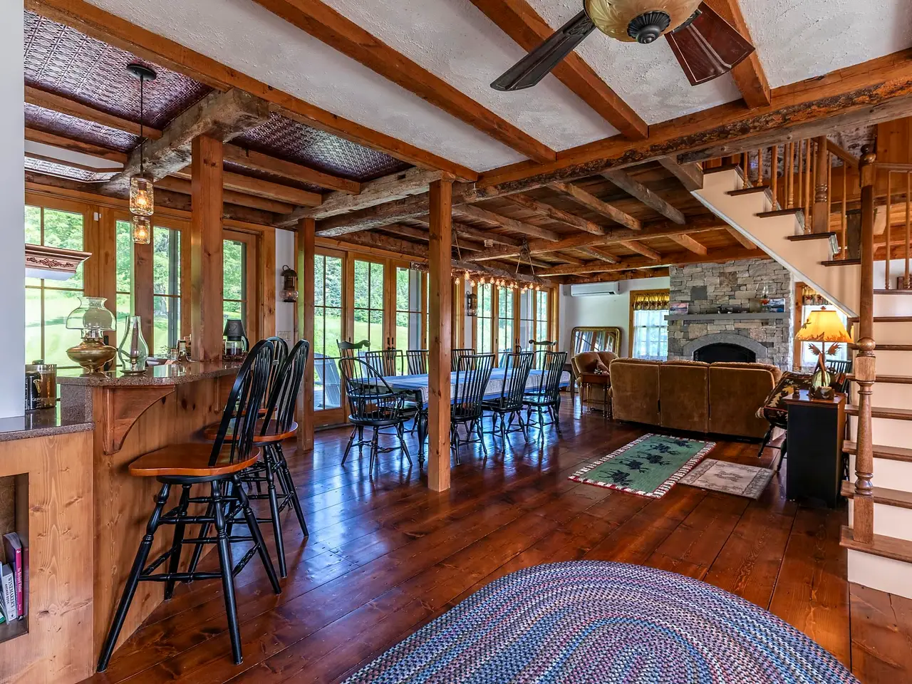 Experience timeless elegance and modern luxury in this exquisitely renovated 1834 farmhouse, gracefully sited on one of CavendishÆs most sought-after country roads. Thoughtfully updated while preserving its historic charm, this extraordinary residence features a state-of-the-art chefÆs kitchen, whole house a/c and an expansive open-concept main level adorned with original hand-hewn beams and architectural character throughout. French doors lead to an oversized deck, ideal for alfresco entertaining, with sweeping views of the serene swimming pond and pastoral fields. Choose between the warmth of a classic stone hearth wood-burning fireplace or the ease of a sophisticated new propane fireplace for the perfect aprFs-ski ambiance. The home offers a luxurious primary suite and three additional en-suite guest rooms, ensuring comfort and privacy for all. A spacious media and bunkroom above the attached three-bay garage, along with a fully finished lower-level game room, provide exceptional spaces for recreation and gathering. Set on 16 idyllic acres, the property includes a private pond, mature fruit trees, and a boutique vineyard across the road. A striking timber frame barn with a large loft and extended dormer offers ample space for vehicle storage, toys, or potential creative use. Located just five miles from OkemoÆs base lodge and the lakes region, this impeccable home is a rare blend of refined country living, recreational opportunity, and alpine convenience.