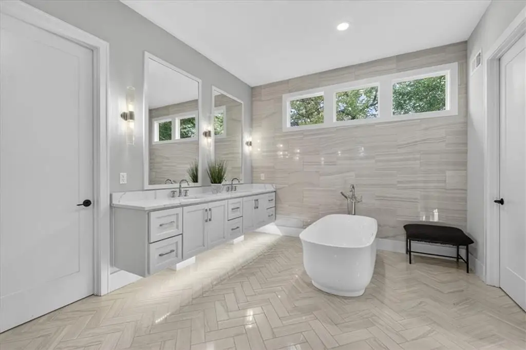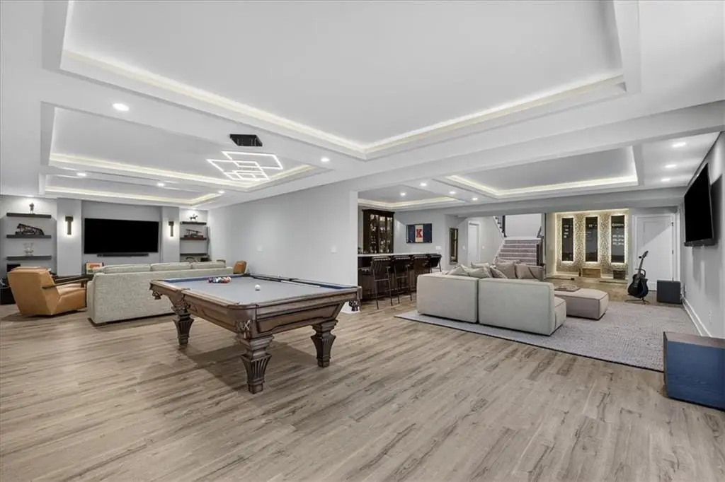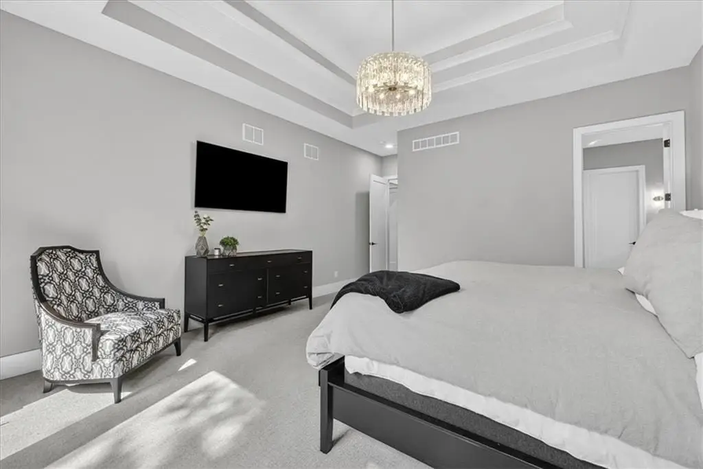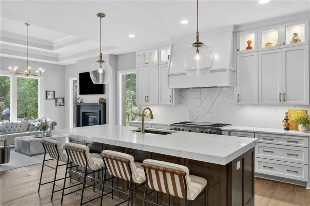 Luxury and modern elegance converge in this custom reverse 1.5-story by Kessler Custom Homes, ideally located in Cedar Creek's coveted Hidden Lake Estates. Situated on a .66-acre treed cul-de-sac lot, this 4-bed, 4-bath showpiece offers nearly 5,000 square feet of impeccably designed living space with a walkout basement and oversized 4-car side-entry garage with epoxy floors. The chef's kitchen is a dream, featuring top-of-the-line BlueStar appliances, six ovens, a massive quartz island, custom cabinetry, and a walk-in butler's pantry that doubles as a prep kitchen or secondary office. The open main level boasts vaulted ceilings, exposed beams, designer lighting, hardwood floors, and built-in speakers throughout. A dramatic wall of windows and sliding doors open to a stamped concrete patio overlooking the private, fully fenced backyard. The luxurious primary suite features two walk-in closets and a spa-worthy bath with floating vanities, herringbone tile, soaking tub, and dual-head walk-in shower. The lower level offers a full wet bar with ice maker and dishwasher, glass-enclosed wine cellar, game room, and two spacious bedrooms with ensuite baths and private patio access. Enjoy direct access to Cedar Creek's resort-style amenities, including a 65-acre lake, multiple pools, clubhouse, trails, tennis, and Shadow Glen Golf Club just minutes away.